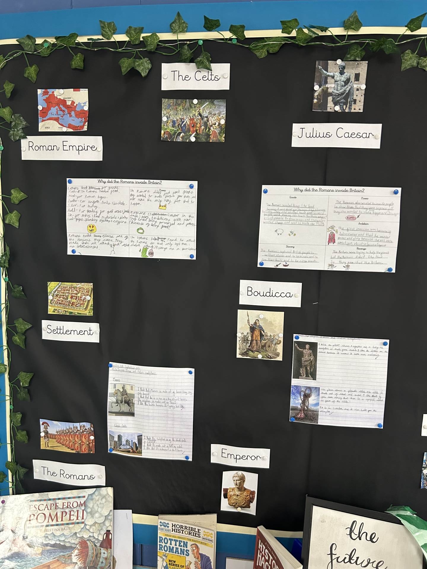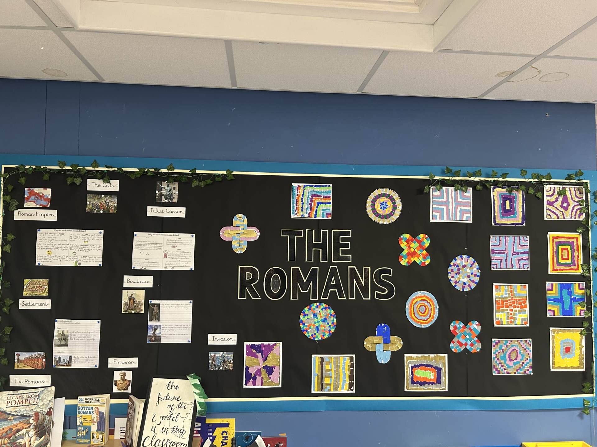 Each year we focus on a different art skill. We ask the children to complete an art objective for example: draw the human body. We then teach age appropriate skills to develop their skills and knowledge of that objective (body proportions, hatching and cross hatching, shadow edging).