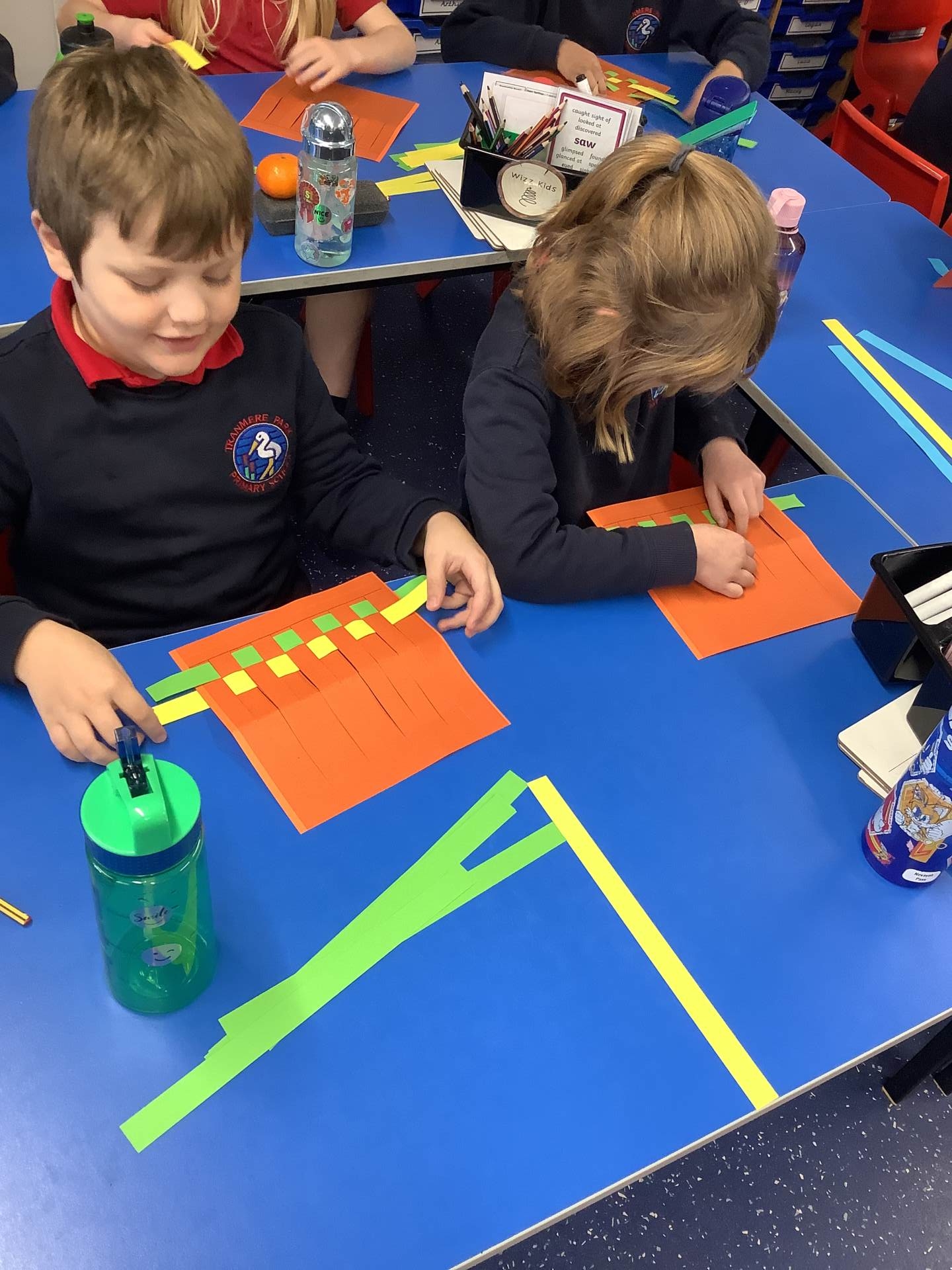 In Design and Technology, we have been learning that there are lots of ways to join fabrics together. We have learnt that fabrics can be sewn together, glued, stapled or safety pinned. We have also explored weaving as a way of joining and creating patterns.