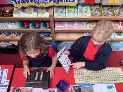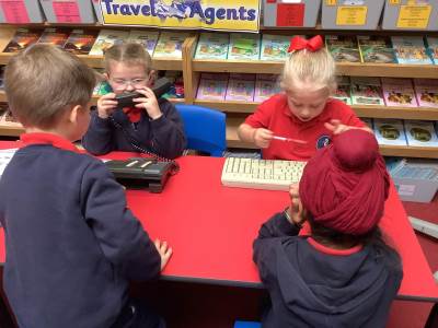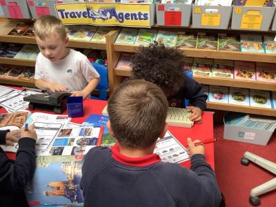As our entry point to our new topic 'Hooray, Let's Go On Holiday,' the children practised booking a holiday in our very own 'Tranmere Travel Agents.' The children enjoyed taking on the role of the travel agents and the customers. They enjoyed selecting their own worldwide desination, deciding how long they wanted to stay for, how they wanted to travel there and which hotels they wanted to stay in. The children asked some fabulous questions and took on the roles brilliantly. Well done Eagles!