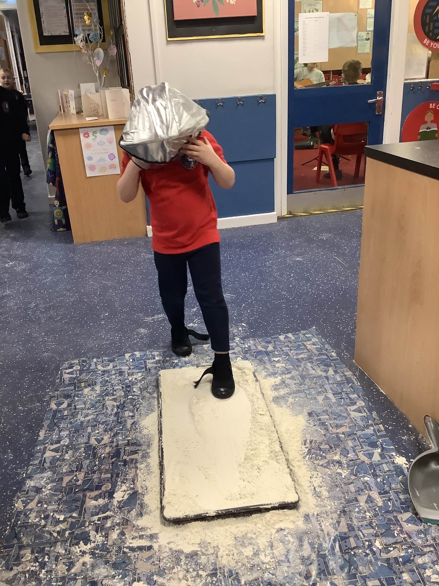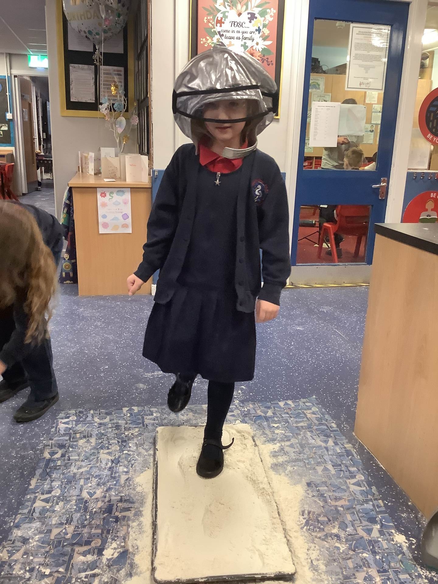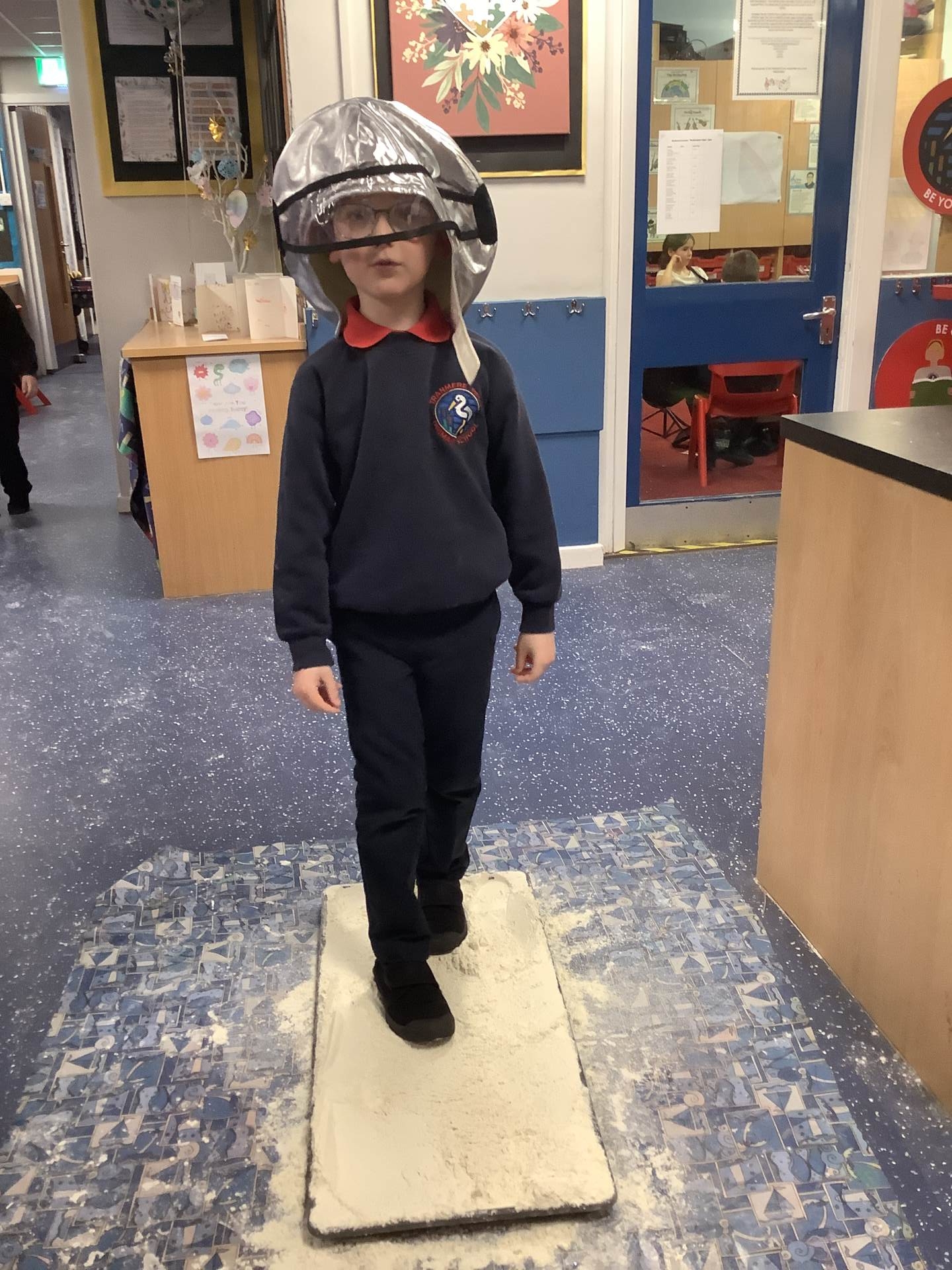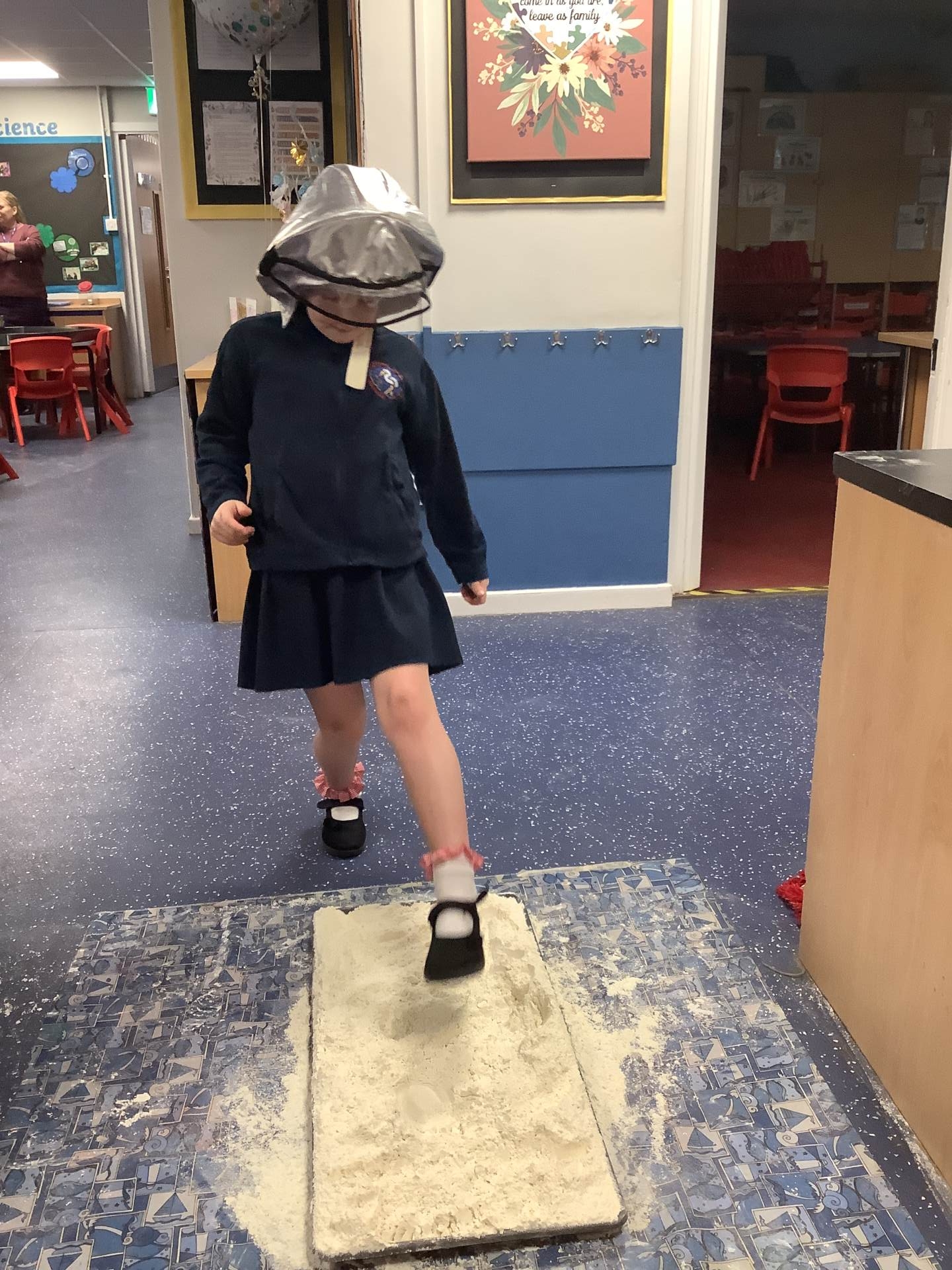 Over the last few weeks, Eagles class have been learning about the events of the First Moon Landing. To bring our learning to life, the children took their own steps on the moon's surface through role play. We used flour to imitate the surface of the moon and as the children stepped onto it, they said Neil Armstrong's famous words - "that's one small step for man, one giant leap for mankind." The children took their roles very seriously and said his famous words with great enthusiasm. We discussed how Neil Armstrong's footprints are still on the moon today as there is no wind on the moon. The children thoroughly enjoyed this fun (and slightly messy) experience!