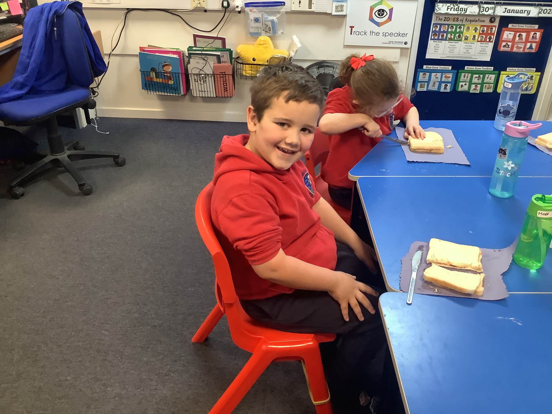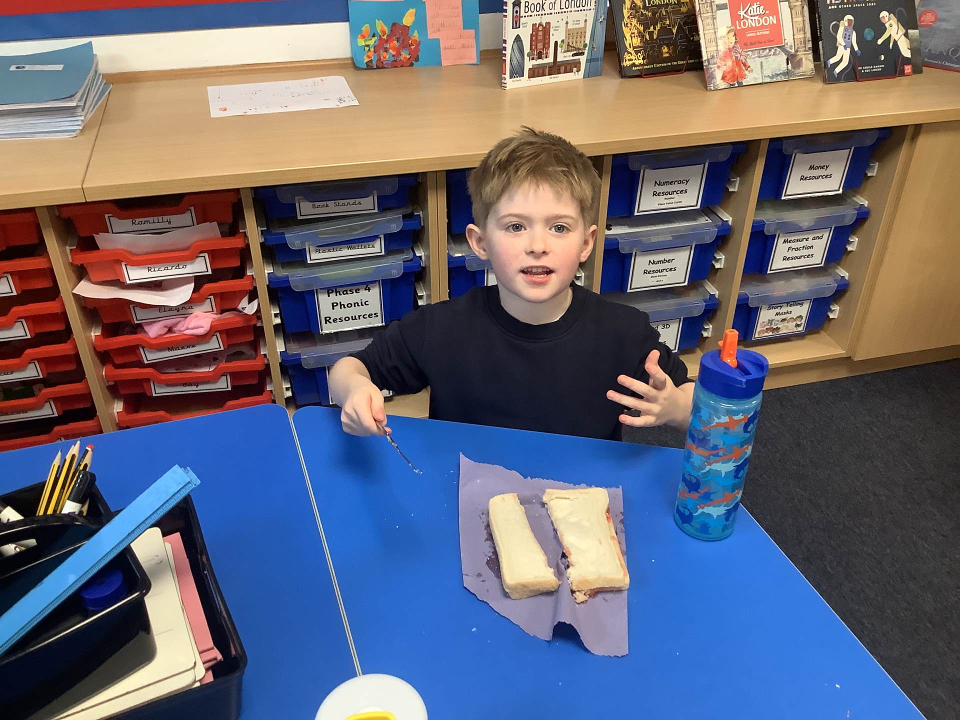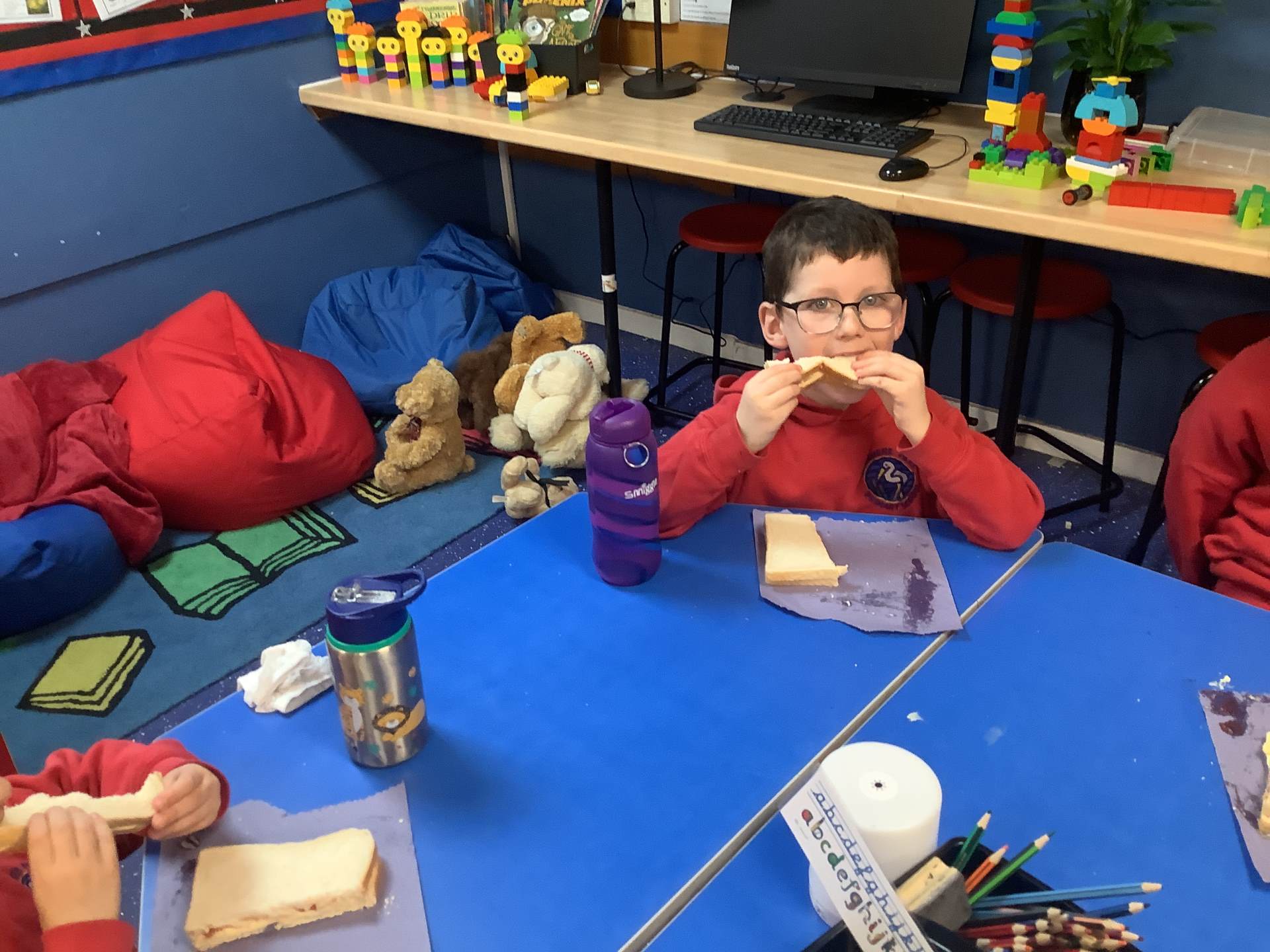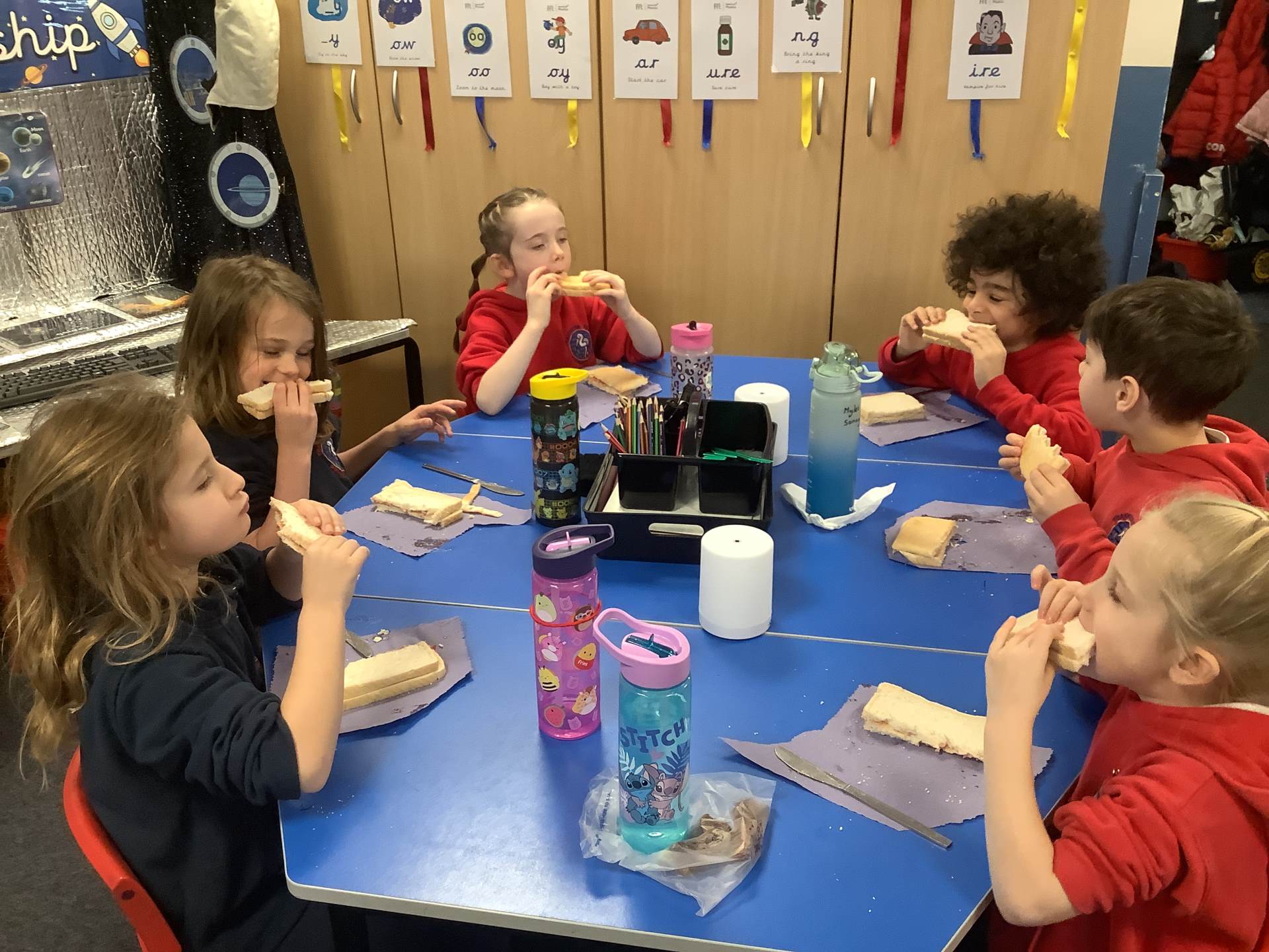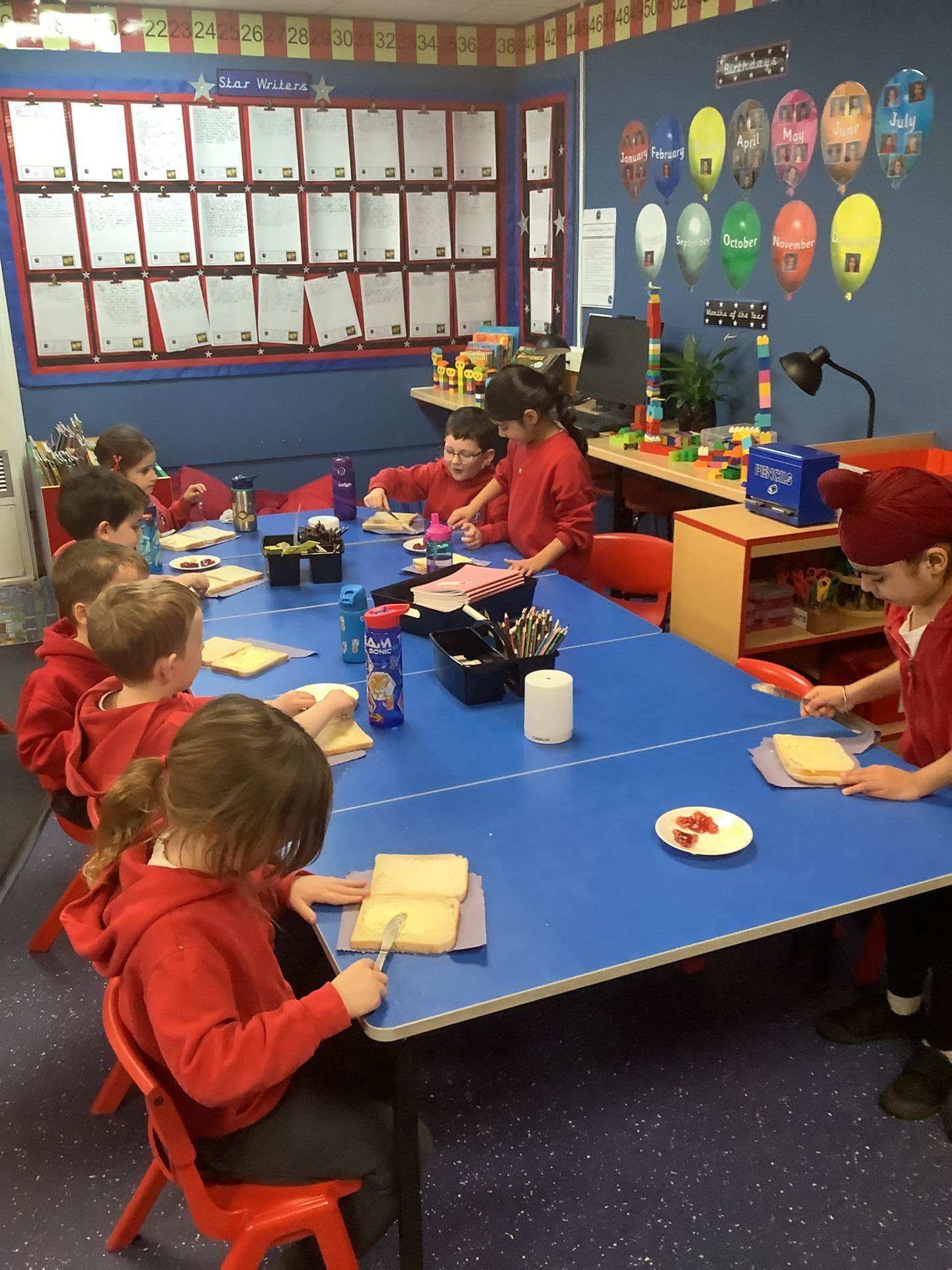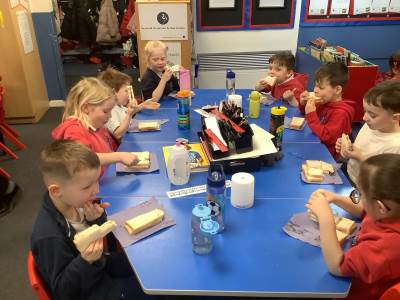 They all did a fantastic job of making their jam sandwiches, and an even better job of eating them!