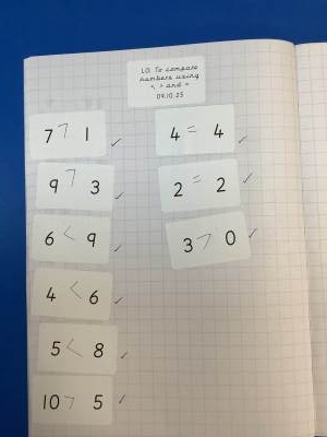Eagles have worked hard this week on comparing numbers. We have used the maths vocabulary greater than, less than and equal to. We have also used the signs <, > and = to show this in our practical and written work too.