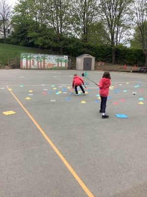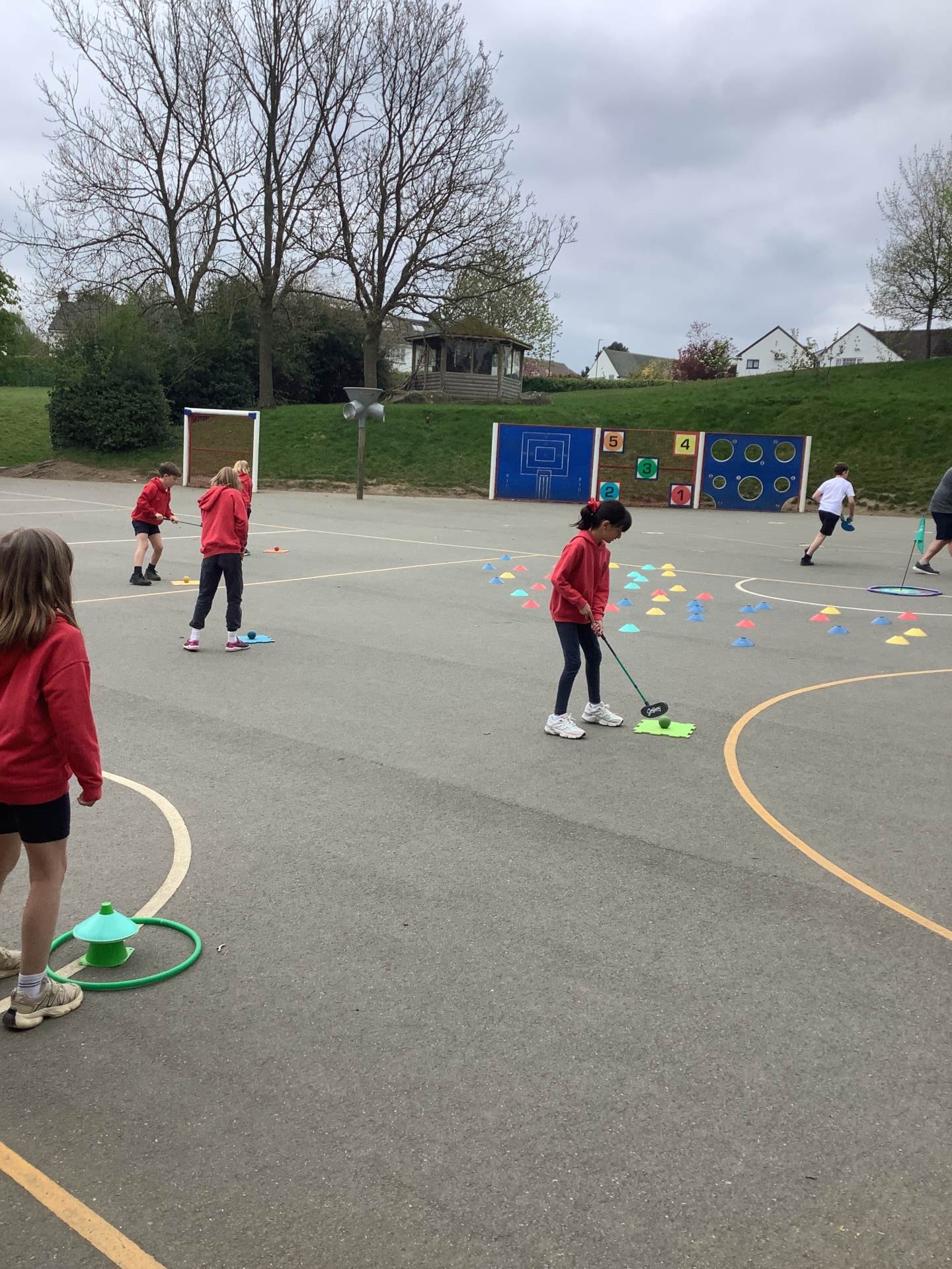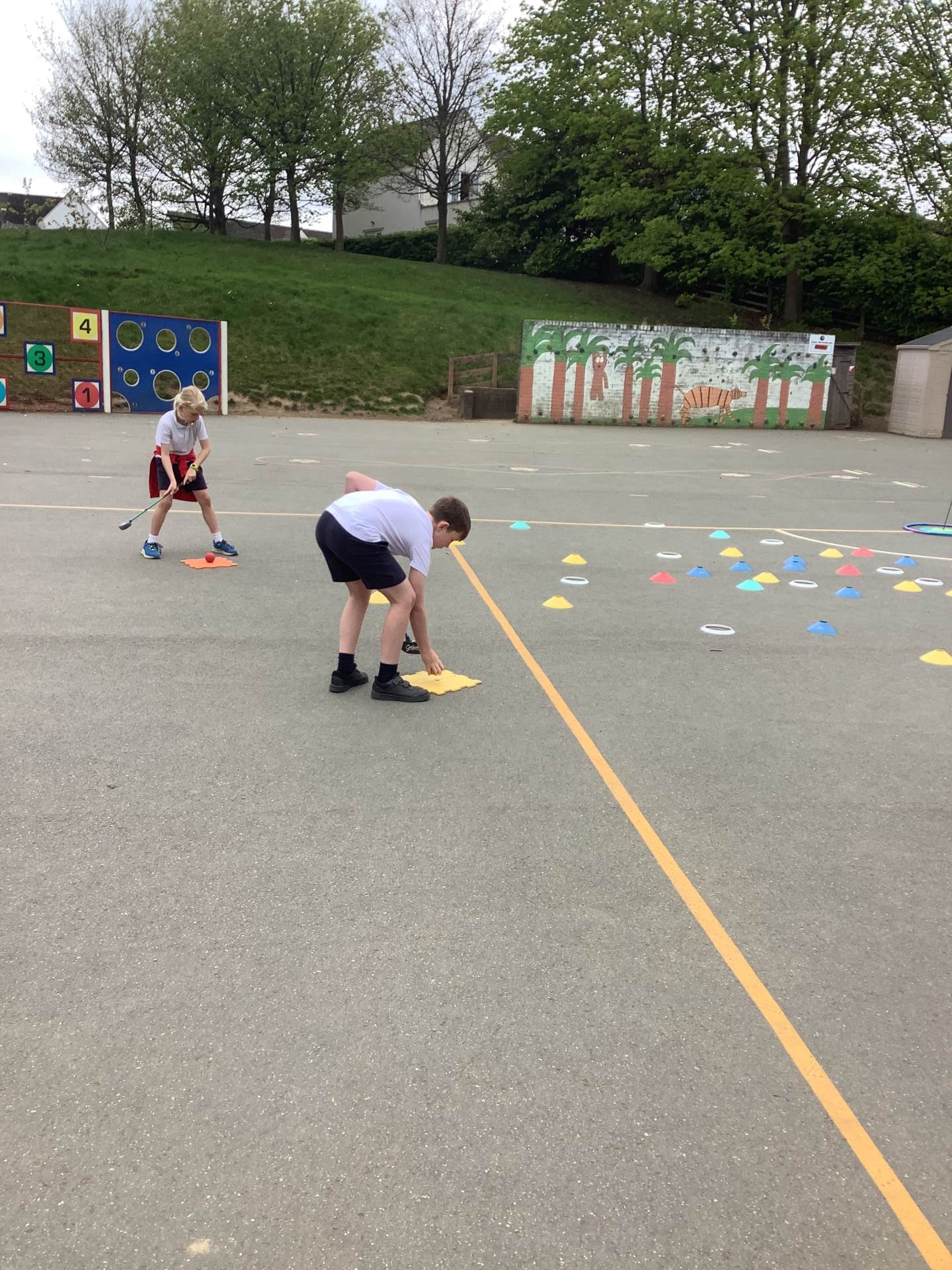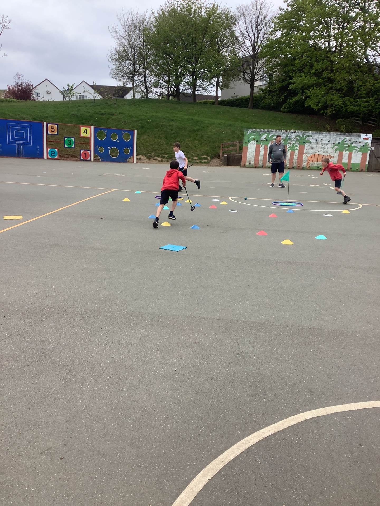 Today, we had a session with a golf pro, Stu Warren, who taught us some golf techniques. We then played a few different games. We all had a great time and had so much fun! Look at the pictures to see for yourselves - make sure you look at the last pictures to see which group managed to steal the win in the last game!
