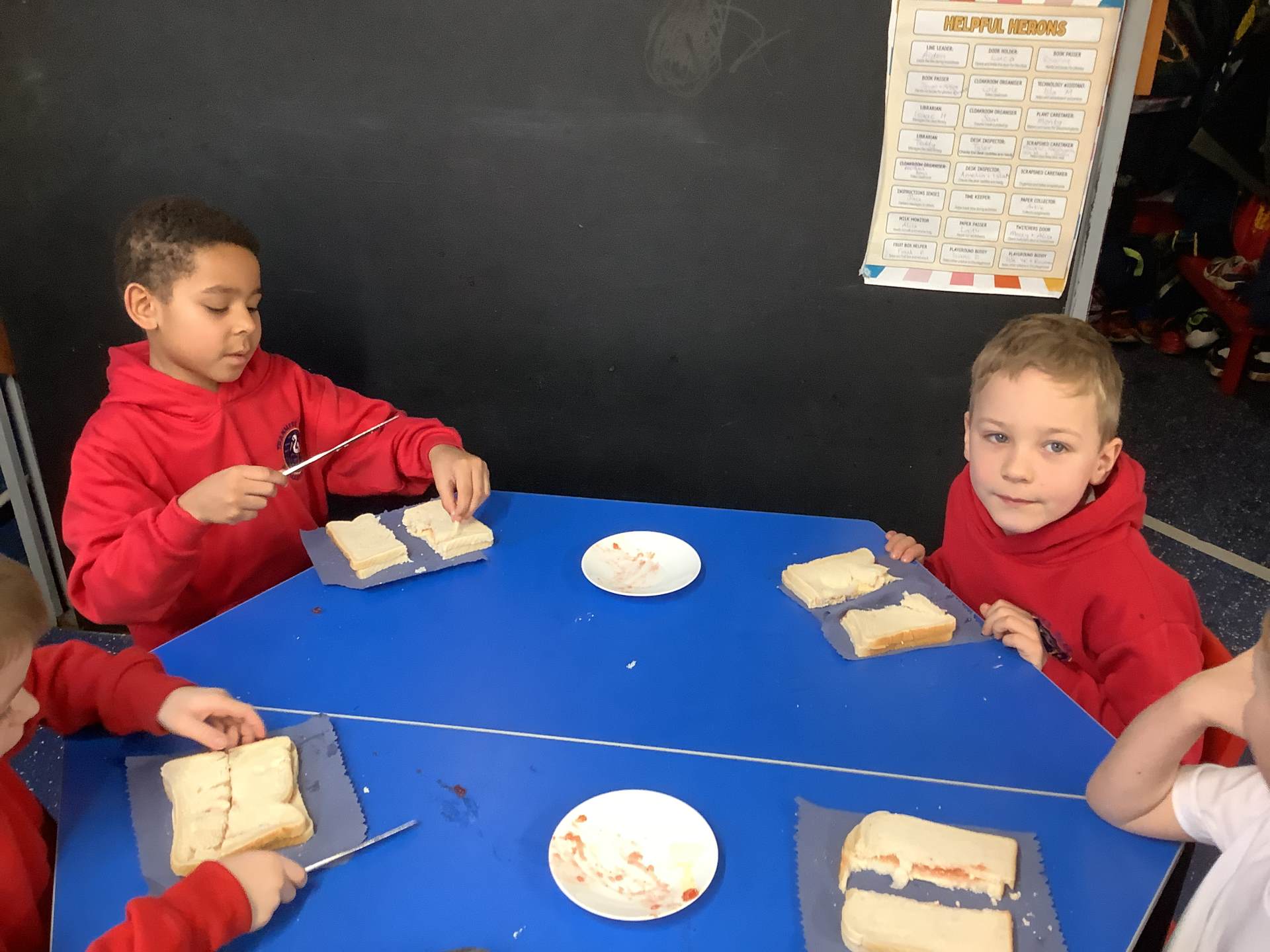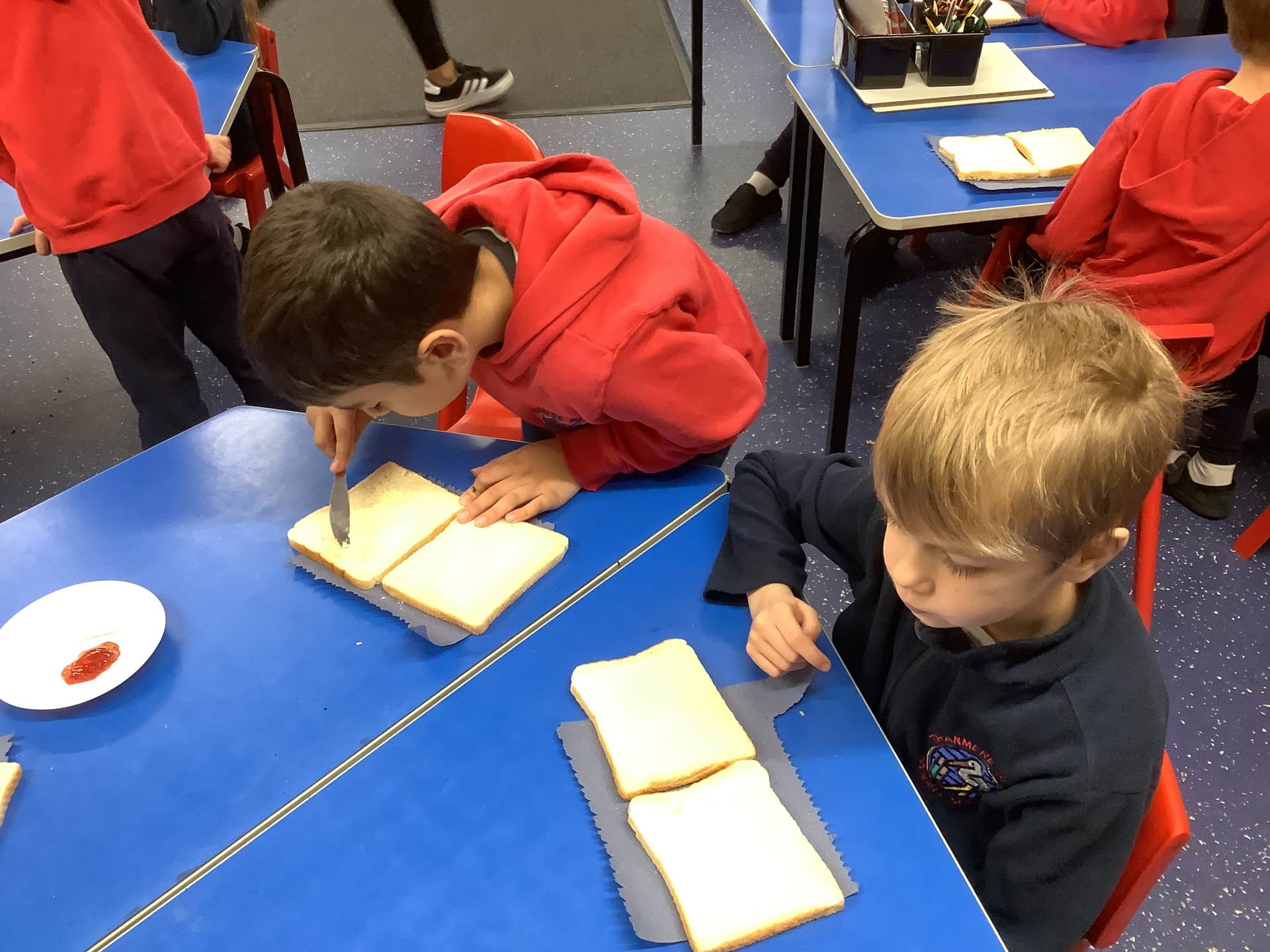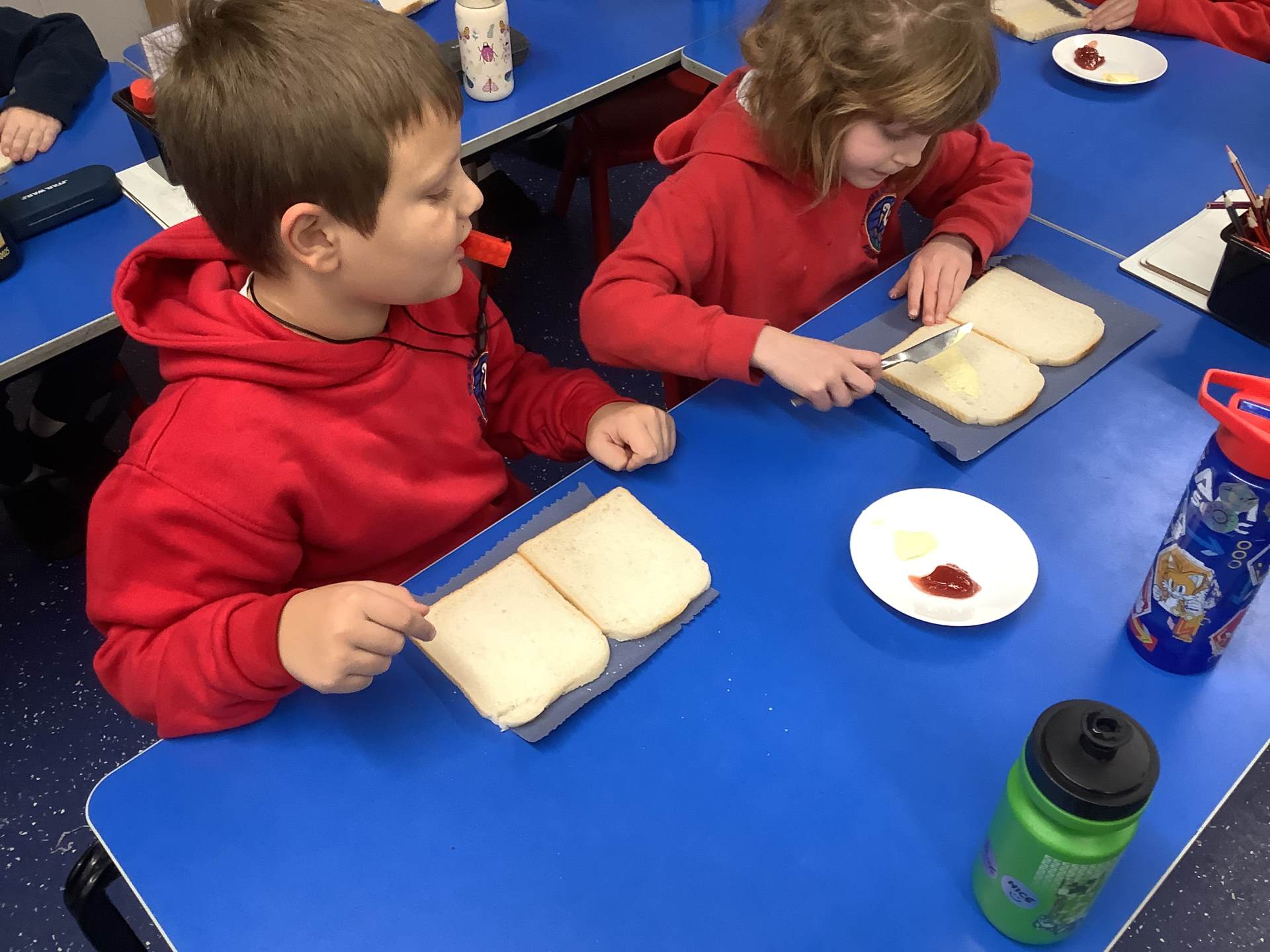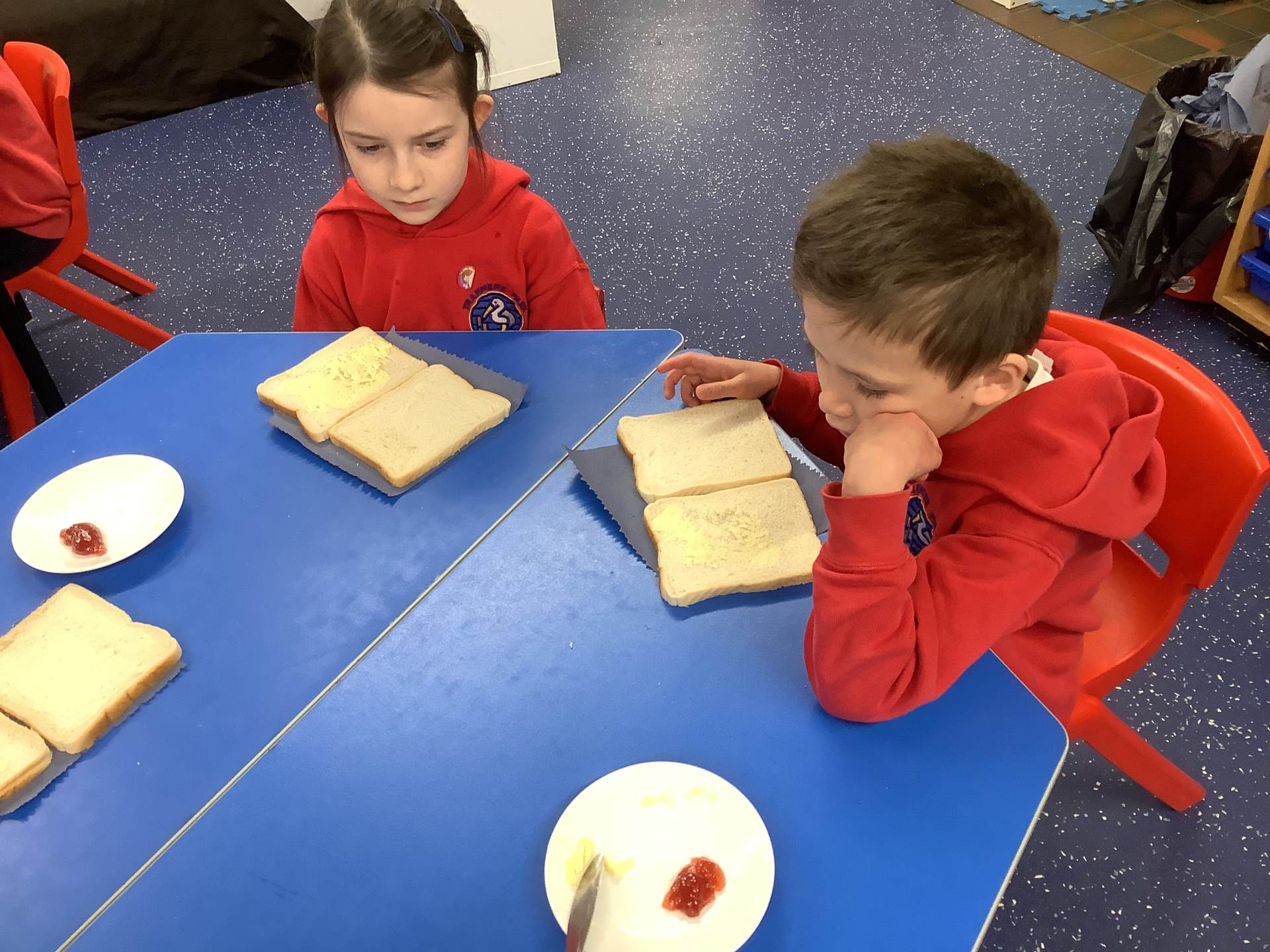 They all did a fantastic job of making their jam sandwiches, and an even better job of eating them!
