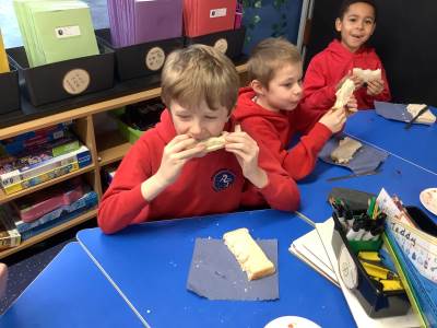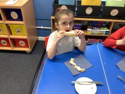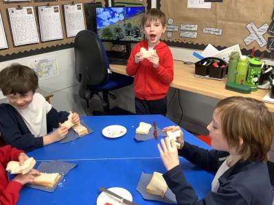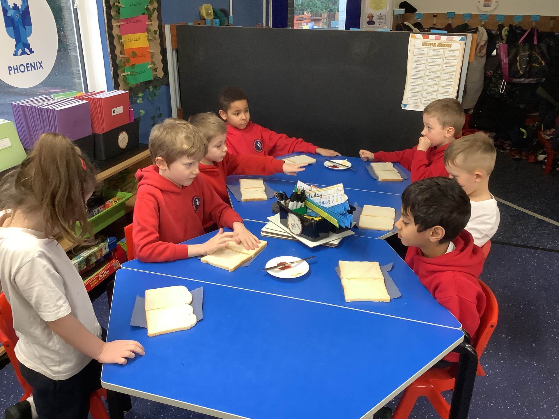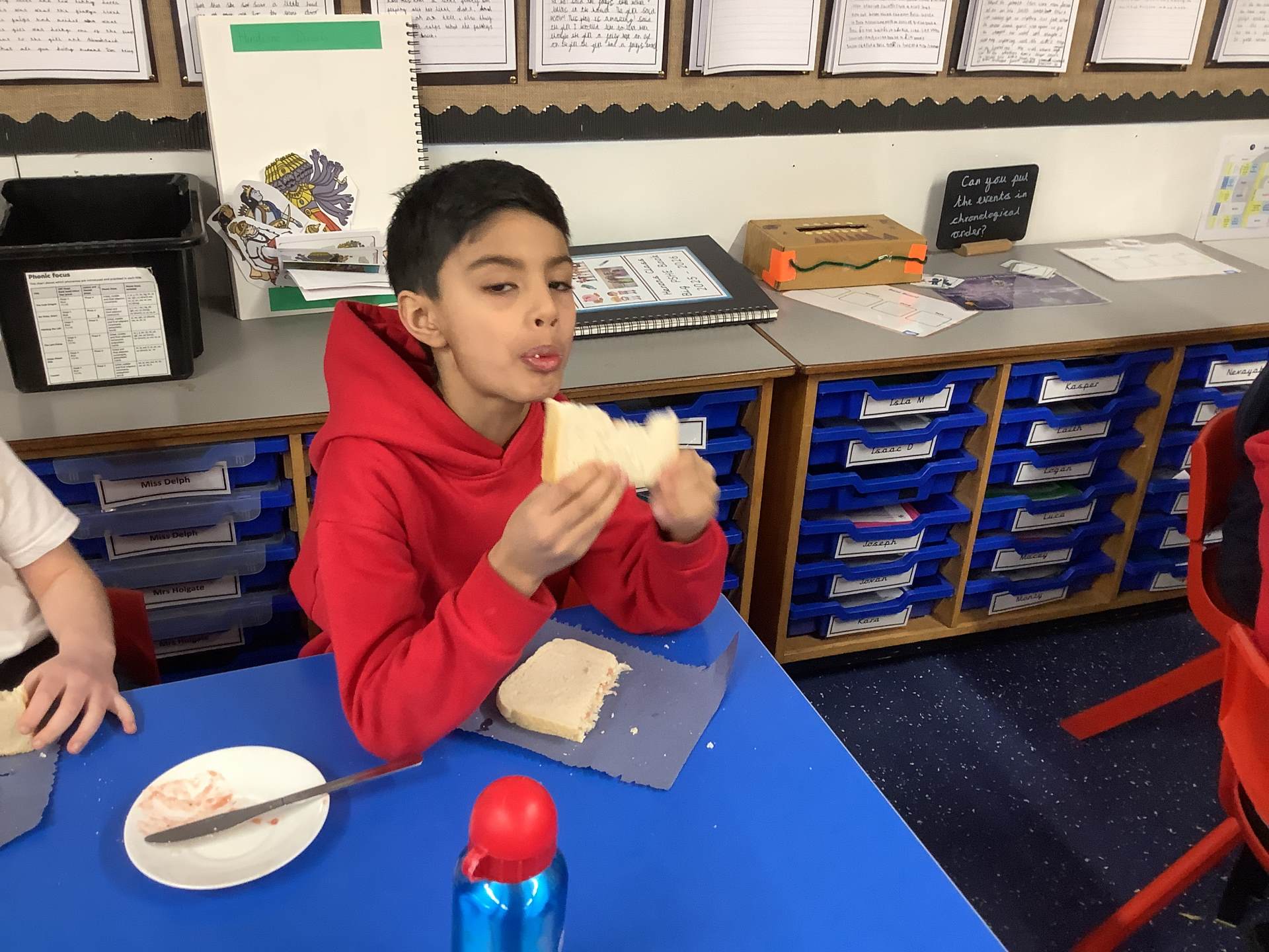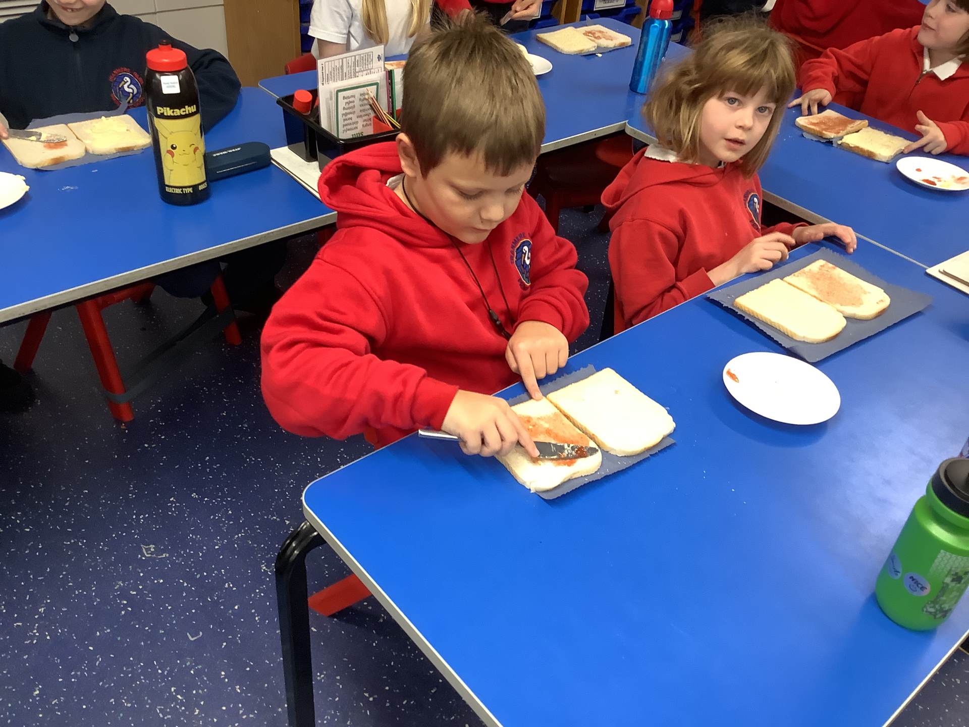 They all did a fantastic job of making their jam sandwiches, and an even better job of eating them!