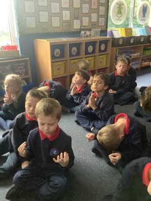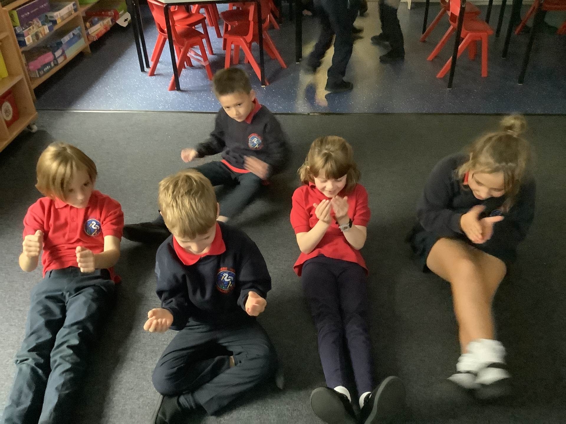 Next, we imagined a day at the beach. Using items linked to holidays, sounds of waves, and a guided visualisation, the children explored what it might feel like to be by the sea. This helped them focus on using their senses and descriptive language.