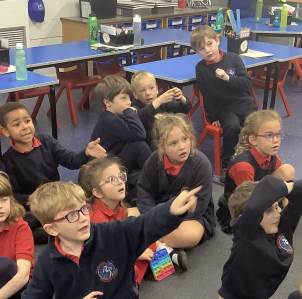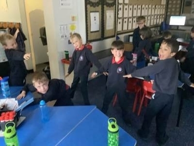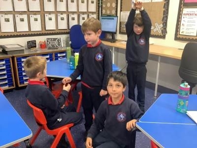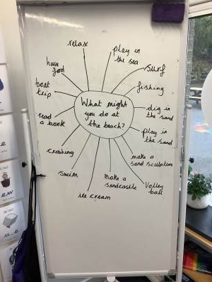 Following this the children worked in small groups acting out typical beach scenes like surfing, relaxing on a sun lounger and playing volleyball. Each group created a freeze frame, and children described what they were doing using clear, confident voices.