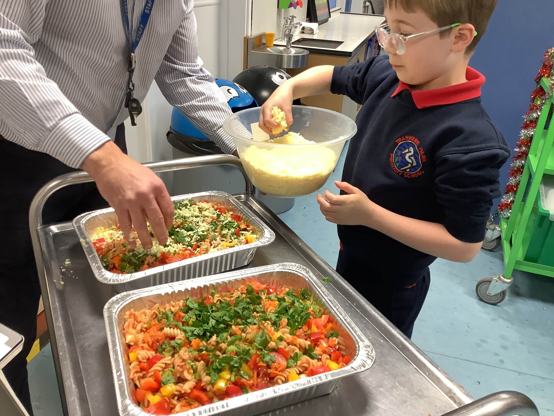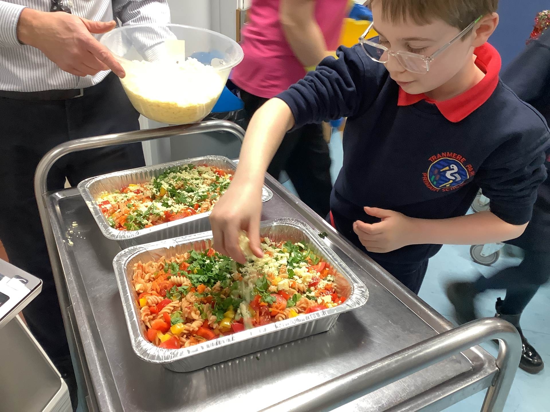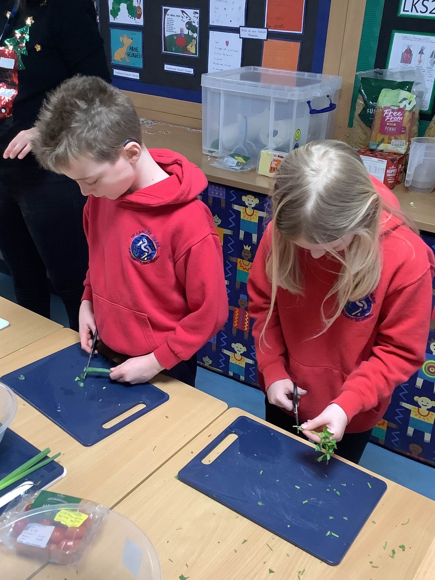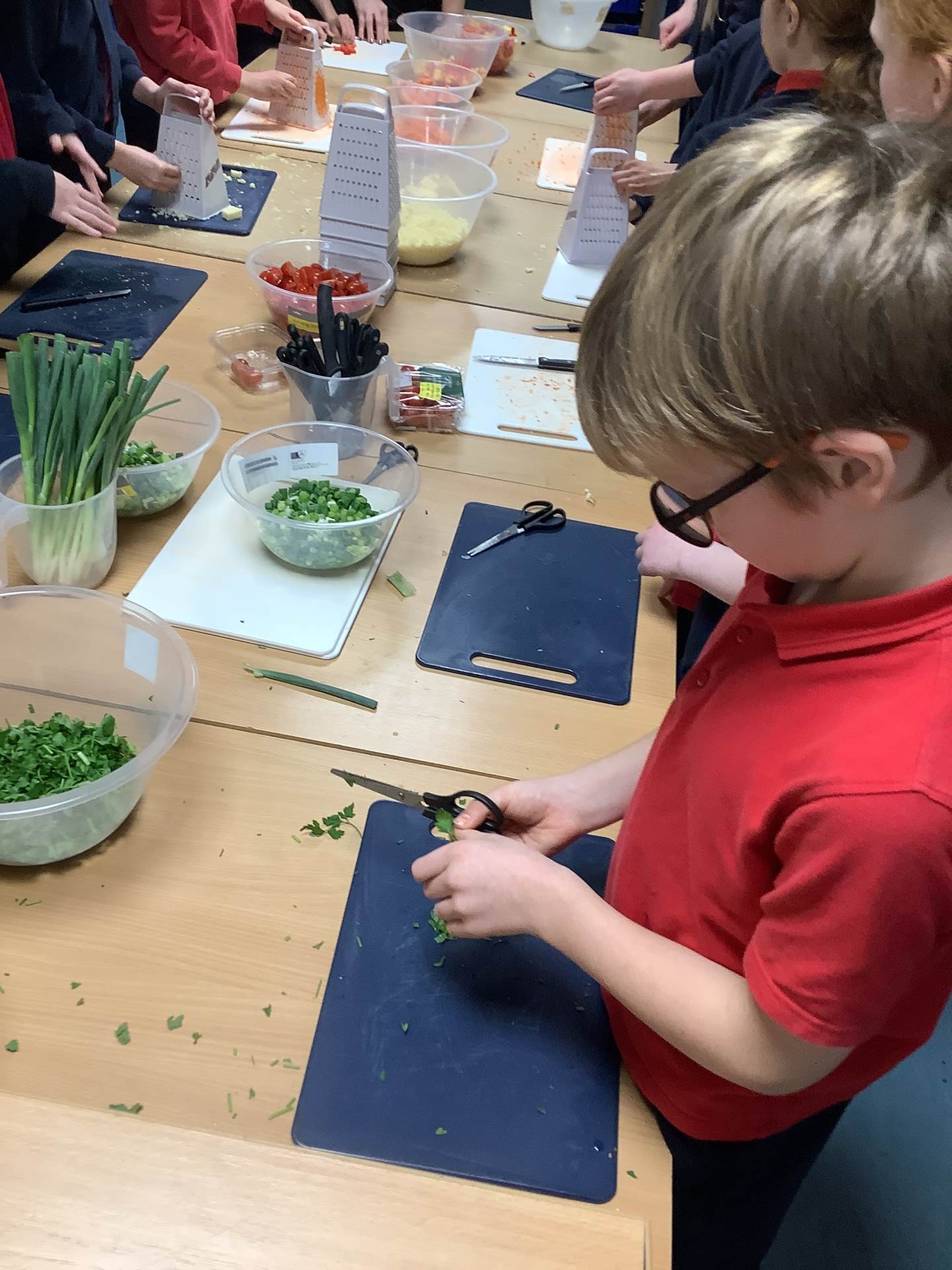 On Wednesday, Lower Key Stage Two made their own healthy pasta bake - it was packed with vegetables! To make it, we boiled pasta, grated cheese and carrot, chopped peppers and tomatoes, snipped spring onions and basil. We then added our own tomato sauce and mixed it all together. Once done, we baked it in the oven and our pasta bake was finished! We loved tasting it at home. Have a look at how much fun we had when we created it!