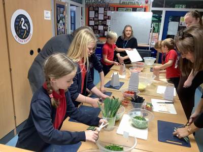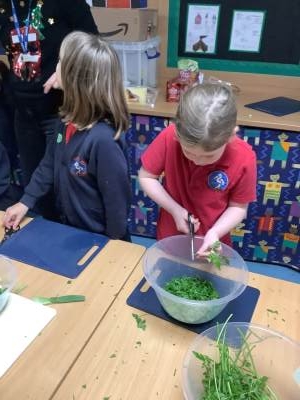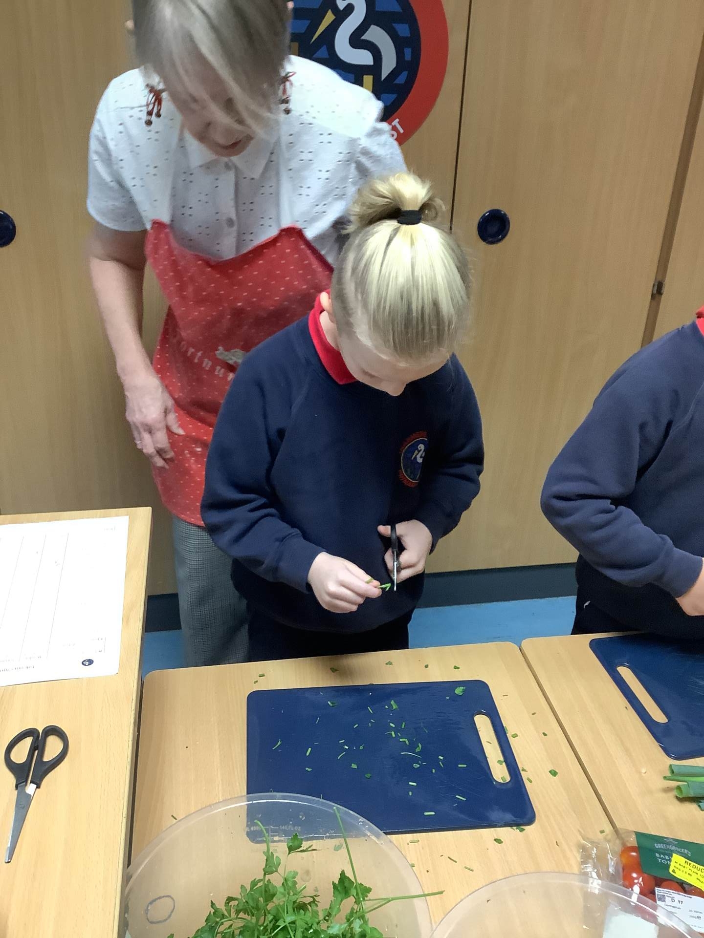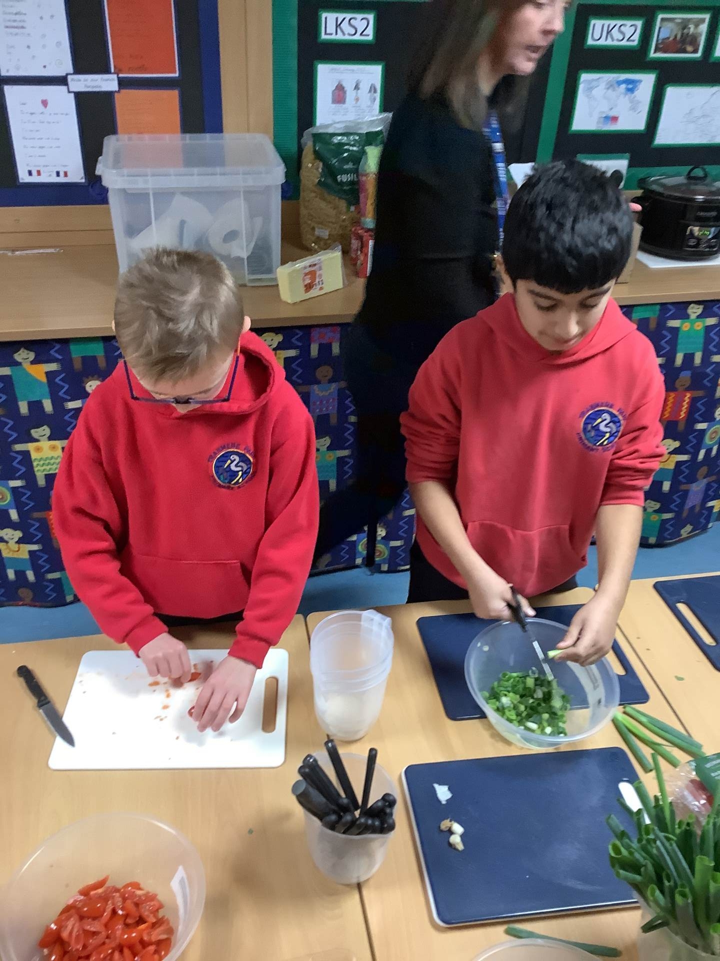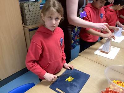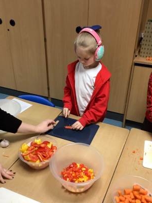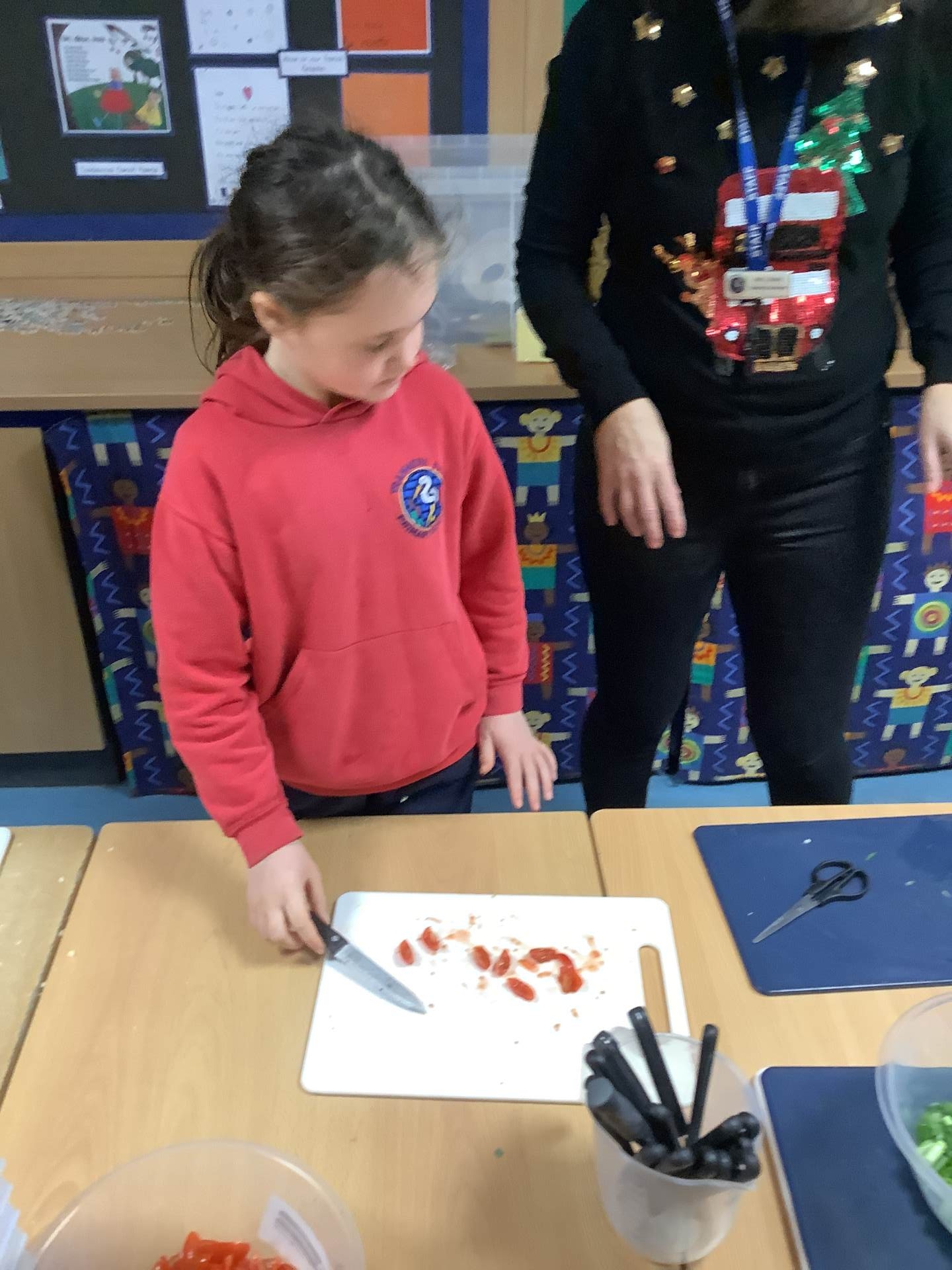 On Wednesday, Lower Key Stage Two made their own healthy pasta bake - it was packed with vegetables! To make it, we boiled pasta, grated cheese and carrot, chopped peppers and tomatoes, snipped spring onions and basil. We then added our own tomato sauce and mixed it all together. Once done, we baked it in the oven and our pasta bake was finished! We loved tasting it at home. Have a look at how much fun we had when we created it!
