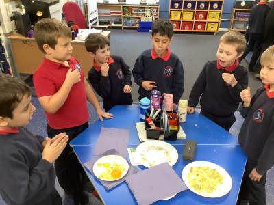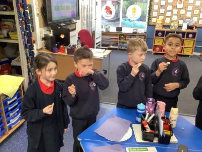 As part of our science learning, we discussed what we already knew about the 5 senses and identified which body part we use for each sense. We then completed an investigation to see how good our senses were. Which is tastier - chocolate or lemon?! See if you can work out our answers by looking at our photos below!