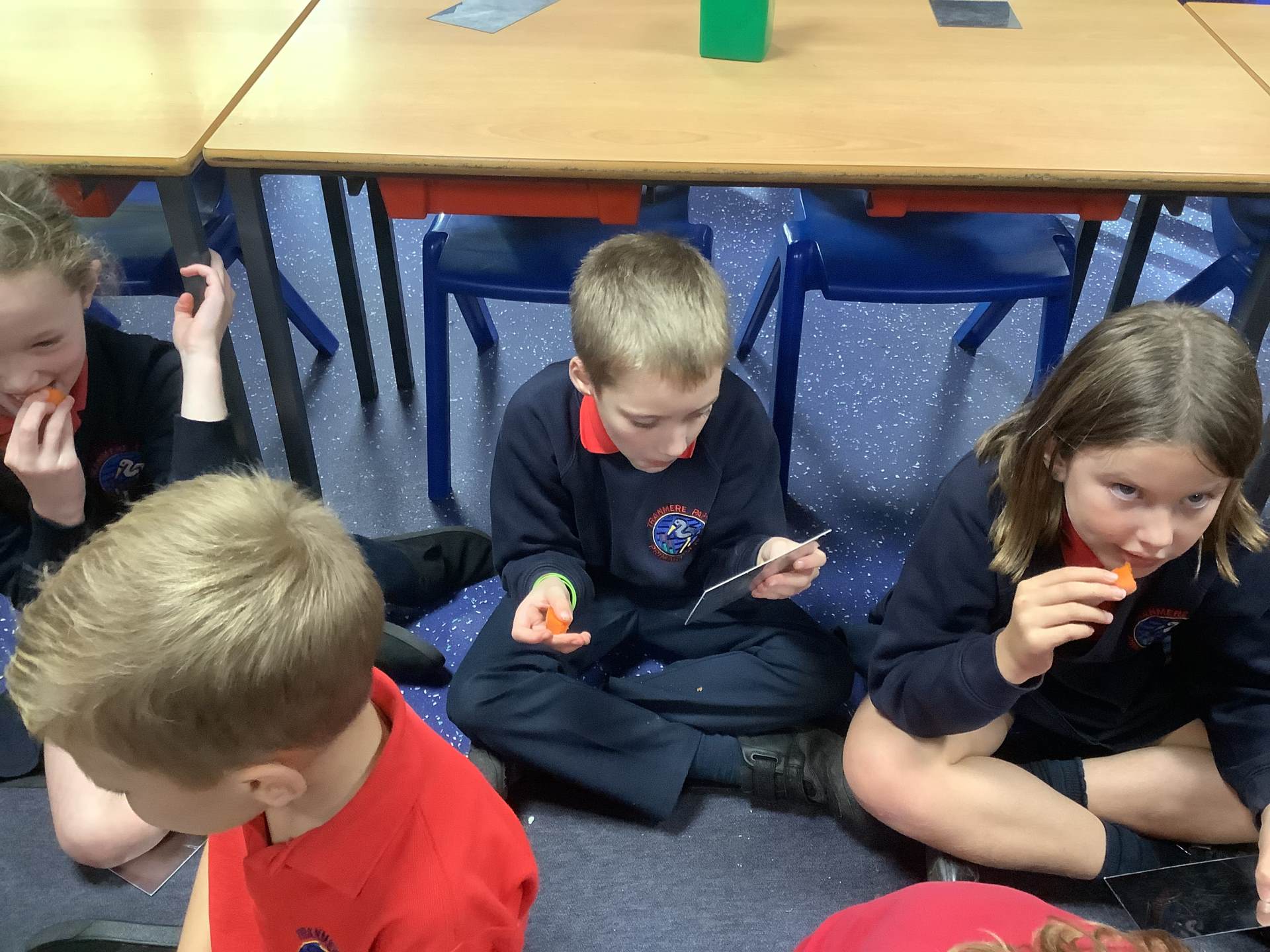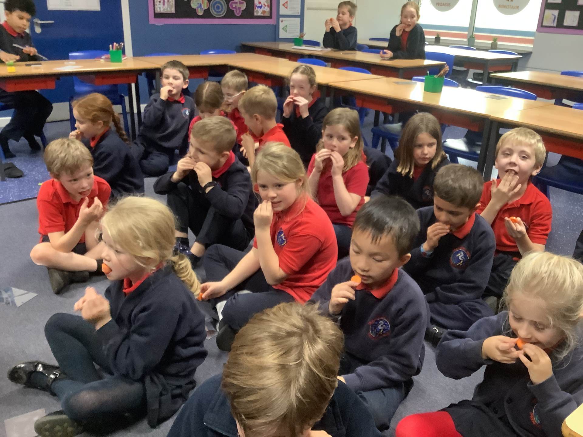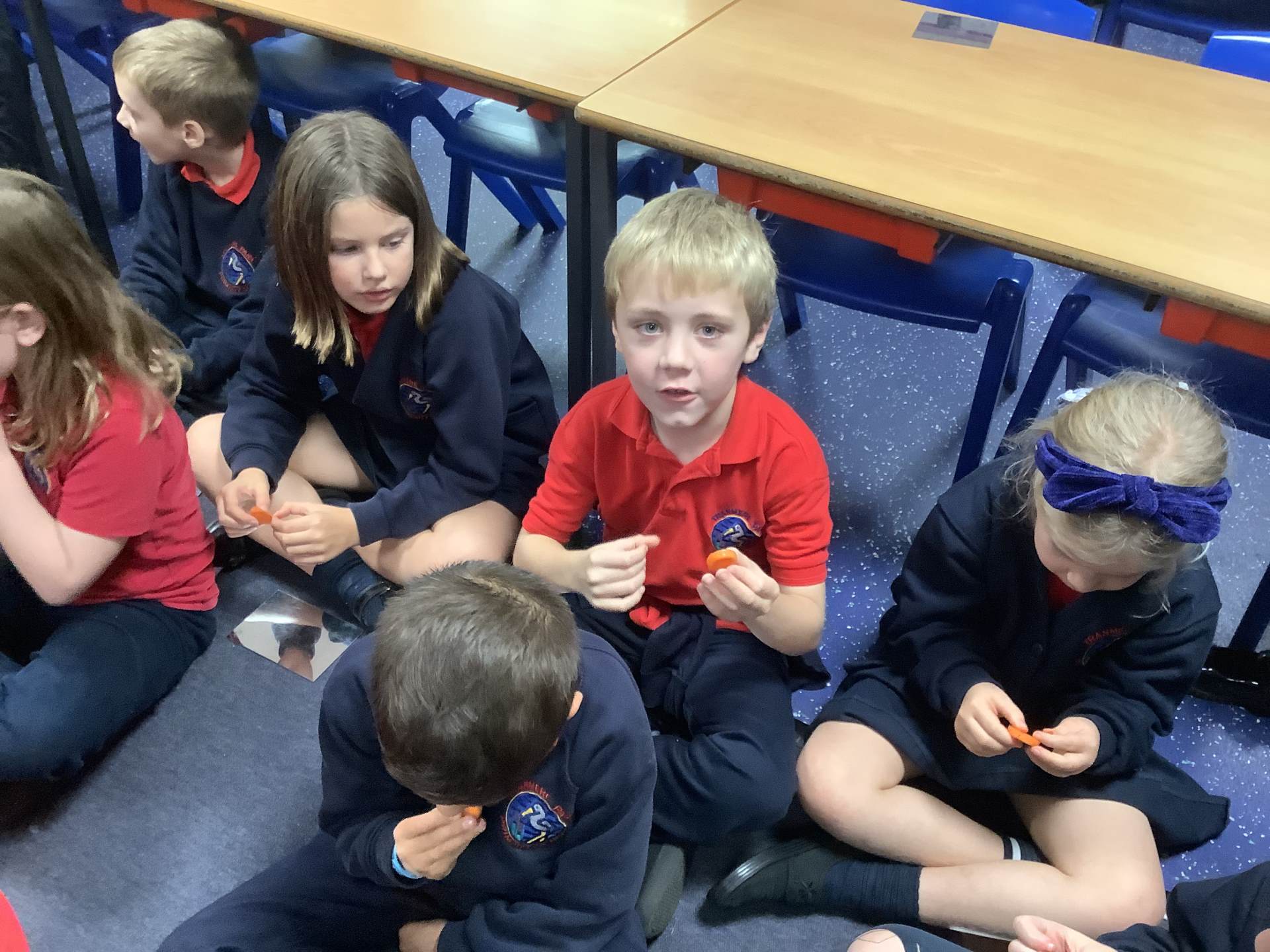 Red Kites learnt about the four different types of teeth that we have - incisors, canines, premolars and molars - and their functions. They looked in mirrors to identify their own teeth and bit into bread and carrots and tried to work out which teeth they were using to bite and chew. Then they looked at animal teeth and discussed animal diets e.g. carnivore, herbivore and omnivore and how their particular teeth supported their diets.