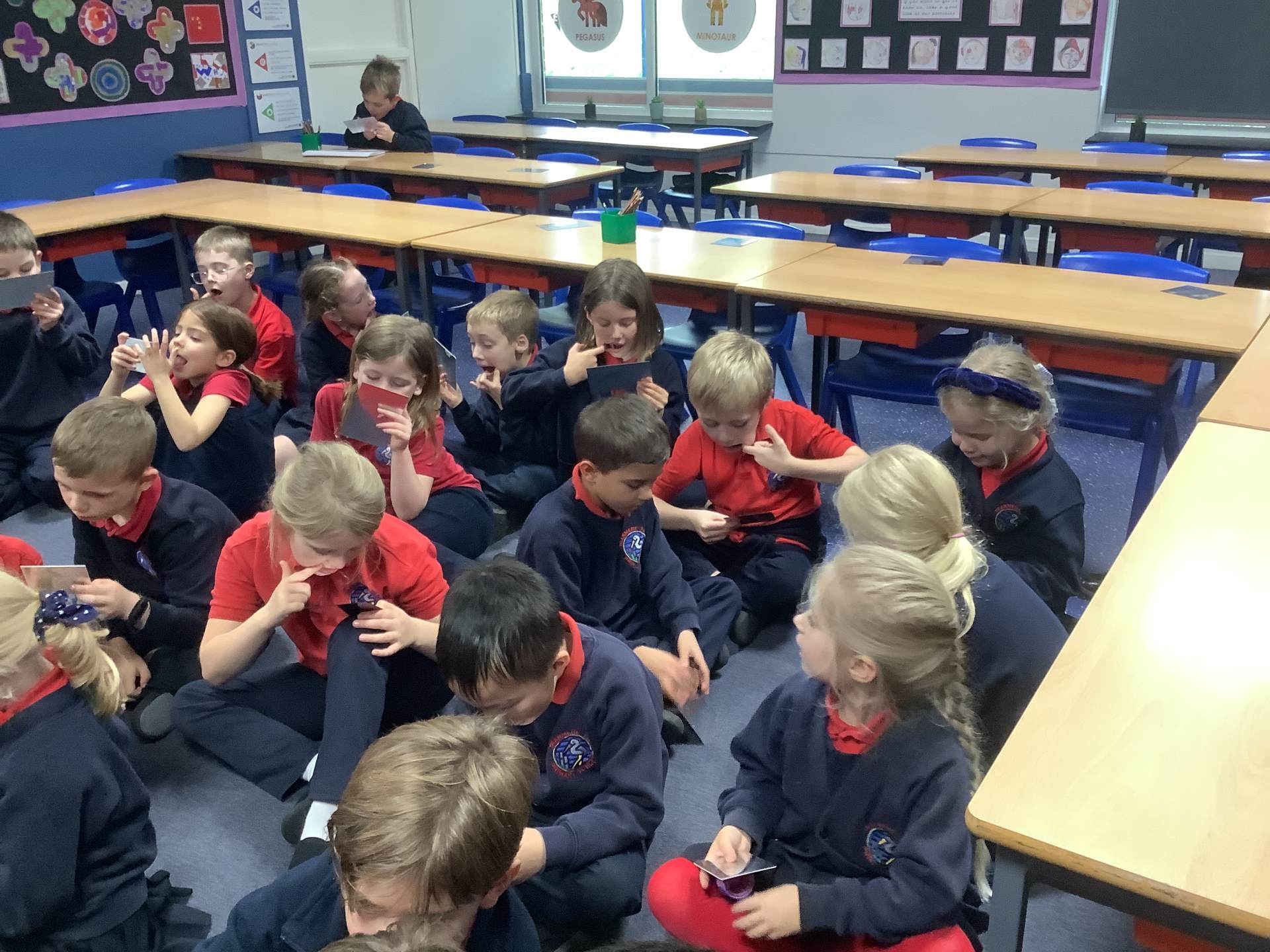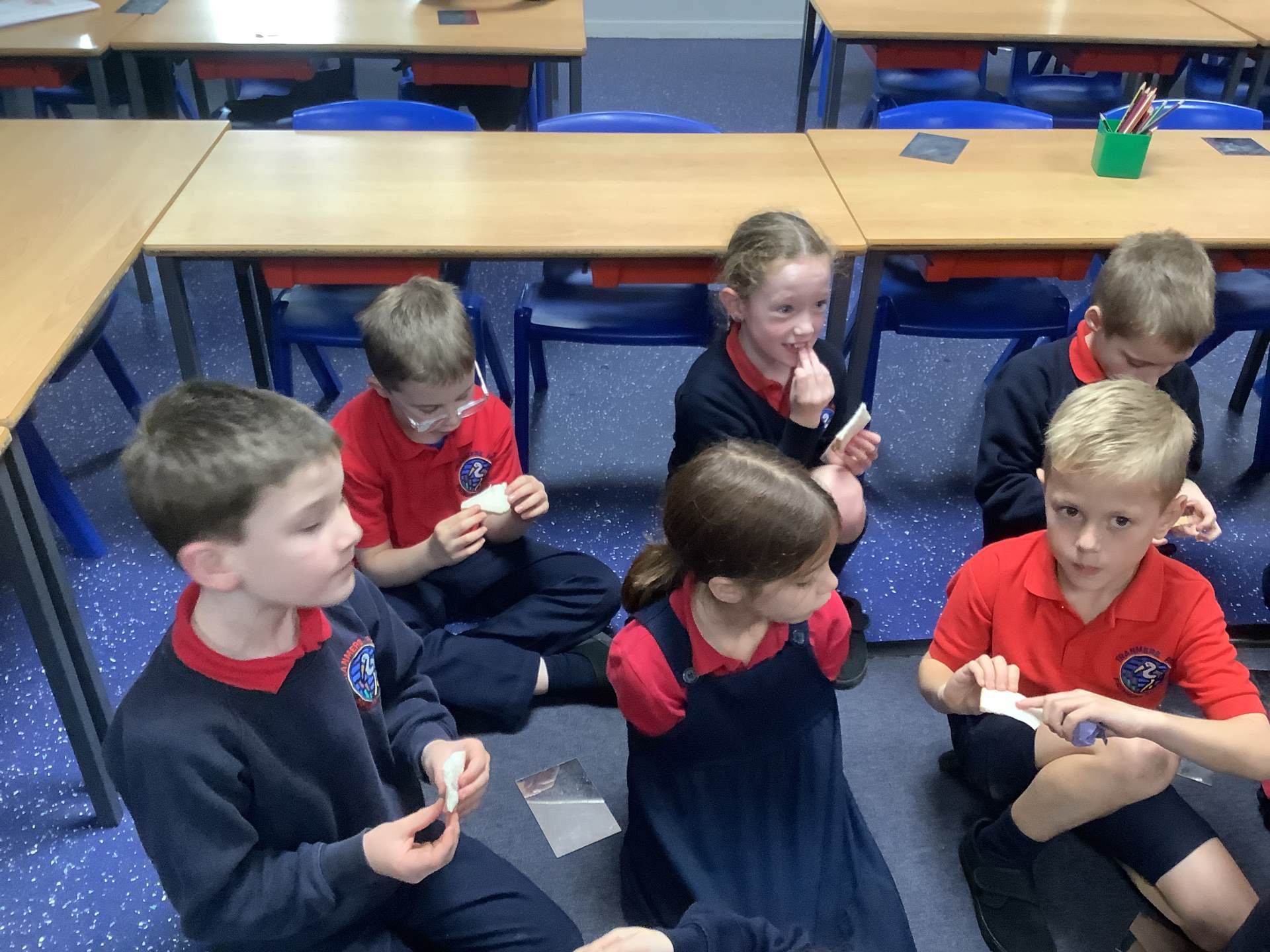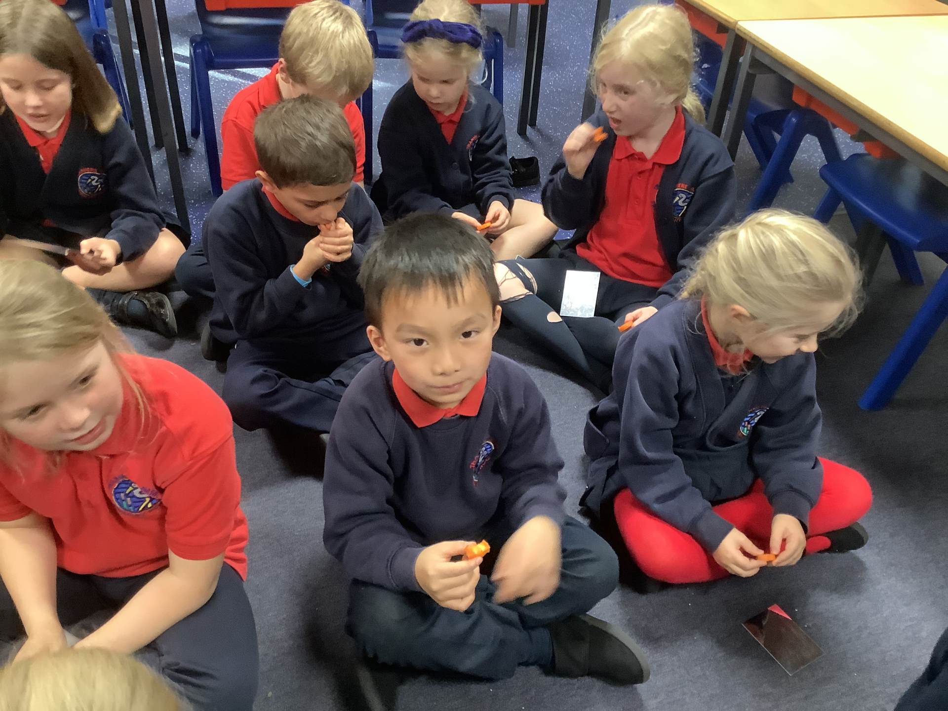 Red Kites learnt about the four different types of teeth that we have - incisors, canines, premolars and molars - and their functions. They looked in mirrors to identify their own teeth and bit into bread and carrots and tried to work out which teeth they were using to bite and chew. Then they looked at animal teeth and discussed animal diets e.g. carnivore, herbivore and omnivore and how their particular teeth supported their diets.