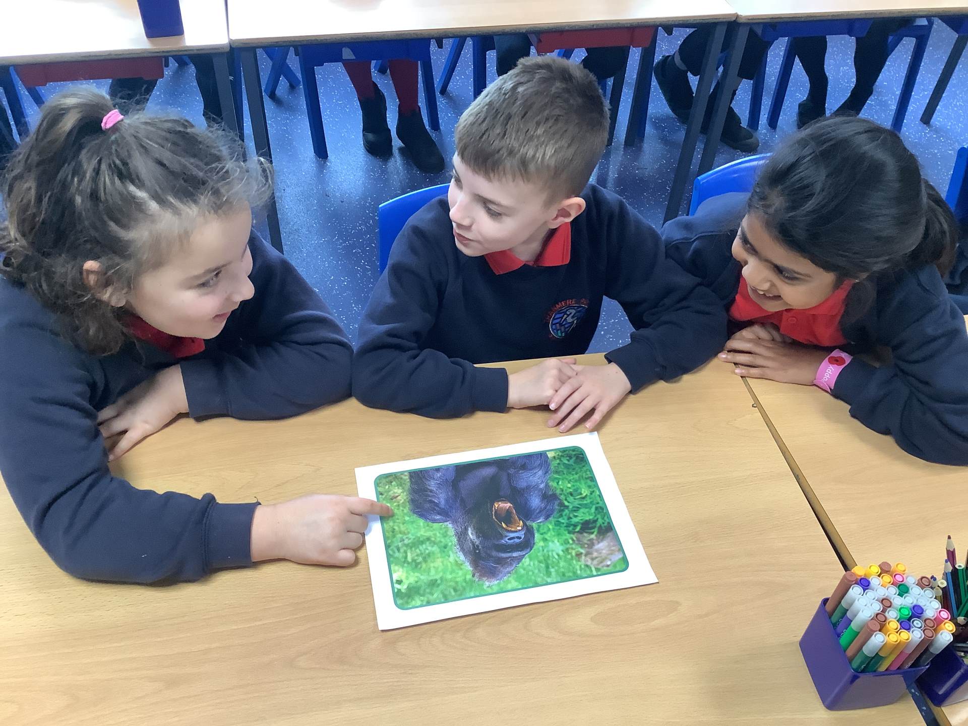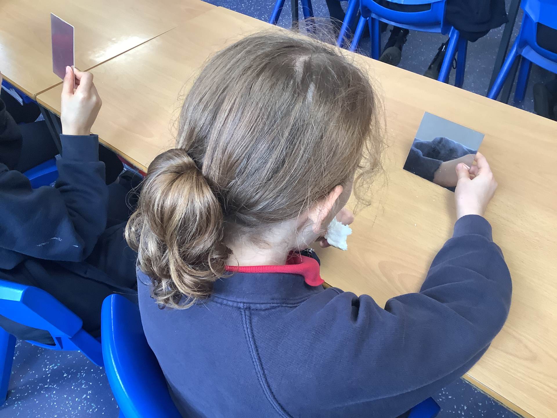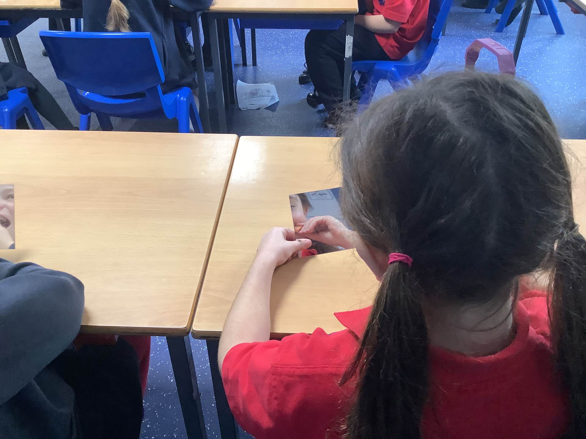 Today, the children looked at the four types of teeth; incisors, canines, molars and premolars. They spent time looking in mirrors to identify these teeth and how they use them to chew different foods. They also looked at different animals’ teeth and why they were different depending on their diet.