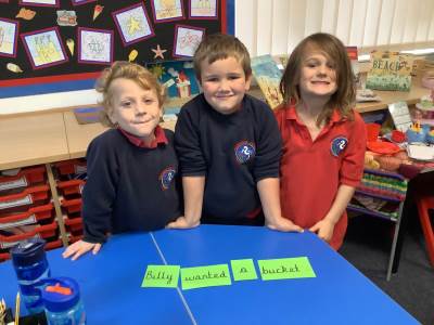 In writing, our lessons are focused around the story of Billy’s Bucket. Today, we revisited capital letters and full stops and focused on ensuring that a sentence makes sense. We fixed some examples of muddled sentences altogether before the children had a go in small groups. By the end of the lesson, we all understood that a sentence needs a capital letter, full stop and HAS to make sense! Eagles have now promised that they will not forget capital letters and full stops in their writing.😁