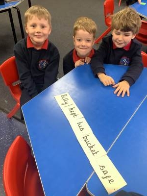 In writing, our lessons are focused around the story of Billy’s Bucket. Today, we revisited capital letters and full stops and focused on ensuring that a sentence makes sense. We fixed some examples of muddled sentences altogether before the children had a go in small groups. By the end of the lesson, we all understood that a sentence needs a capital letter, full stop and HAS to make sense! Skylarks have now promised that they will not forget capital letters and full stops in their writing.😁