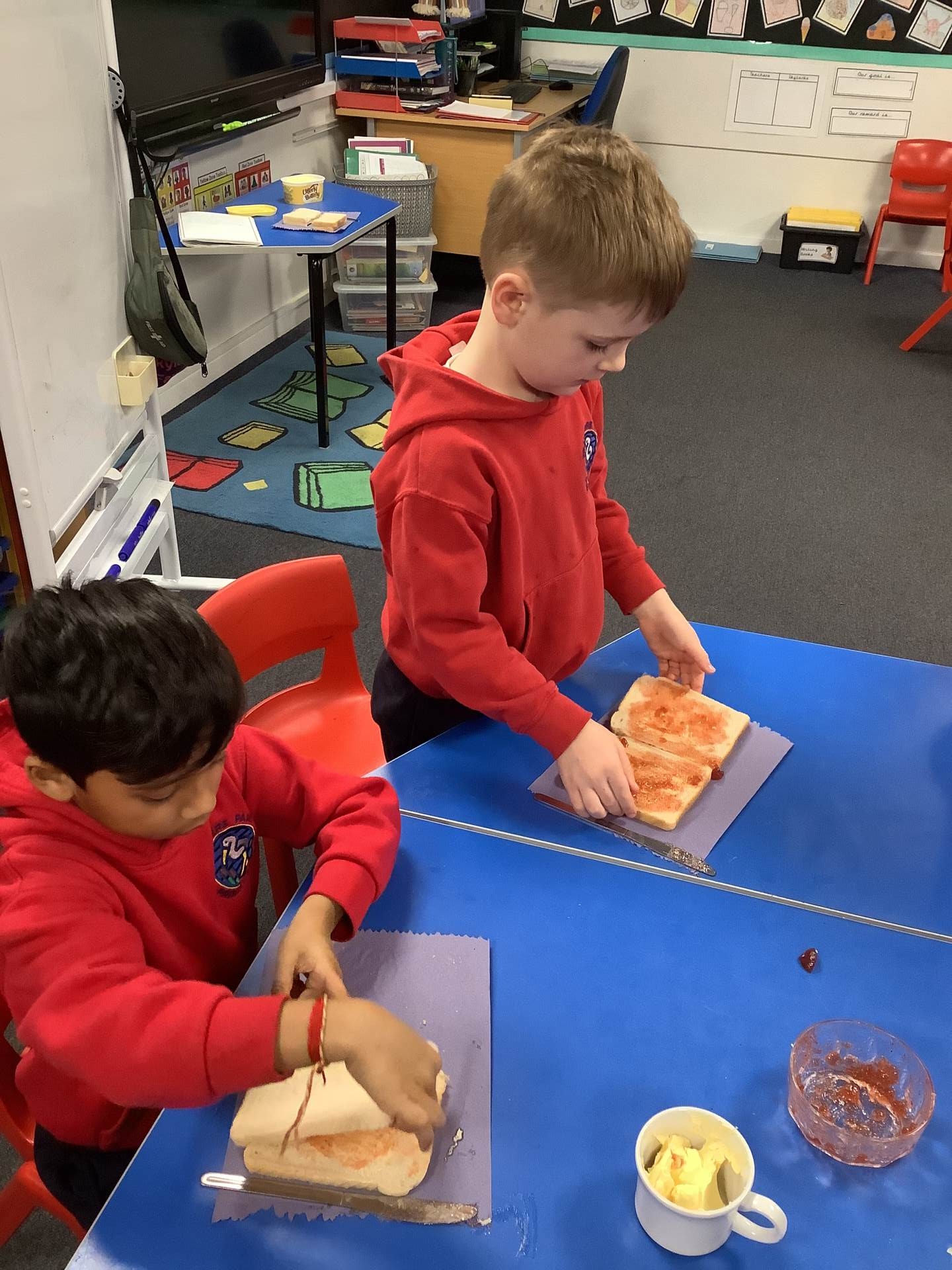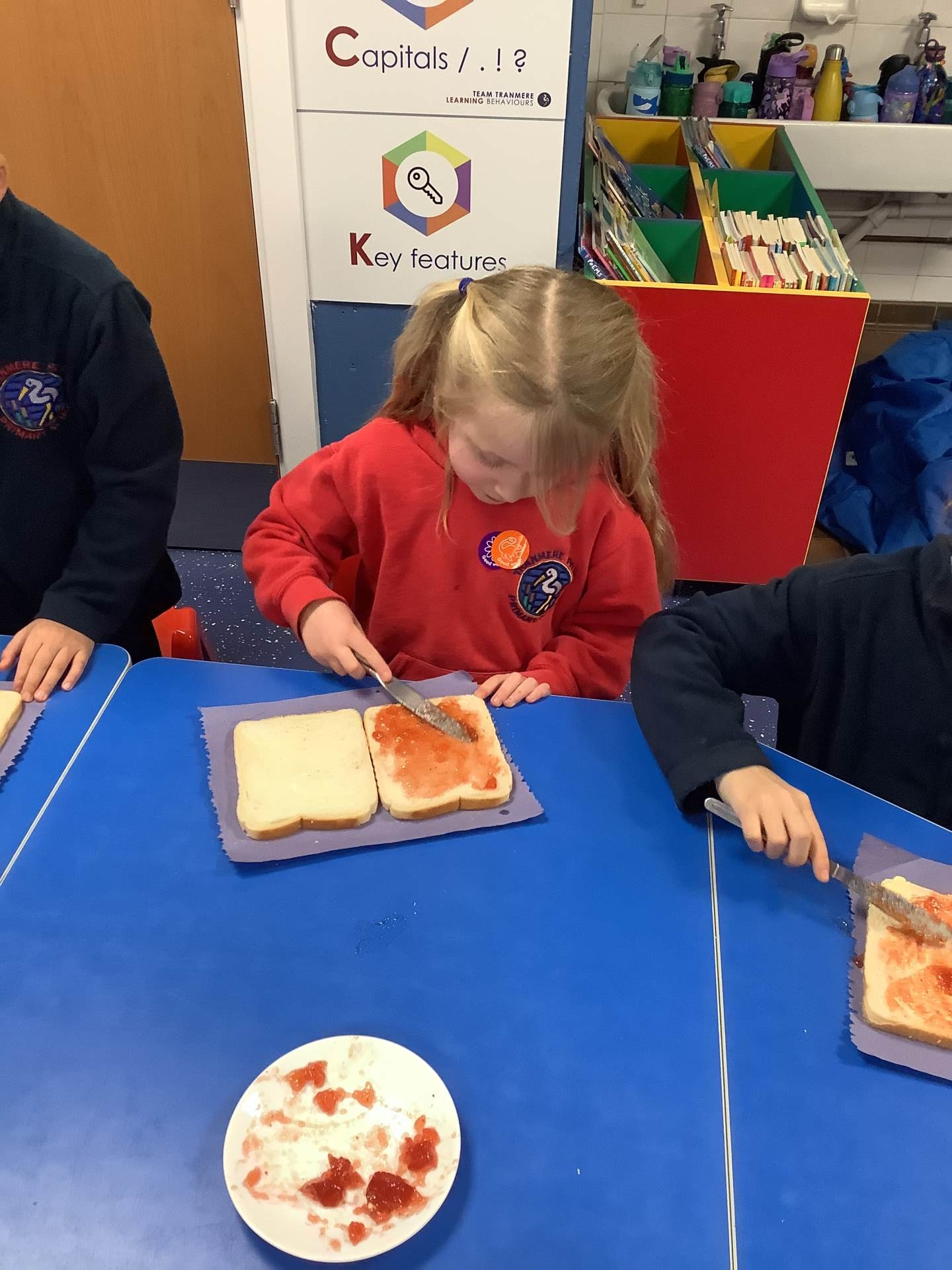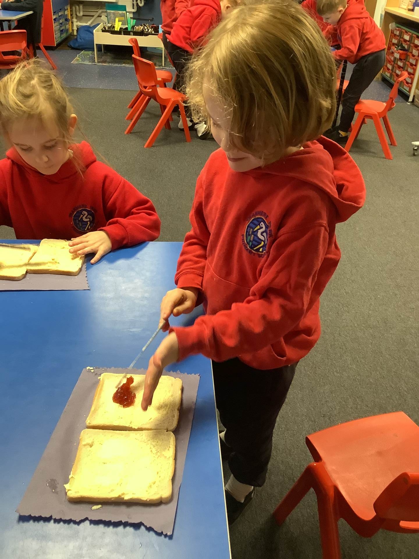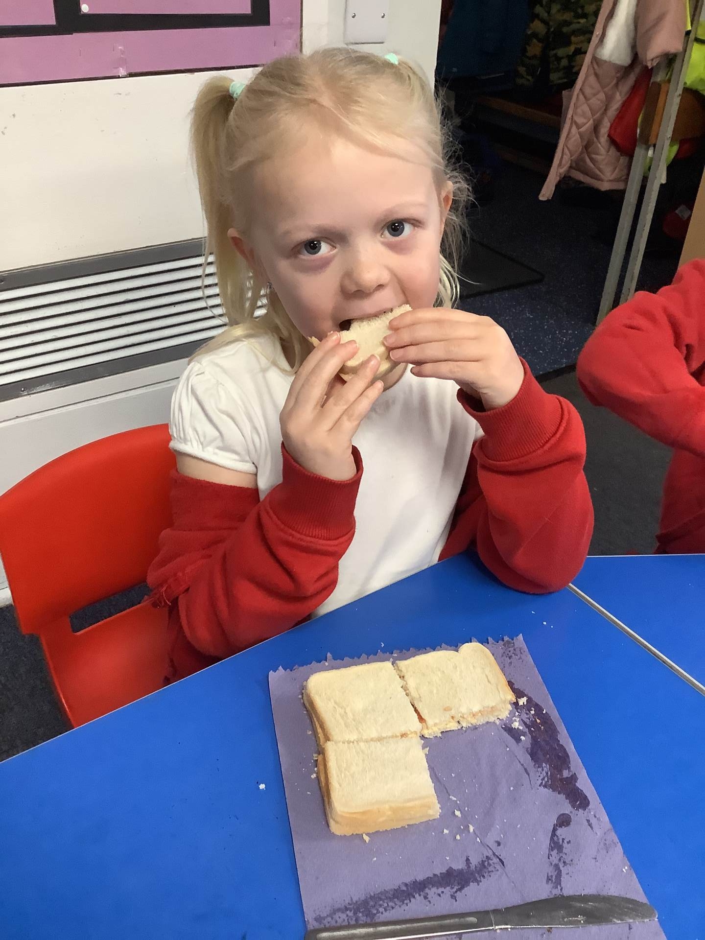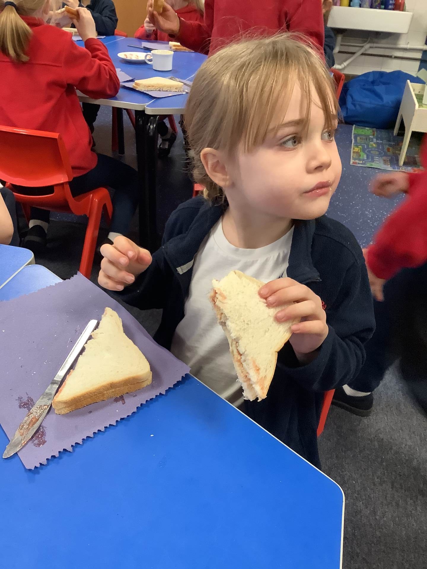 They all did a fantastic job of making their jam sandwiches, and an even better job of eating them!