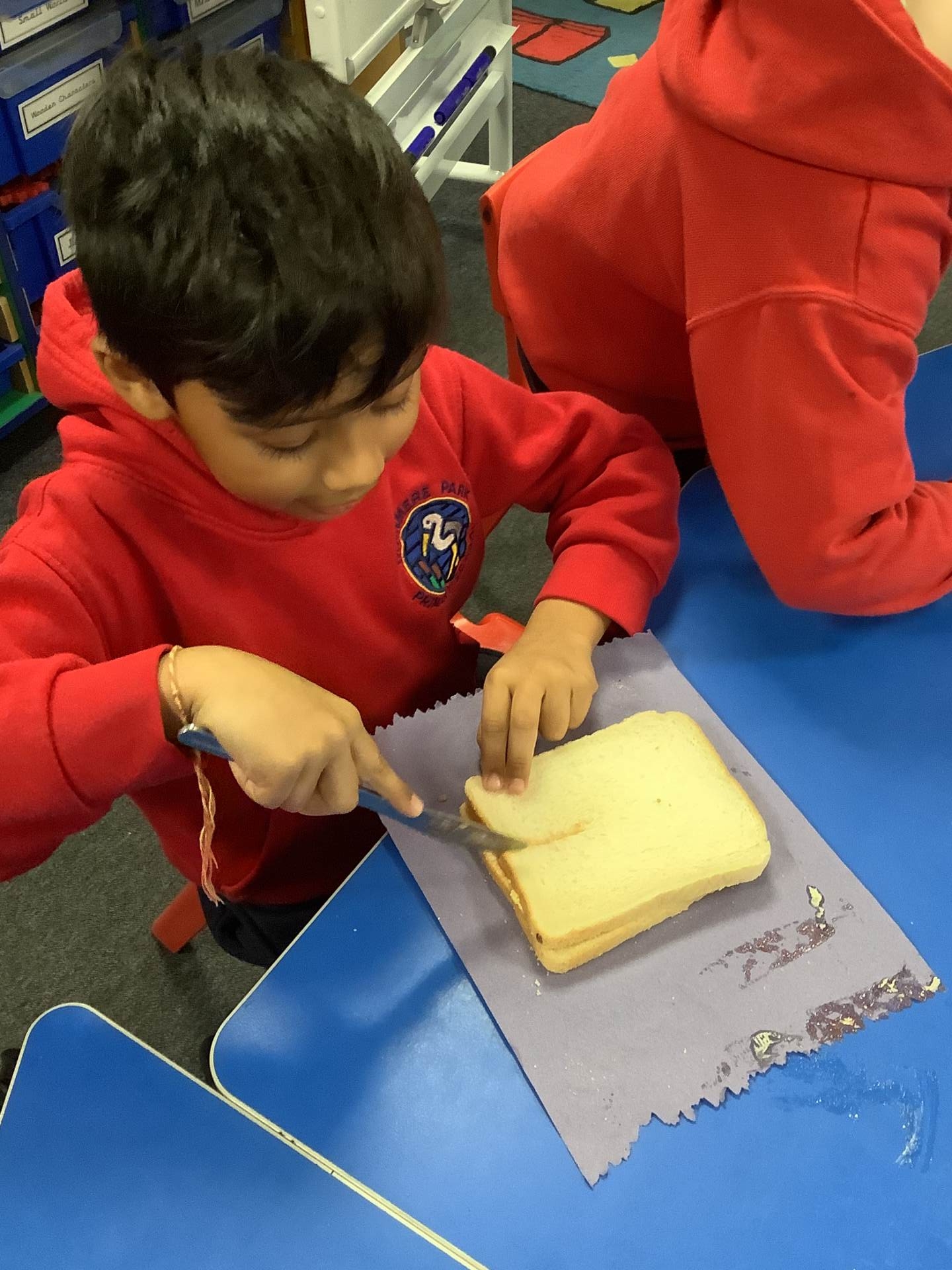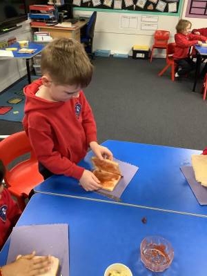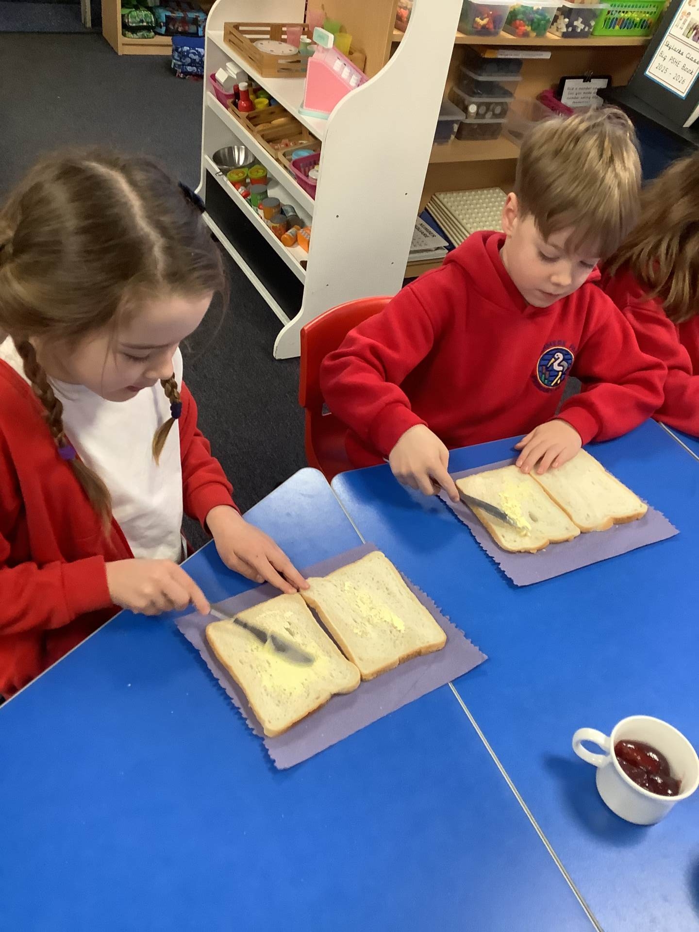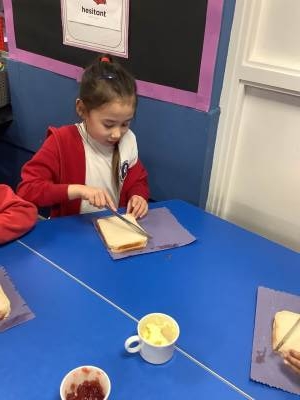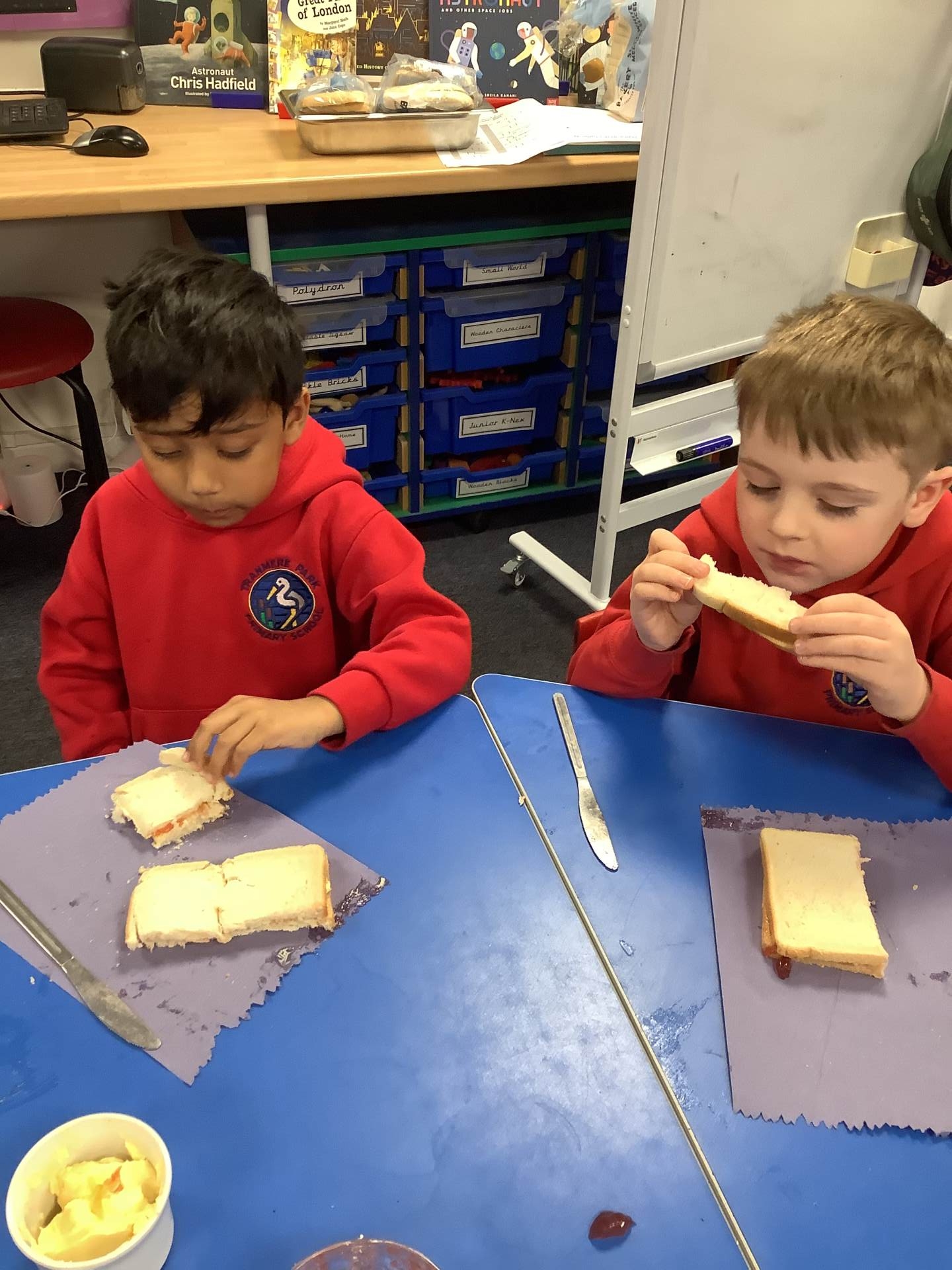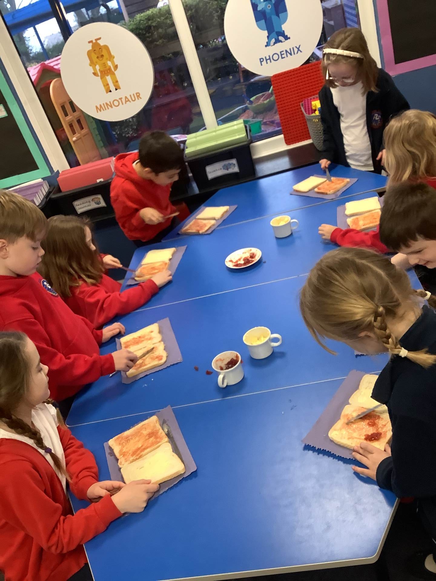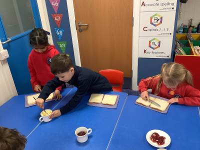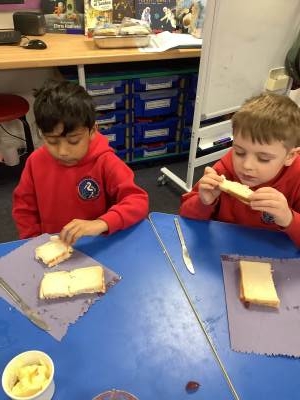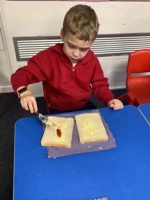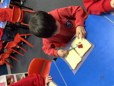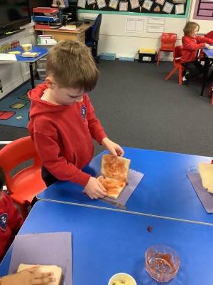 They all did a fantastic job of making their jam sandwiches, and an even better job of eating them!