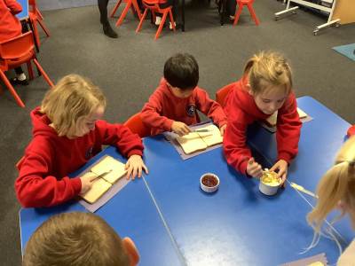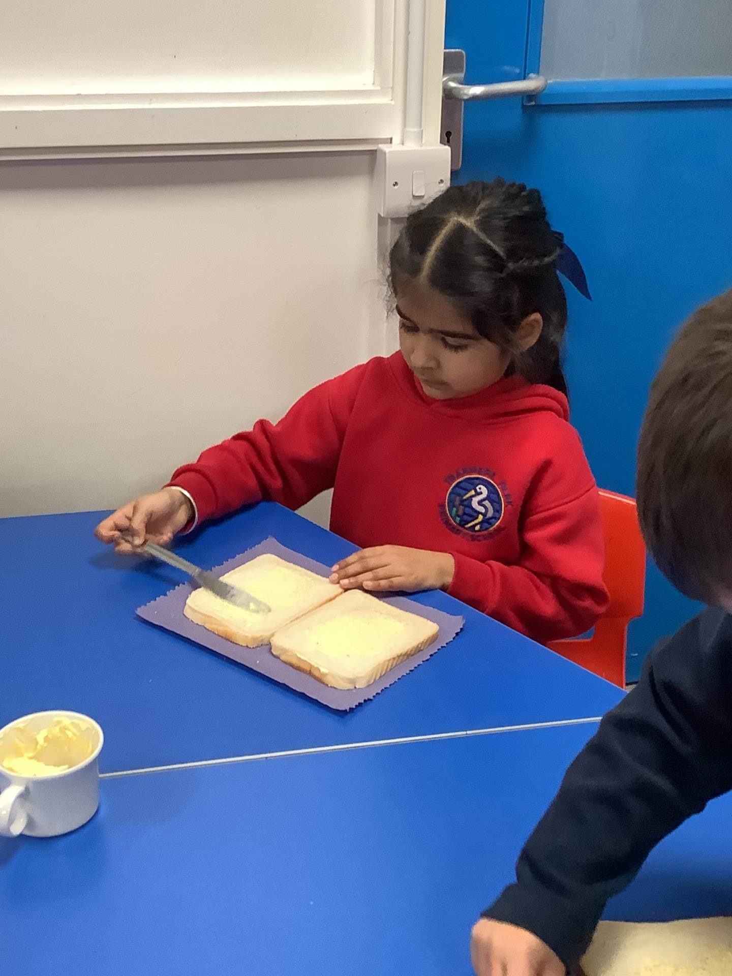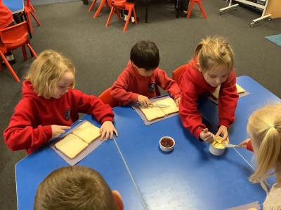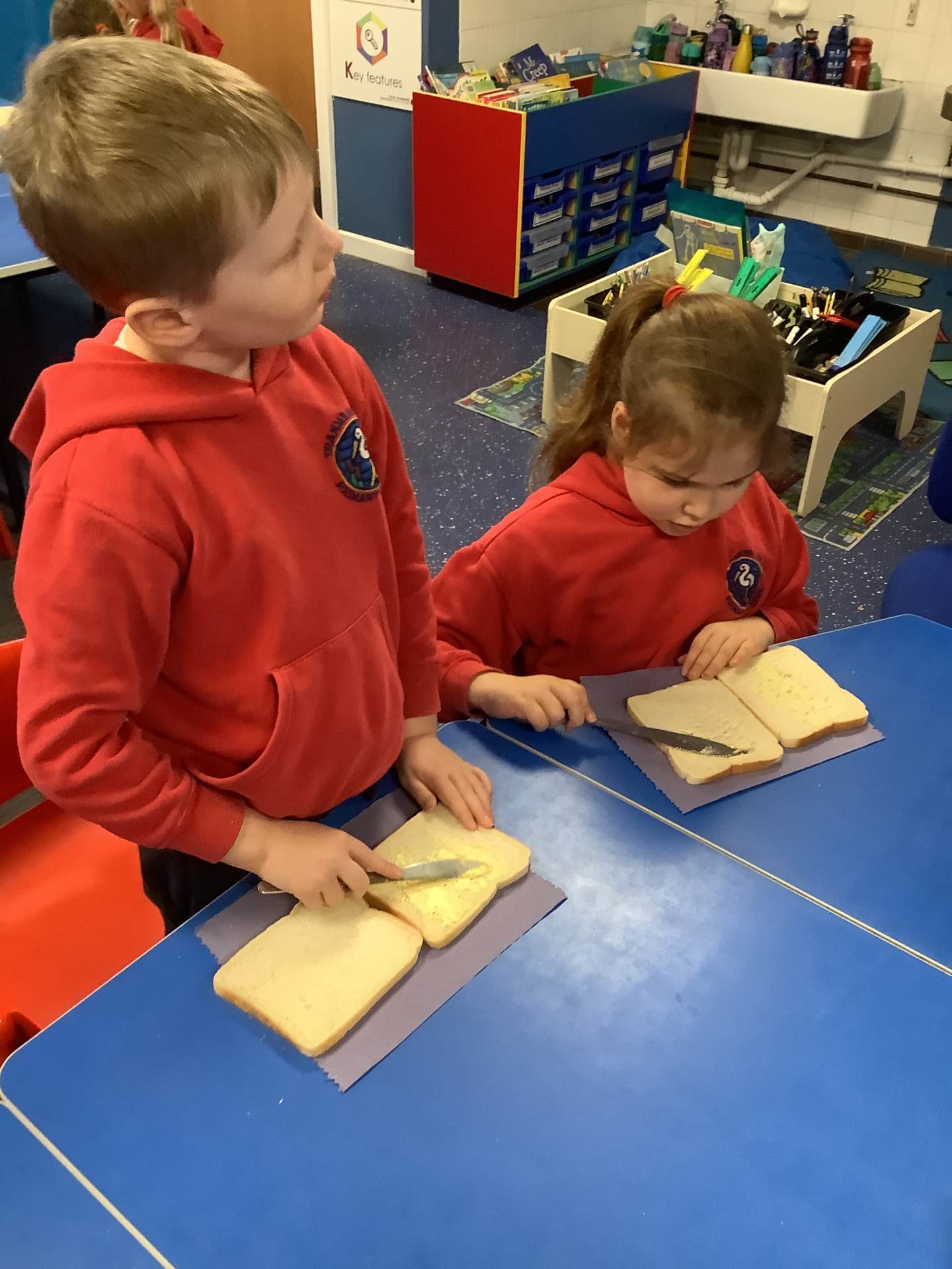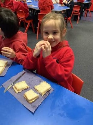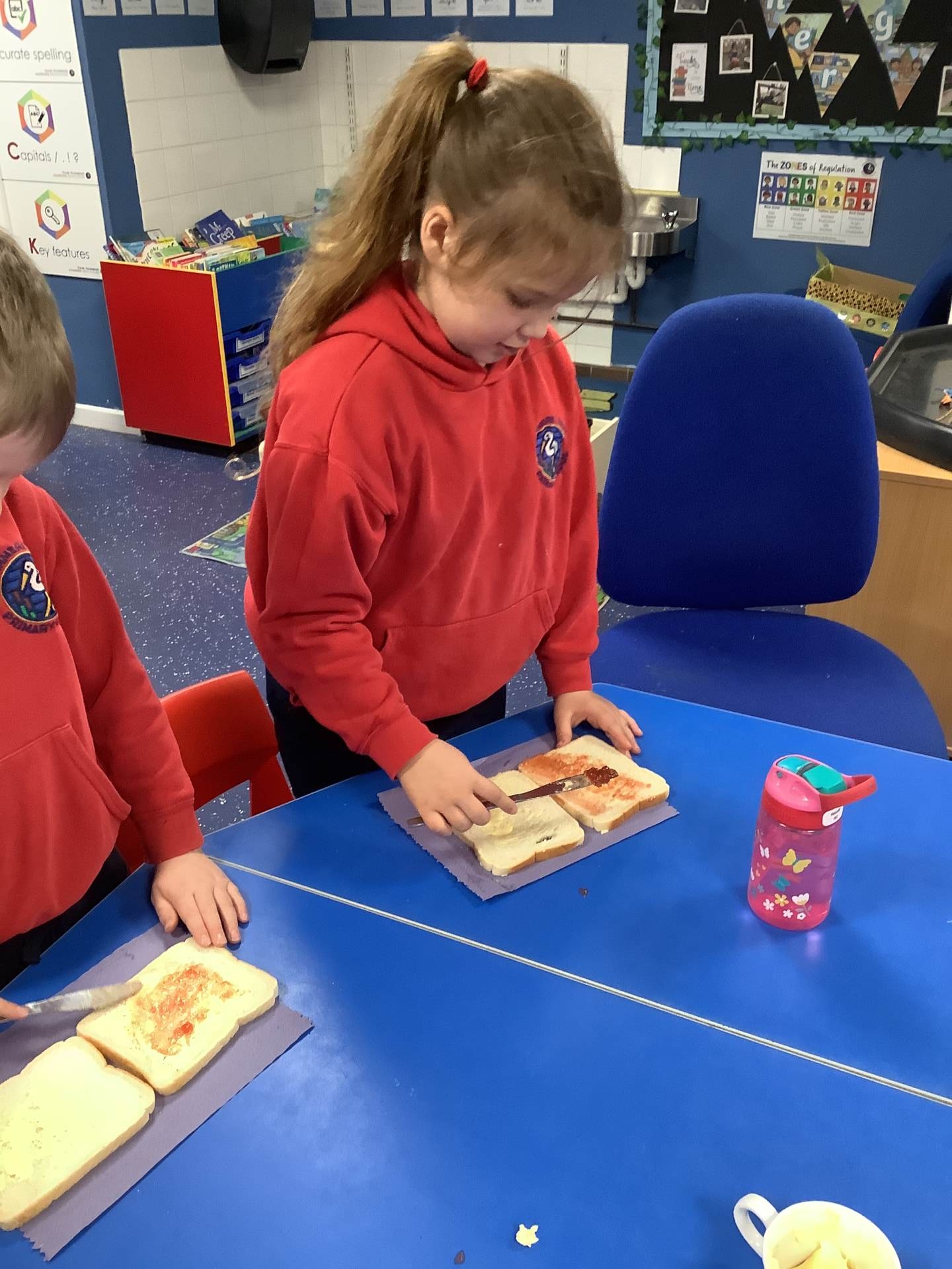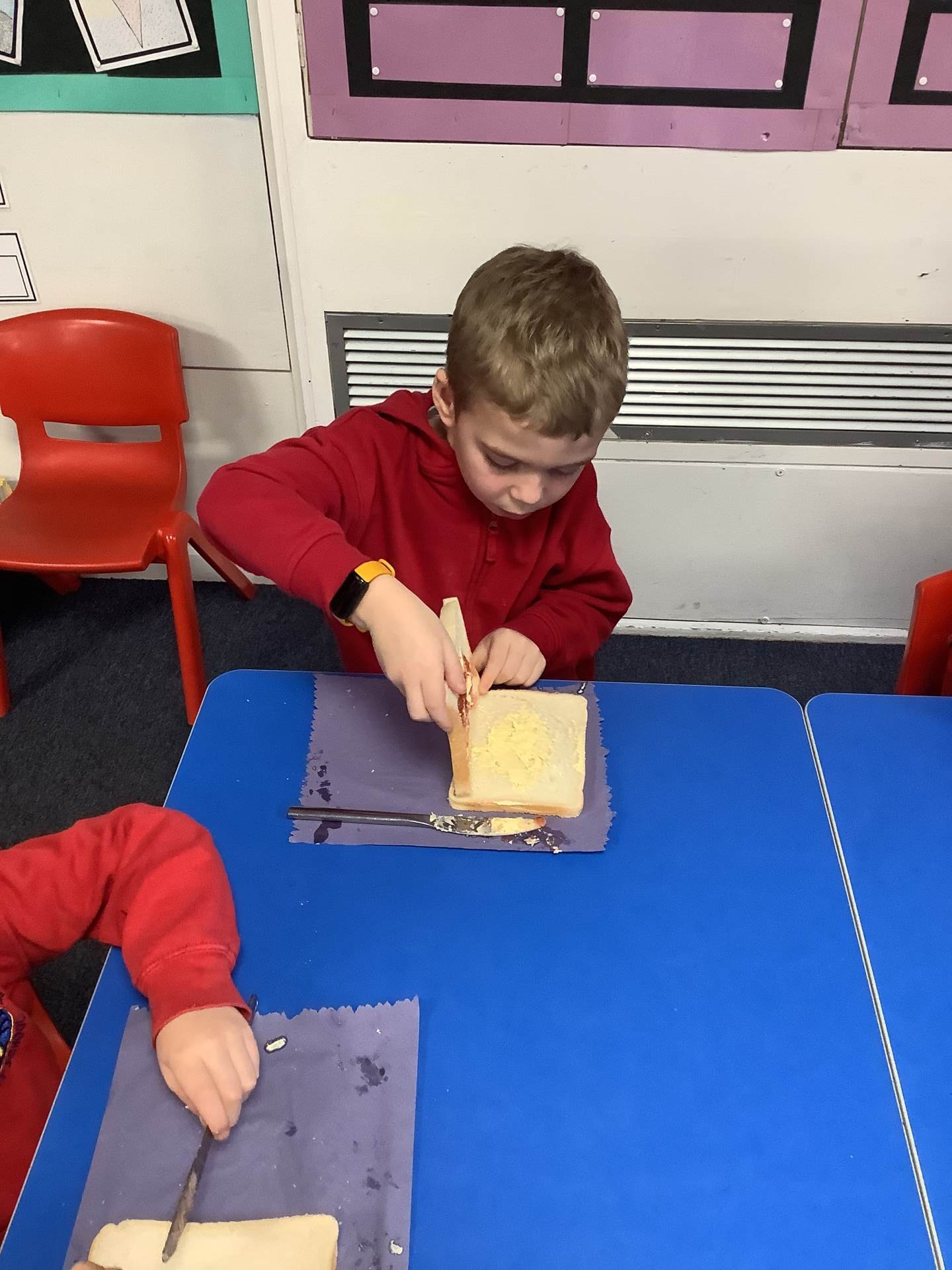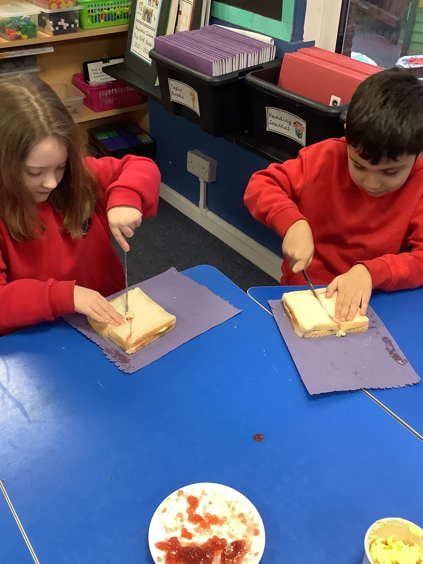 They all did a fantastic job of making their jam sandwiches, and an even better job of eating them!