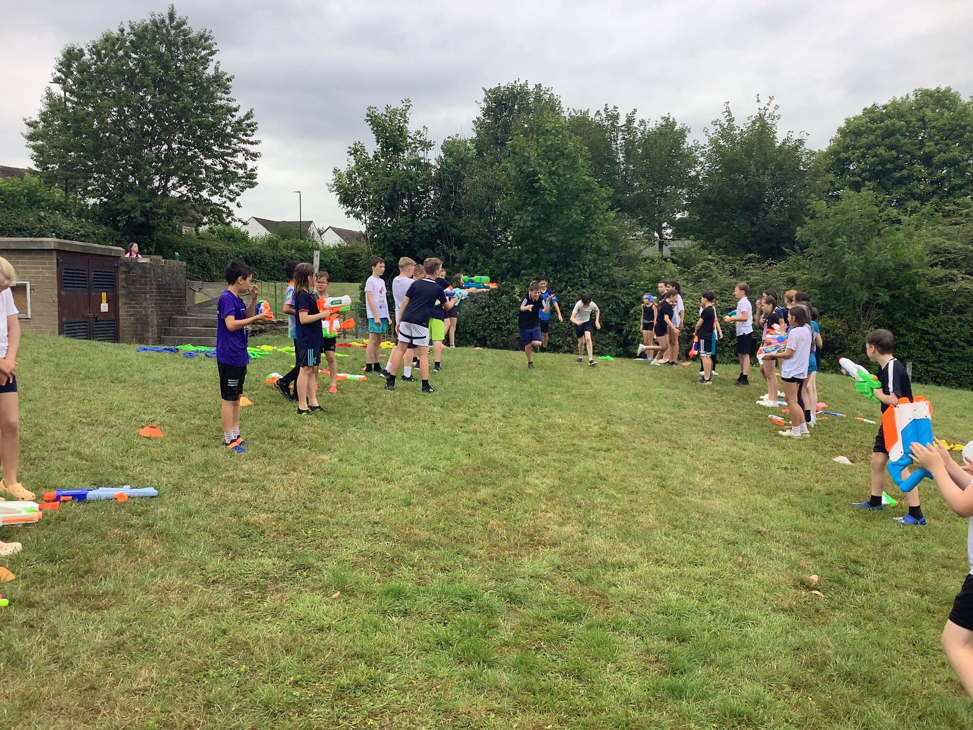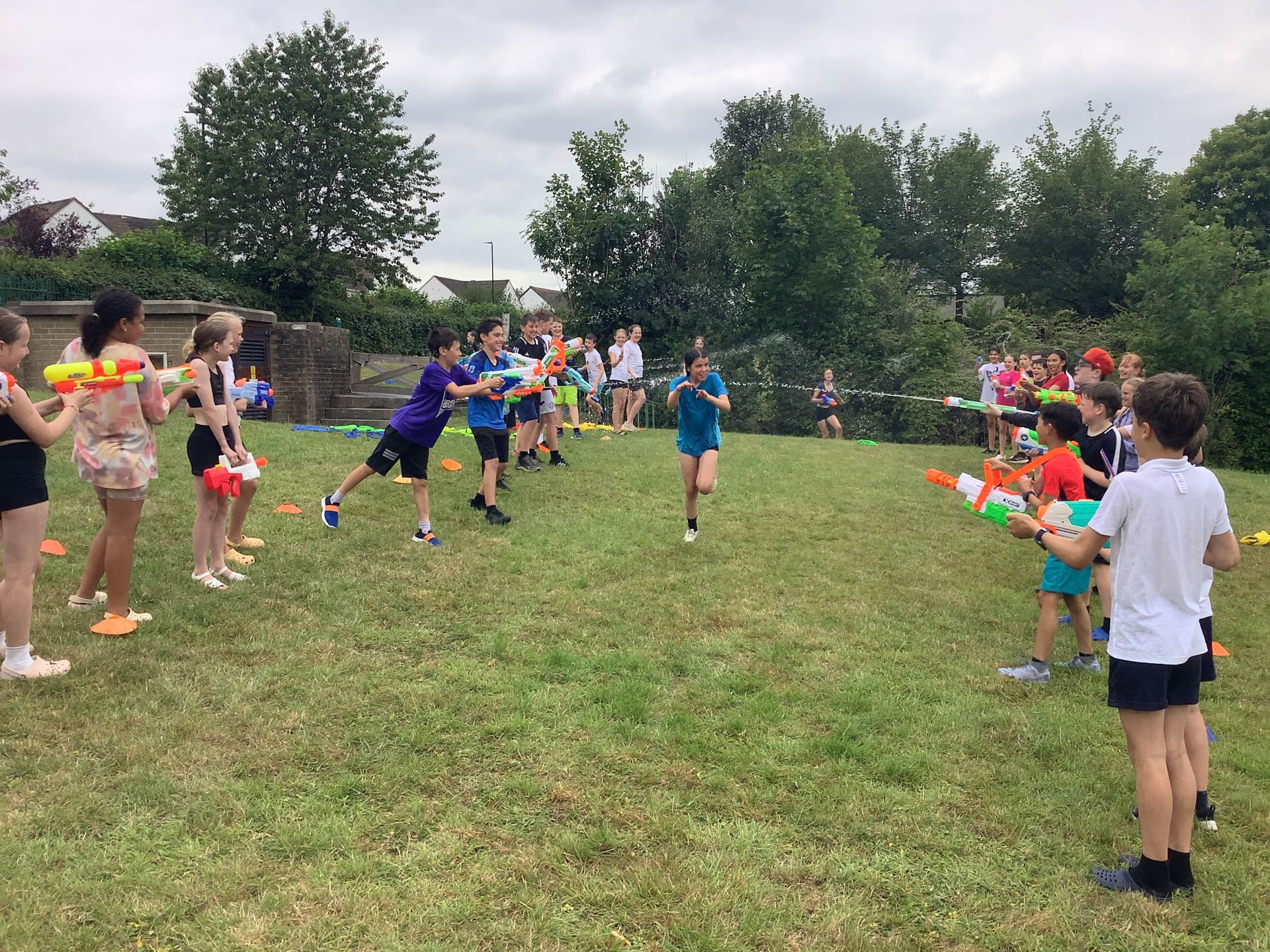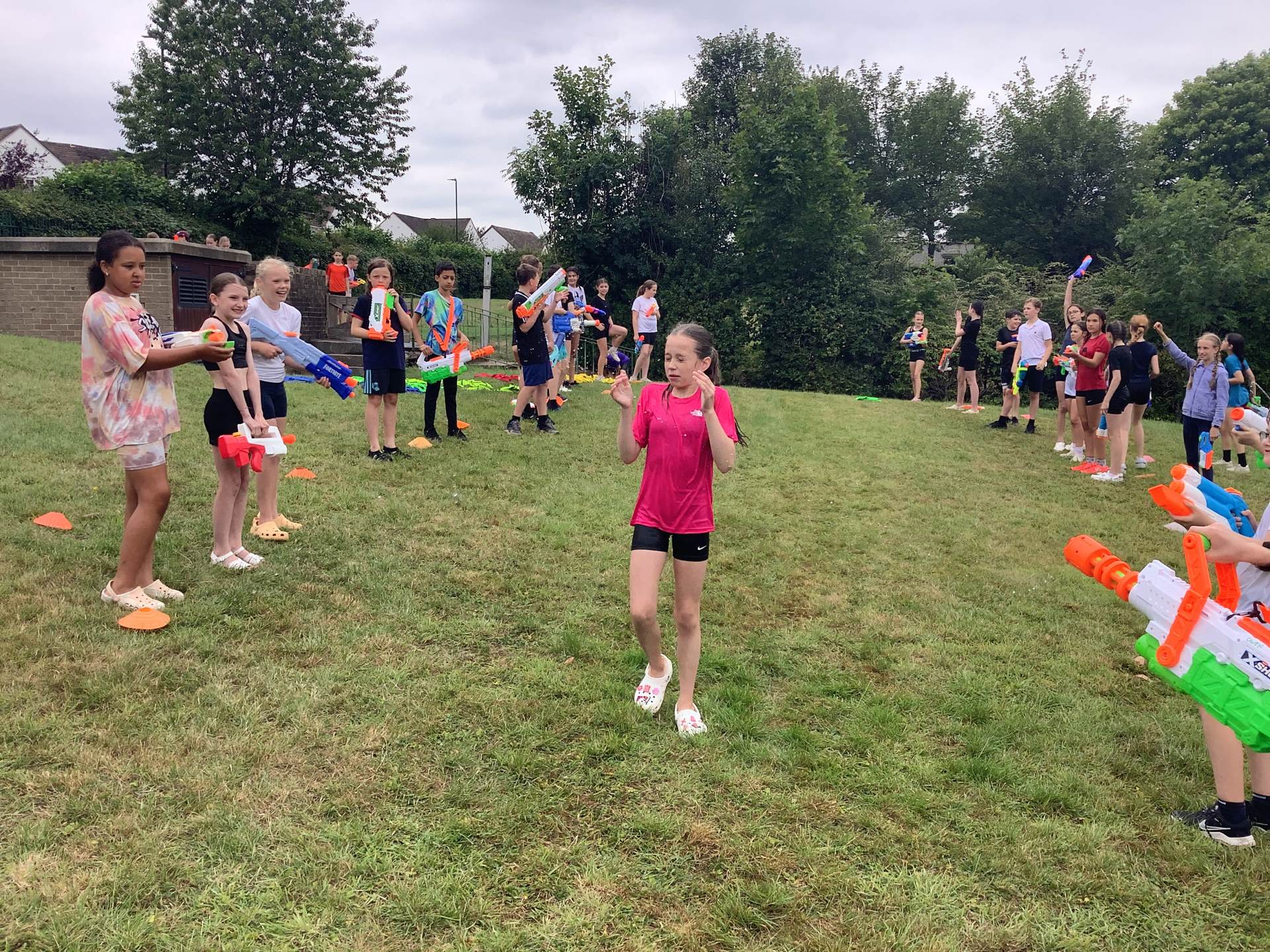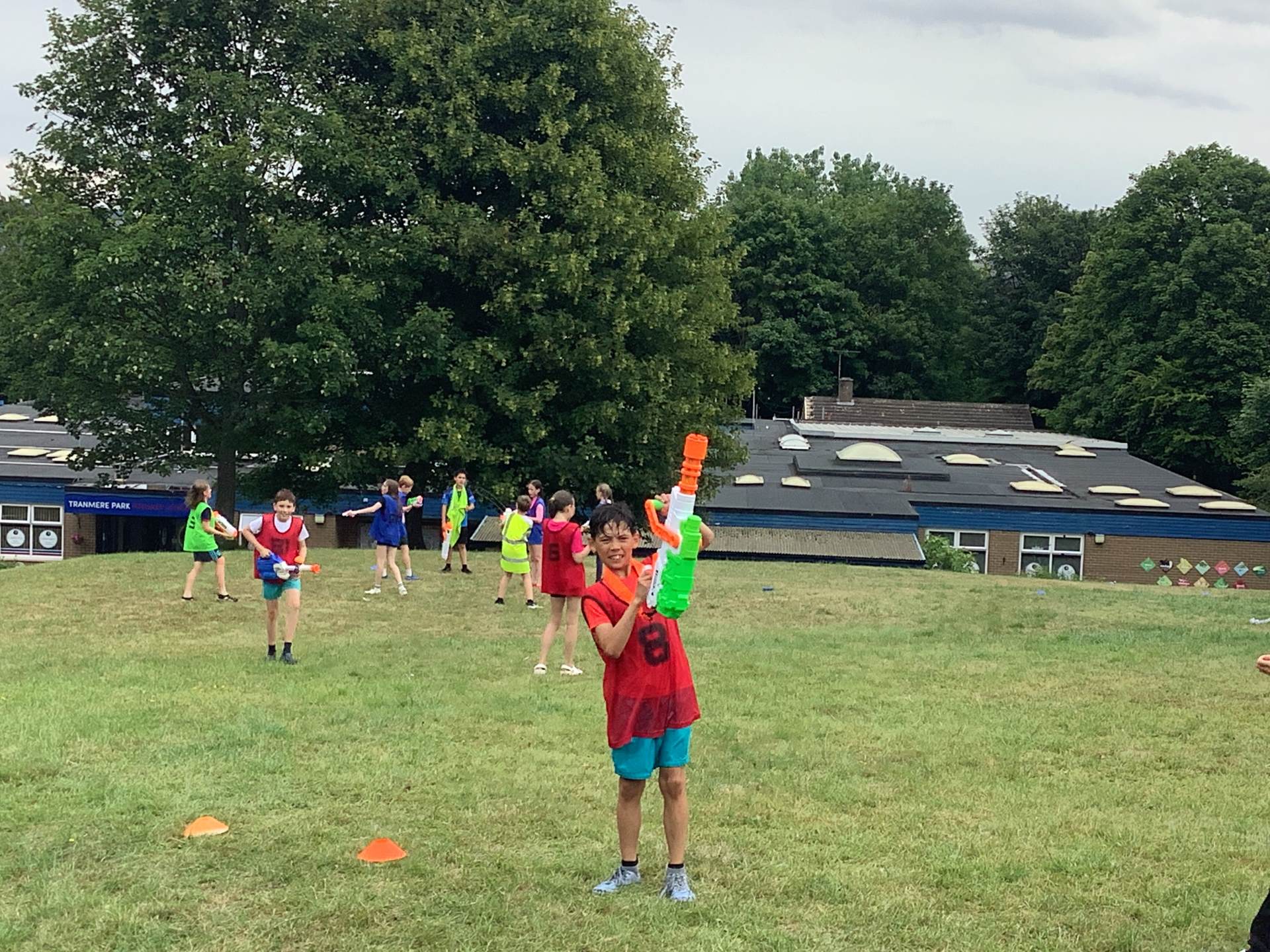 Today, Year 6 have thoroughly enjoyed playing Capture the Flag. We began the session using a tig based variation of the game and then incorporated the water guns, as is the Tranmere Tradition. At this point, as you can imagine, it descended into a 48 person, large scale, water battle. The children had a great time and finished by running/dancing/cart wheeling through the gauntlet.