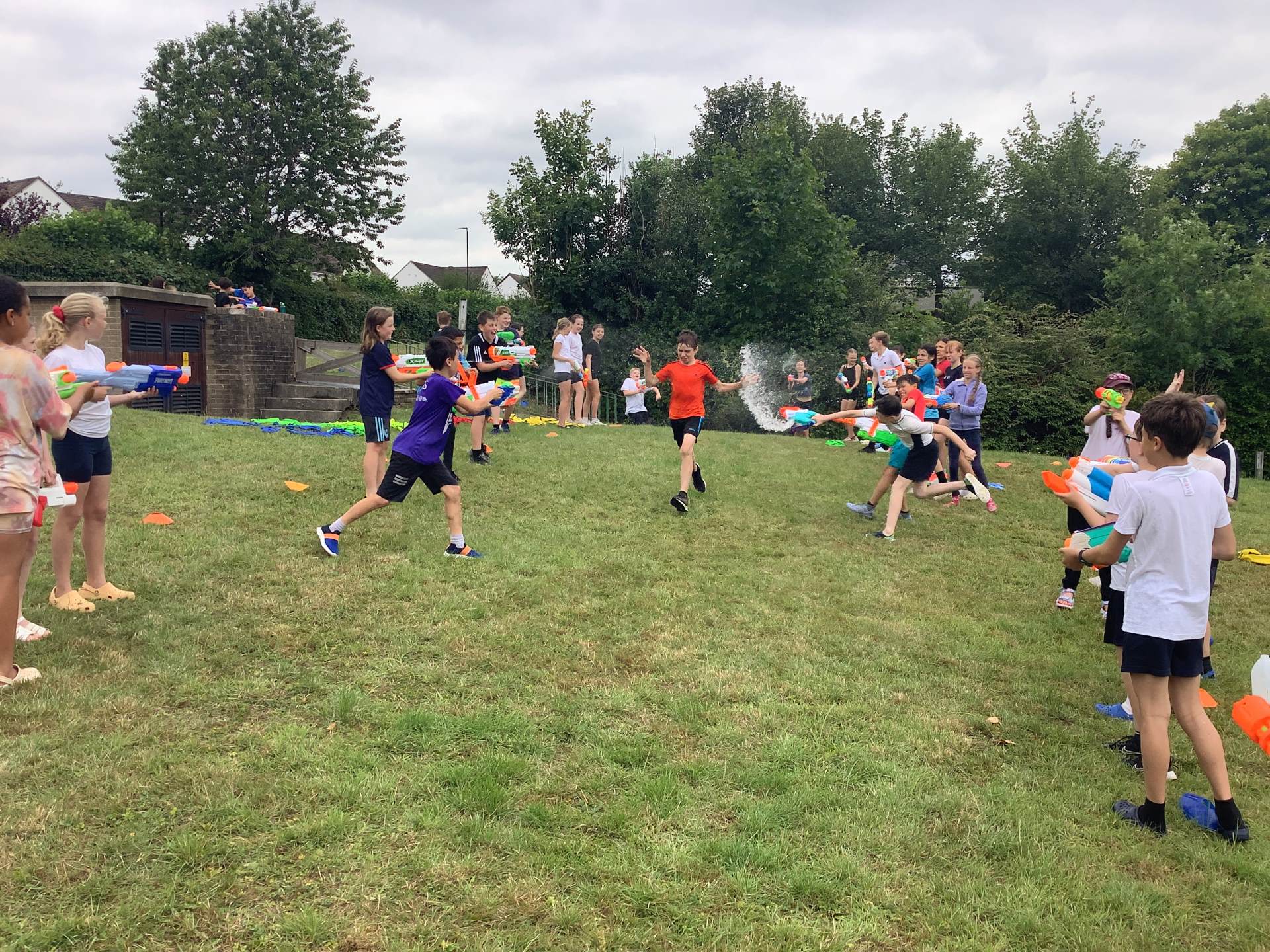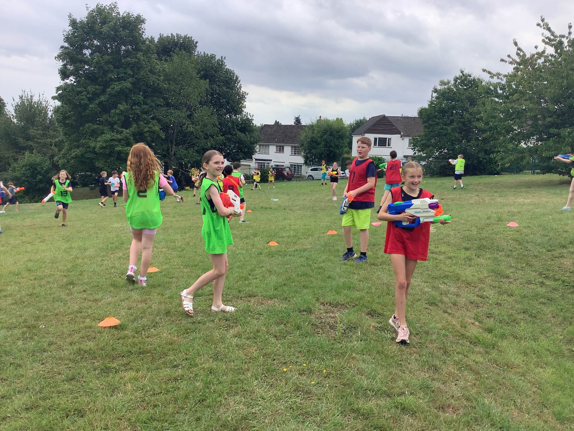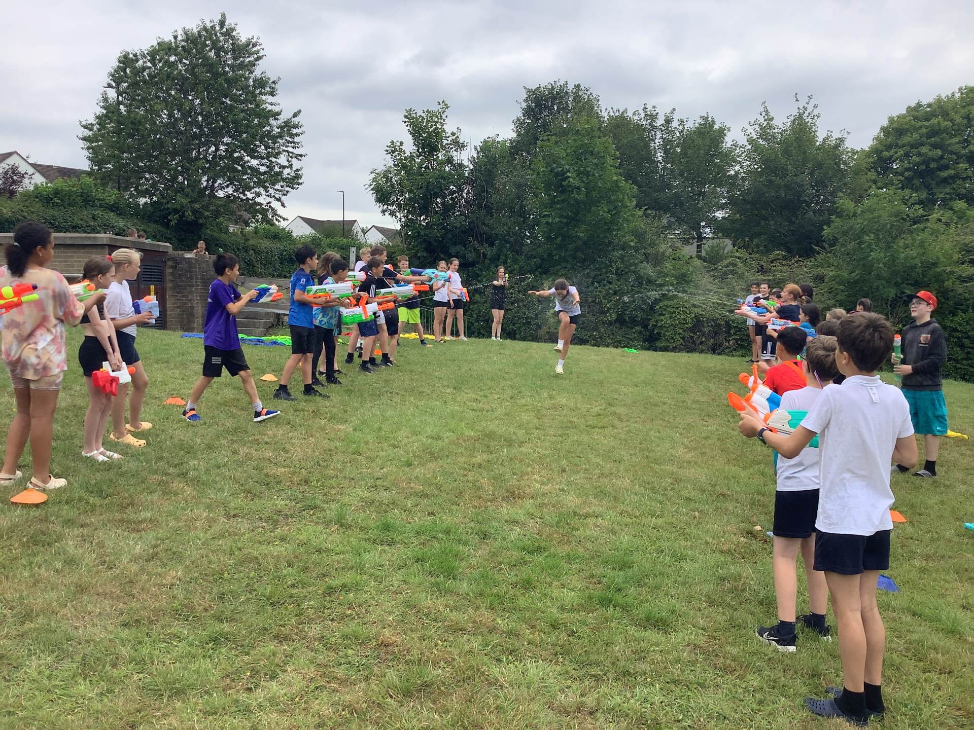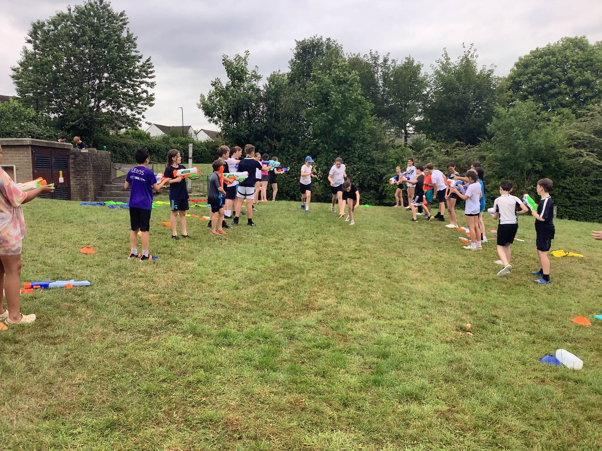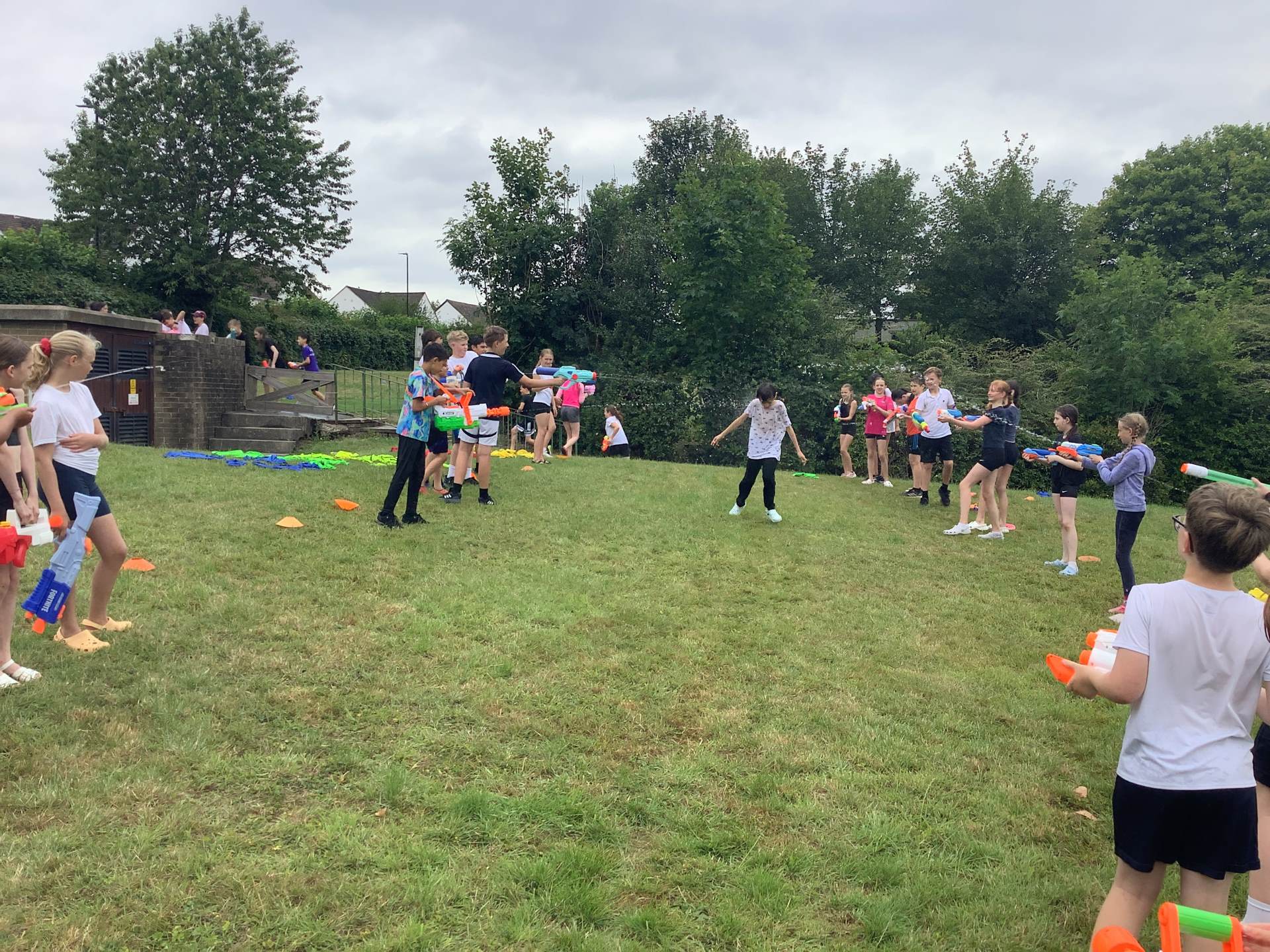 Today, Year 6 have thoroughly enjoyed playing Capture the Flag. We began the session using a tig based variation of the game and then incorporated the water guns, as is the Tranmere Tradition. At this point, as you can imagine, it descended into a 48 person, large scale, water battle. The children had a great time and finished by running/dancing/cart wheeling through the gauntlet.