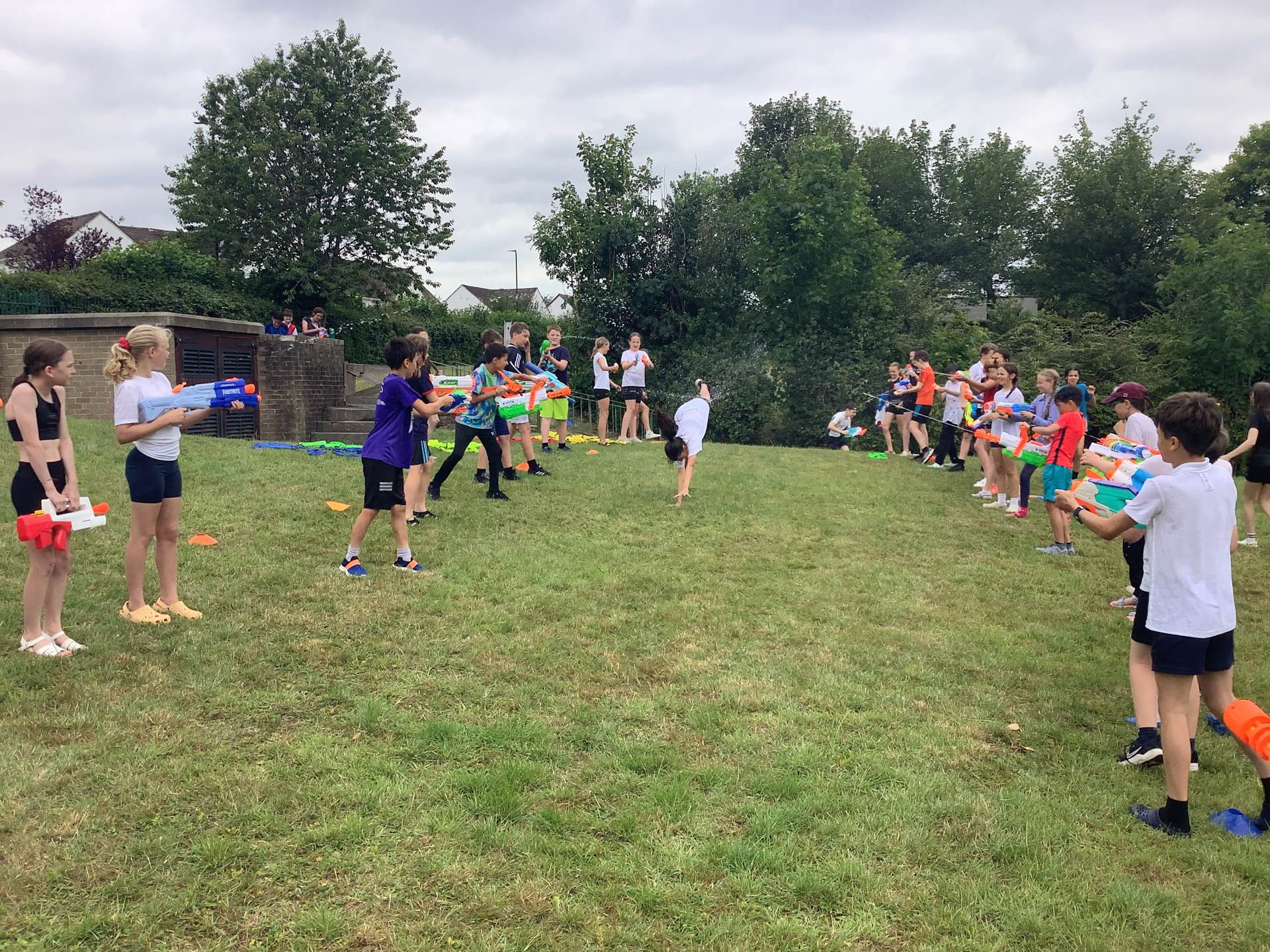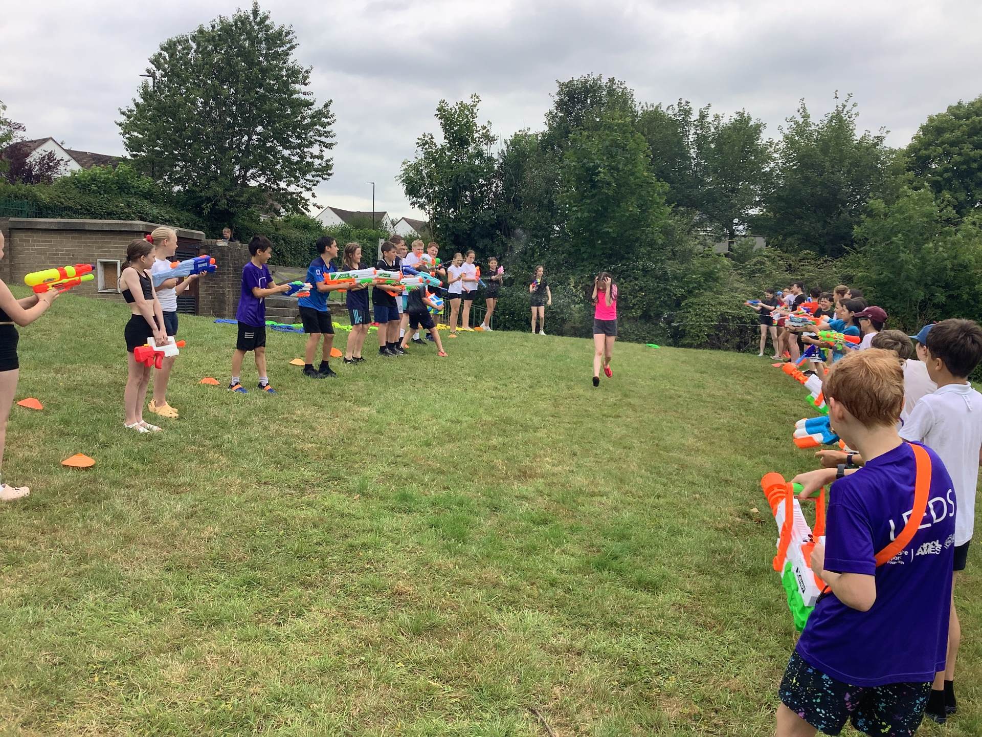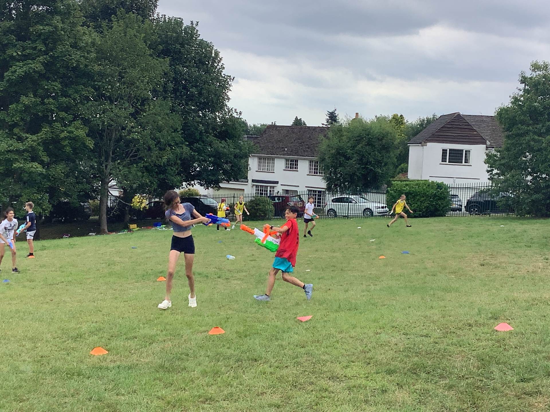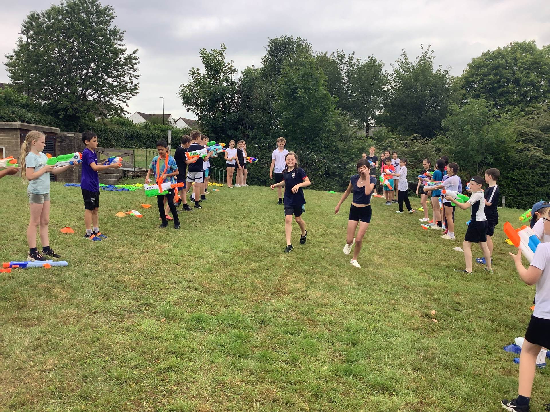 Today, Year 6 have thoroughly enjoyed playing Capture the Flag. We began the session using a tig based variation of the game and then incorporated the water guns, as is the Tranmere Tradition. At this point, as you can imagine, it descended into a 48 person, large scale, water battle. The children had a great time and finished by running/dancing/cart wheeling through the gauntlet.
