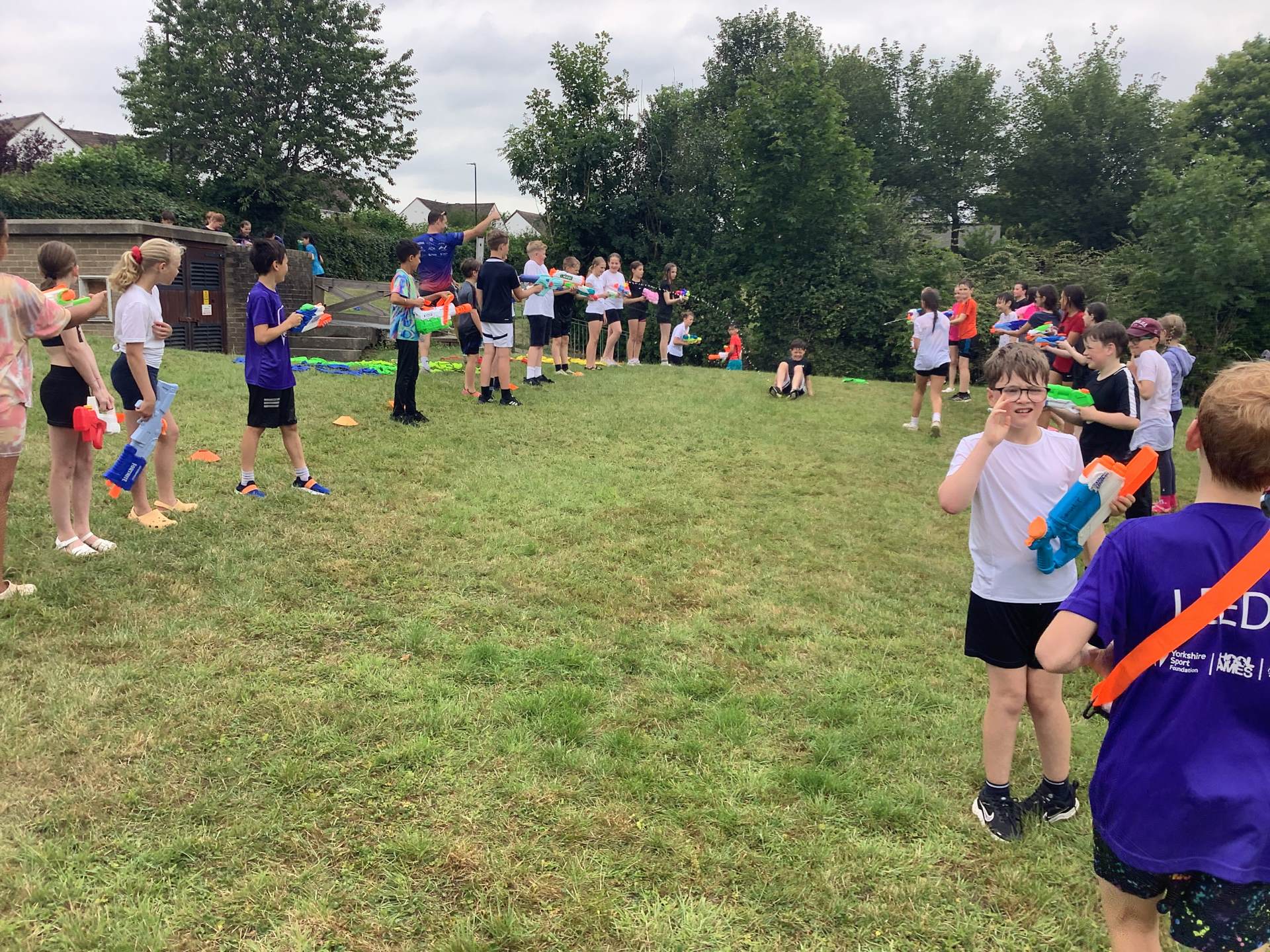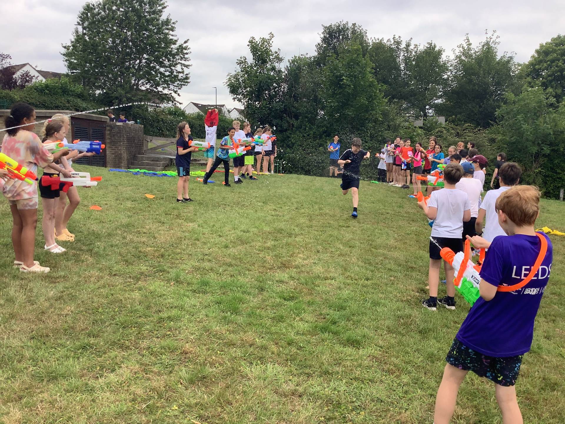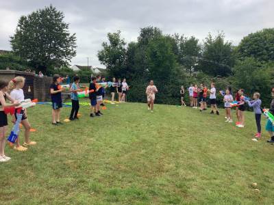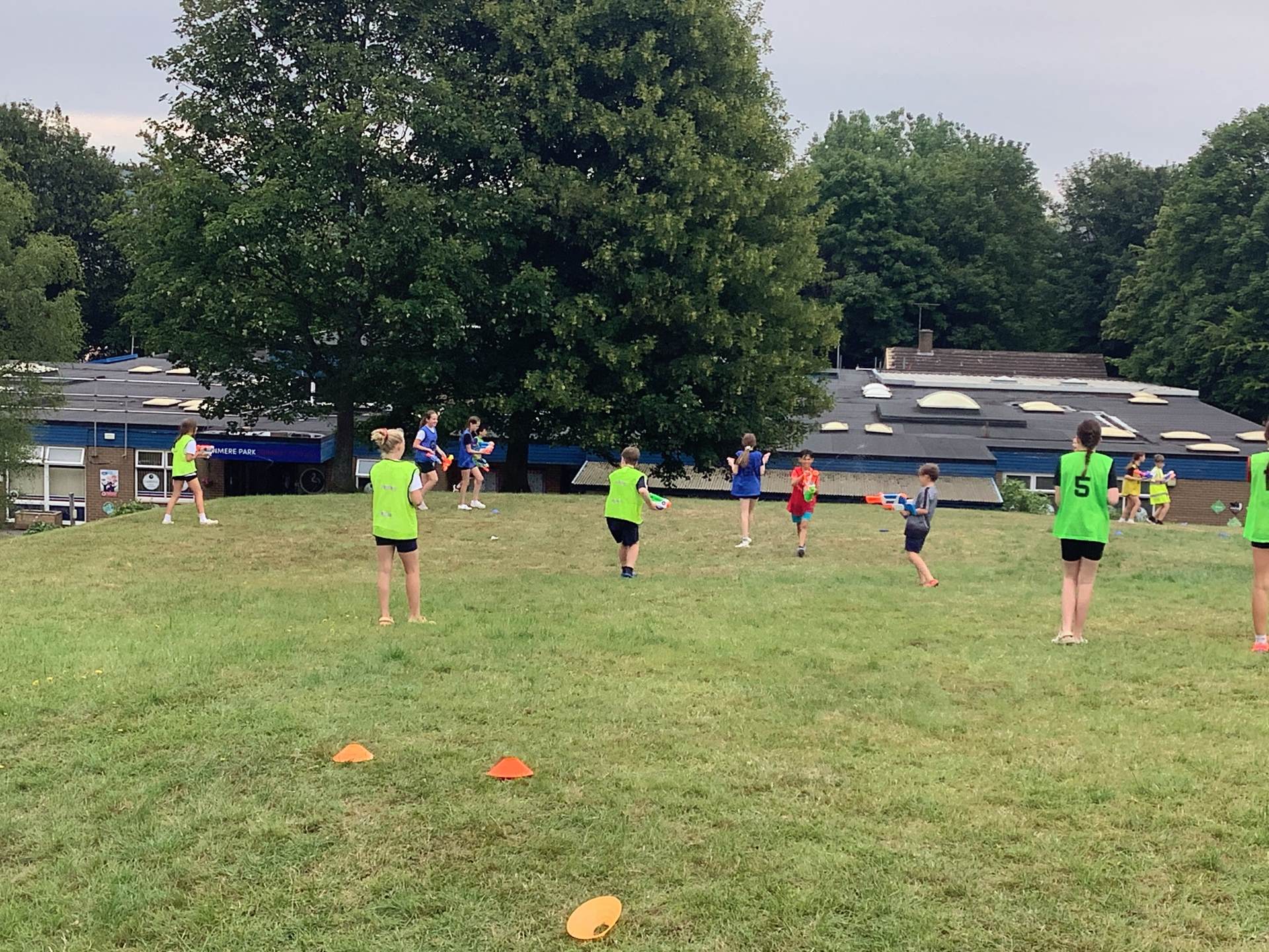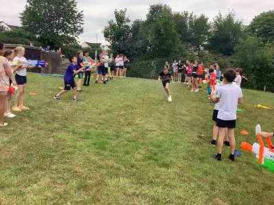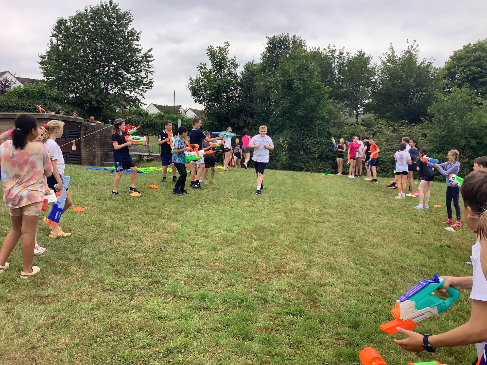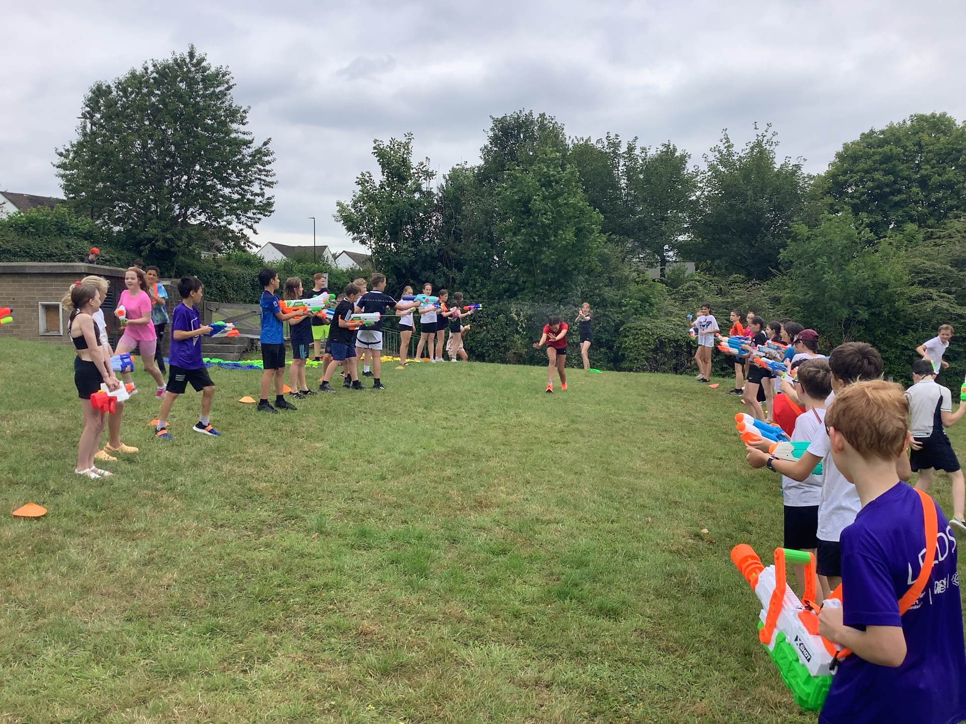 Today, Year 6 have thoroughly enjoyed playing Capture the Flag. We began the session using a tig based variation of the game and then incorporated the water guns, as is the Tranmere Tradition. At this point, as you can imagine, it descended into a 48 person, large scale, water battle. The children had a great time and finished by running/dancing/cart wheeling through the gauntlet.