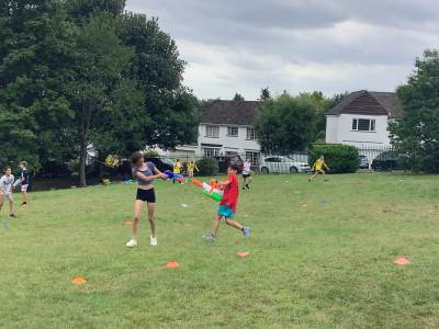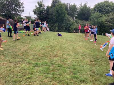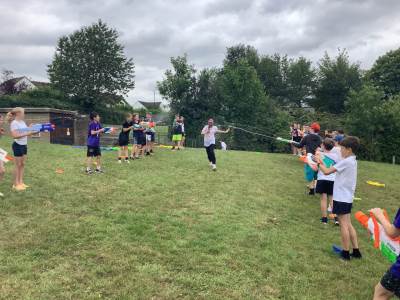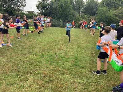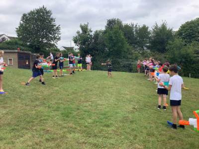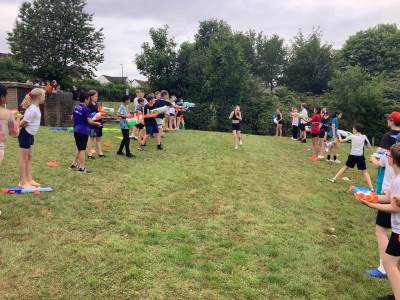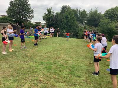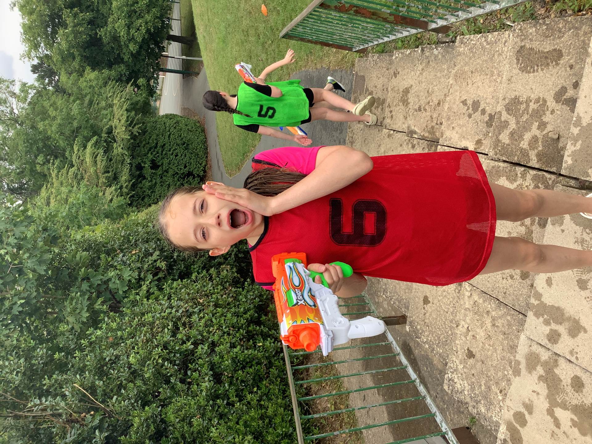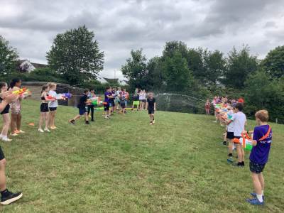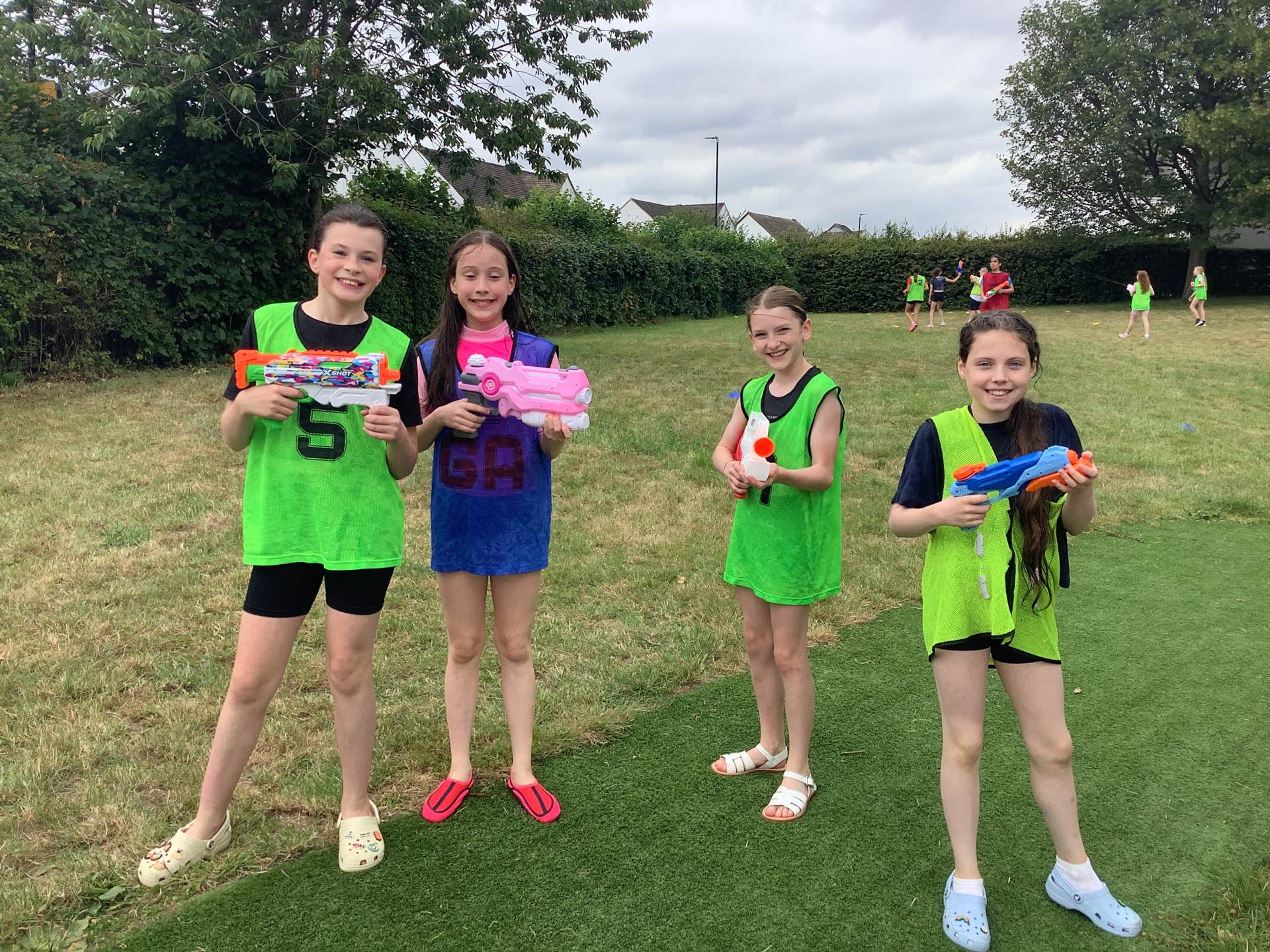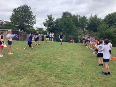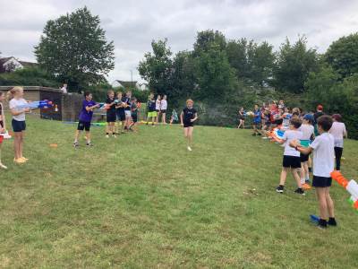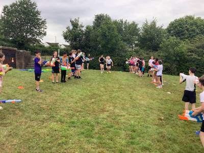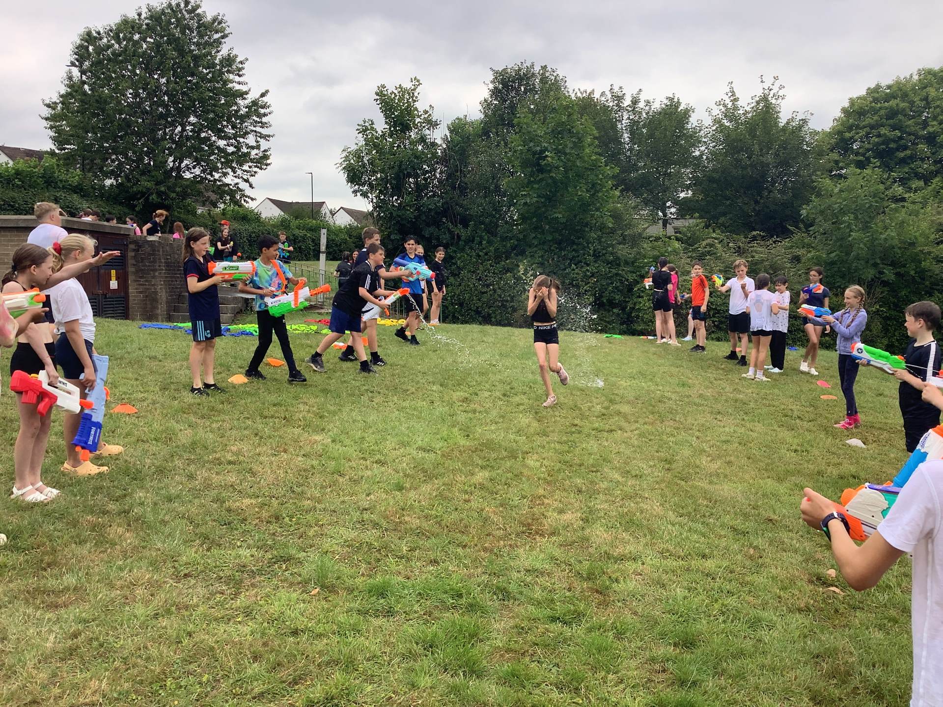 Today, Year 6 have thoroughly enjoyed playing Capture the Flag. We began the session using a tig based variation of the game and then incorporated the water guns, as is the Tranmere Tradition. At this point, as you can imagine, it descended into a 48 person, large scale, water battle. The children had a great time and finished by running/dancing/cart wheeling through the gauntlet.