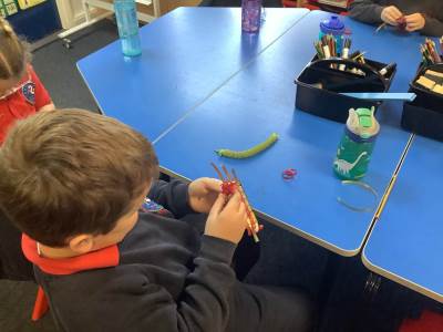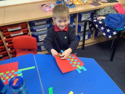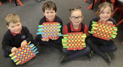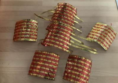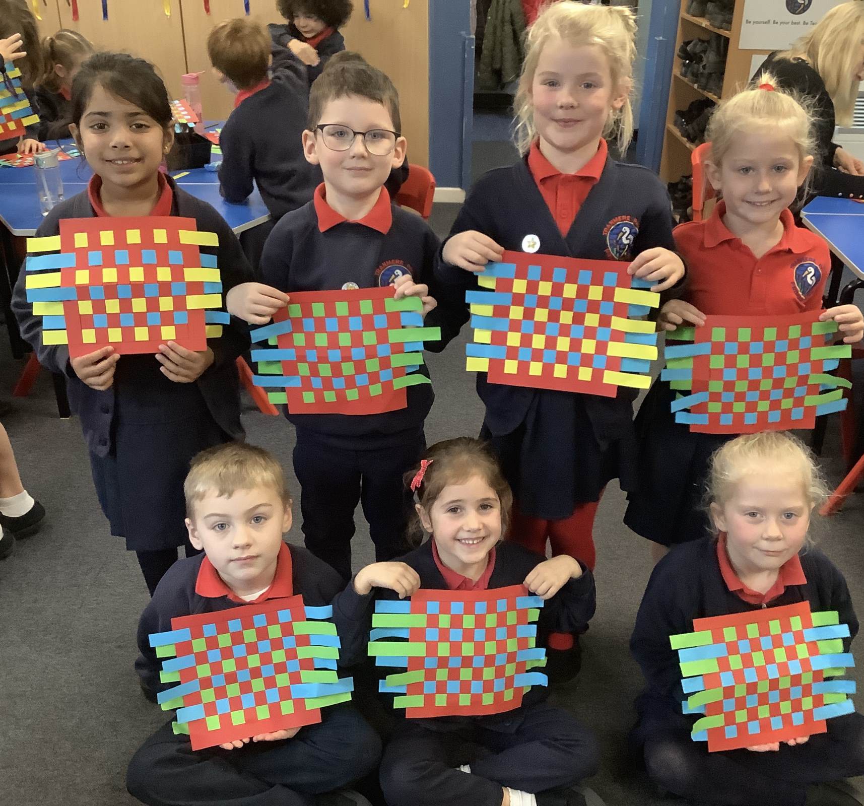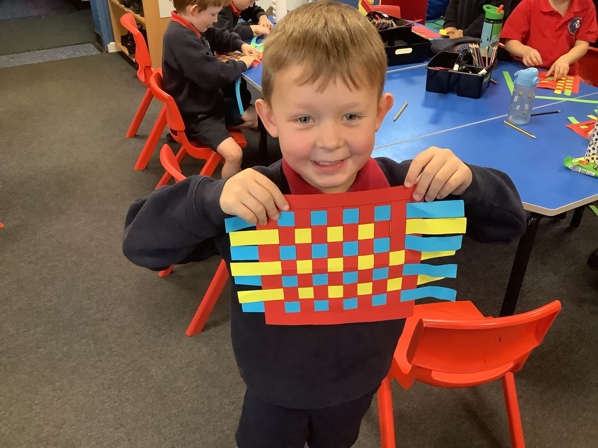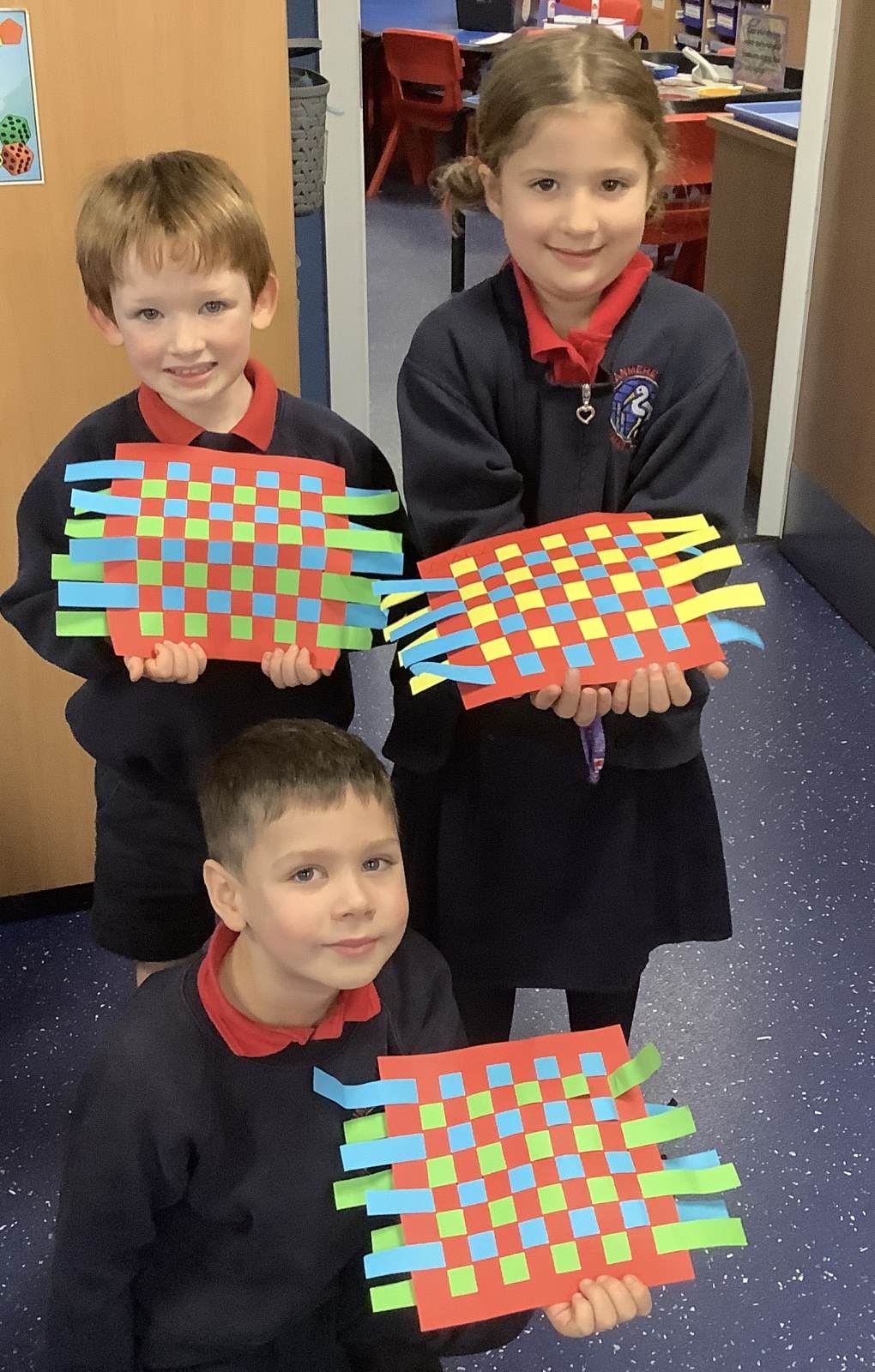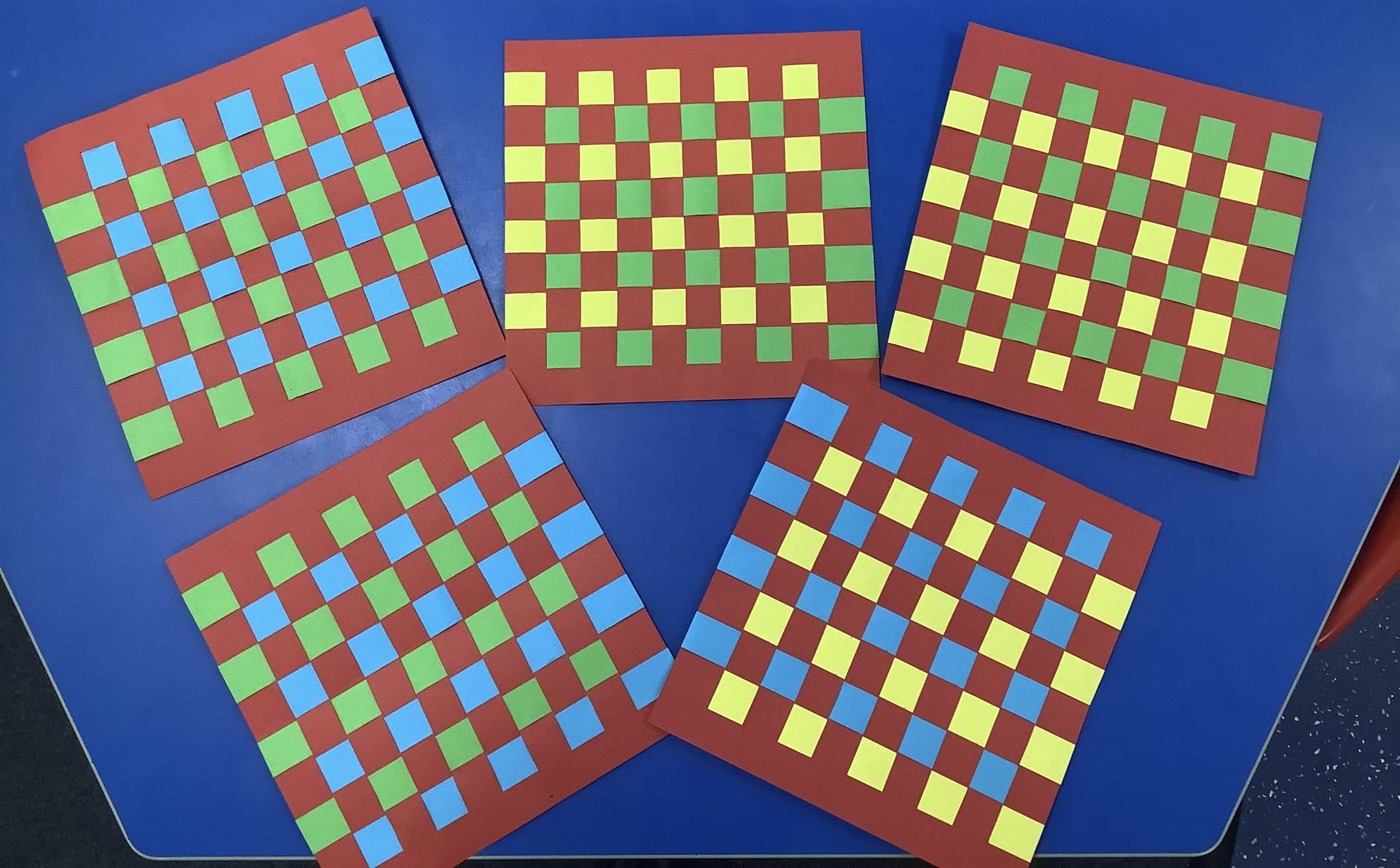 Using the warp we threaded strips of paper over and under and then under and over to create the weft.