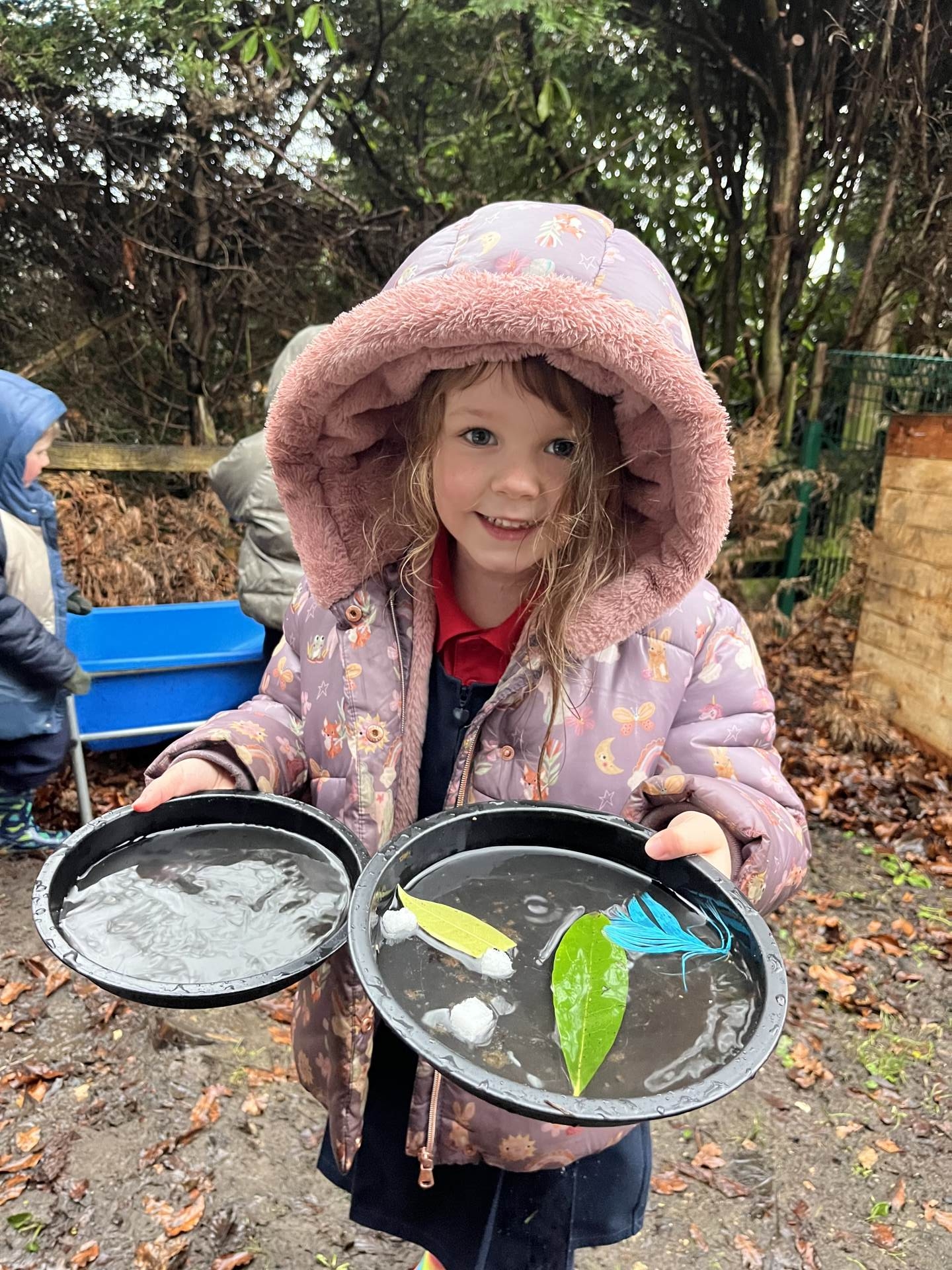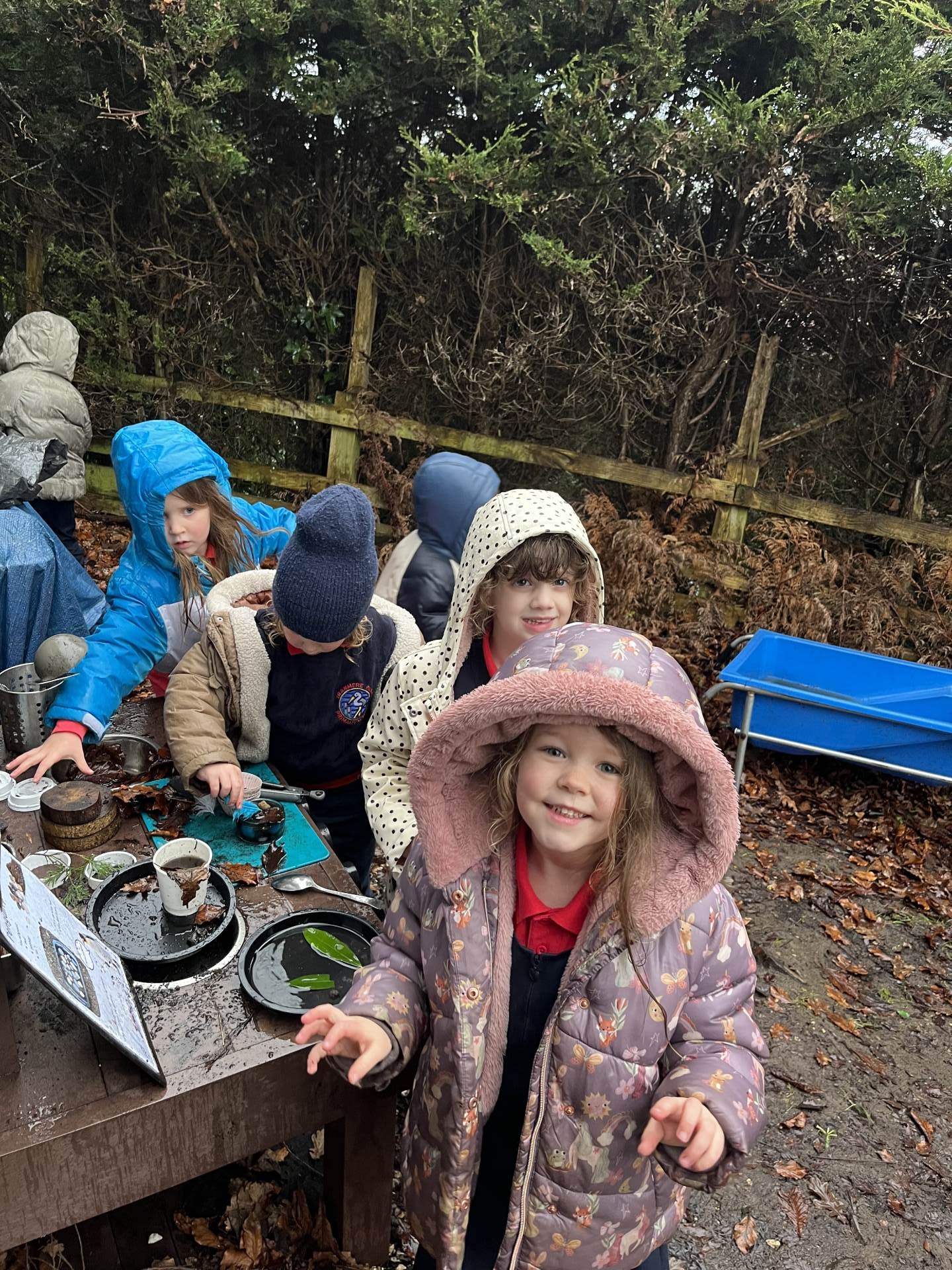 On Muddy Puddle Day, Puffins, Kingfishers and Doves participated in some outdoor learning. The children learned some new skills and had to put their teamwork ability to the test. The activities included: using a flint and steel to make a fire, using a bowline knot to make a hammock and measure trees to work out its age (circumference divided by growth rate). The children had a fantastic day!