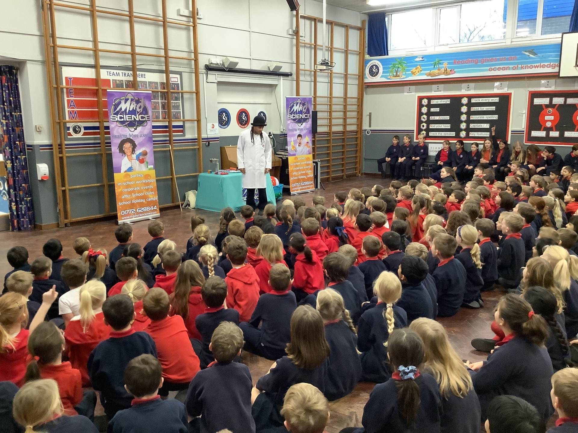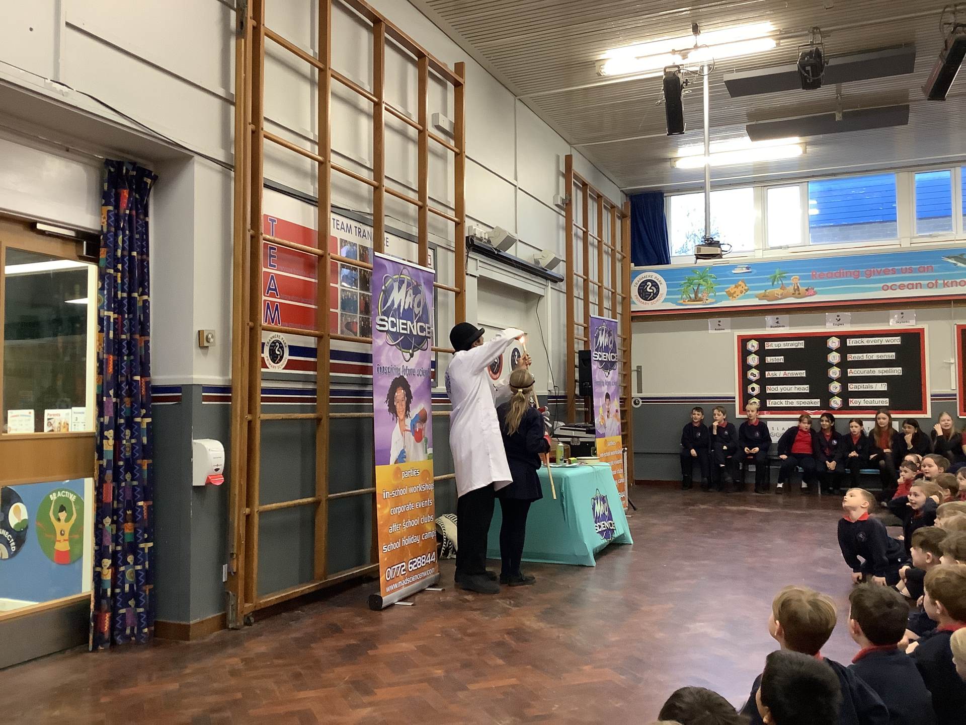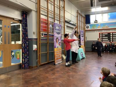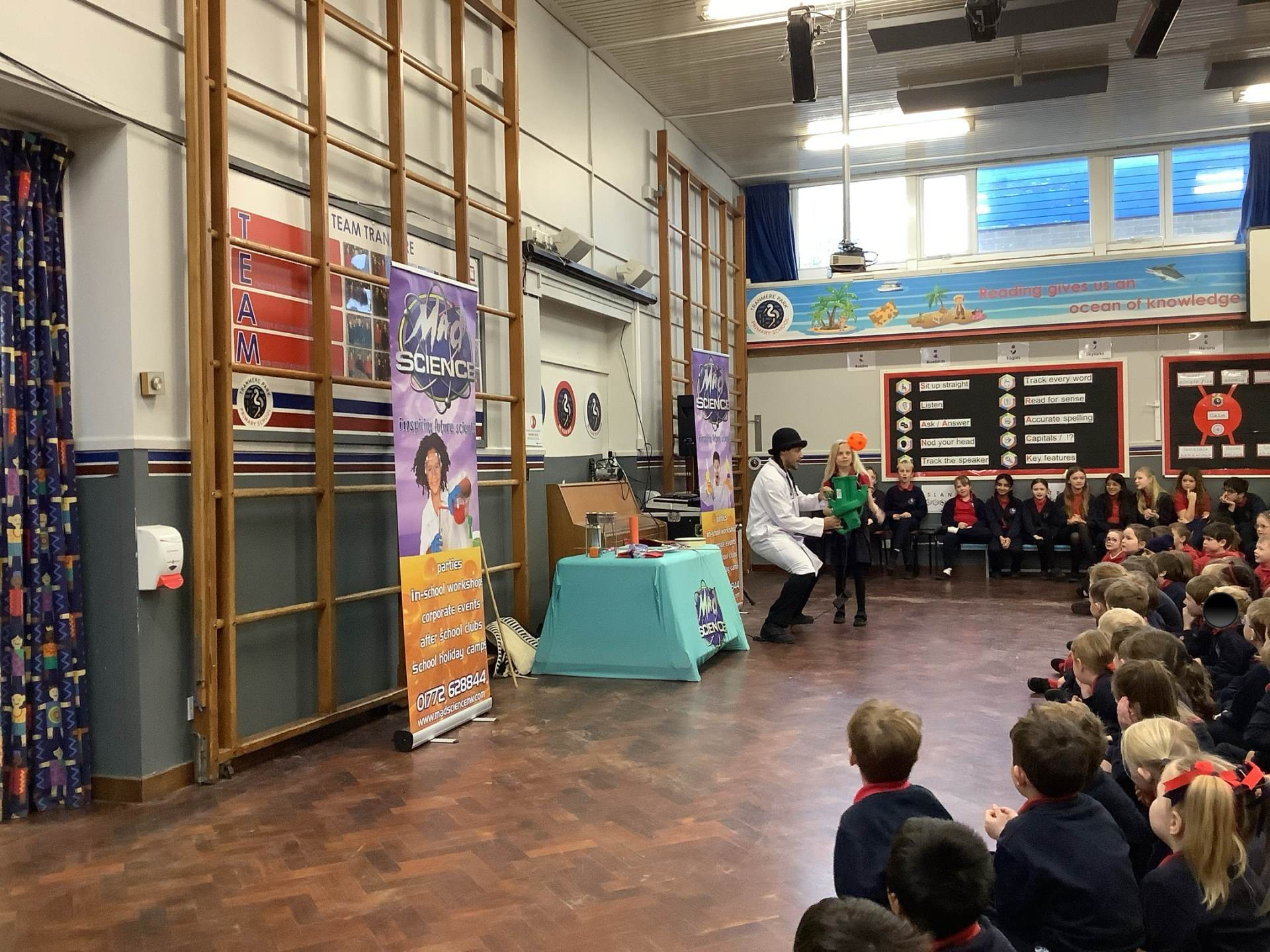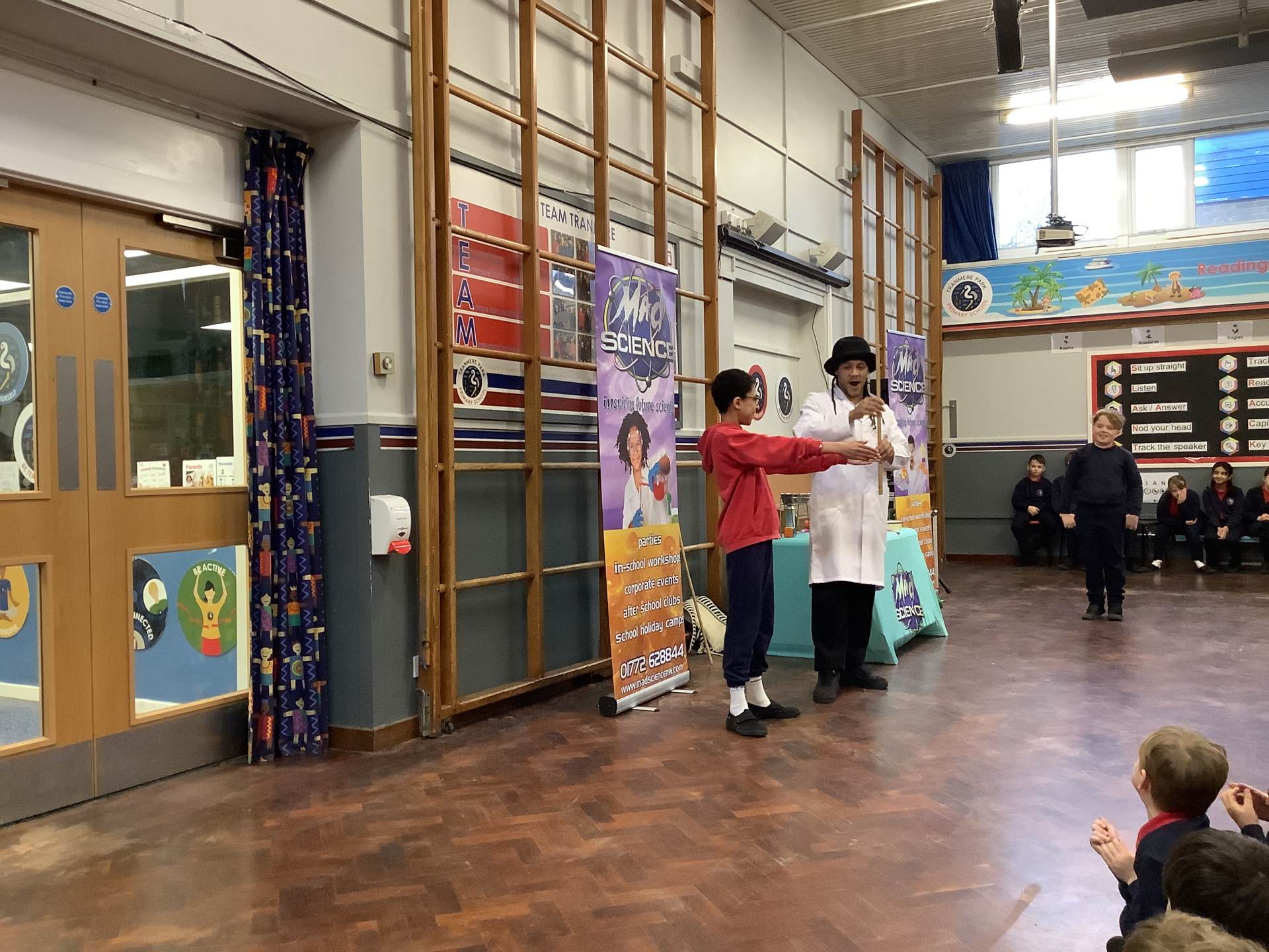 This morning, we were treated to a special whole school assembly run by Mad Science. We learned all about the Olympics and the important role science plays in its sports. We investigated reaction time, aerodynamics and of course, finished by making our own Olympic flame through combustion!