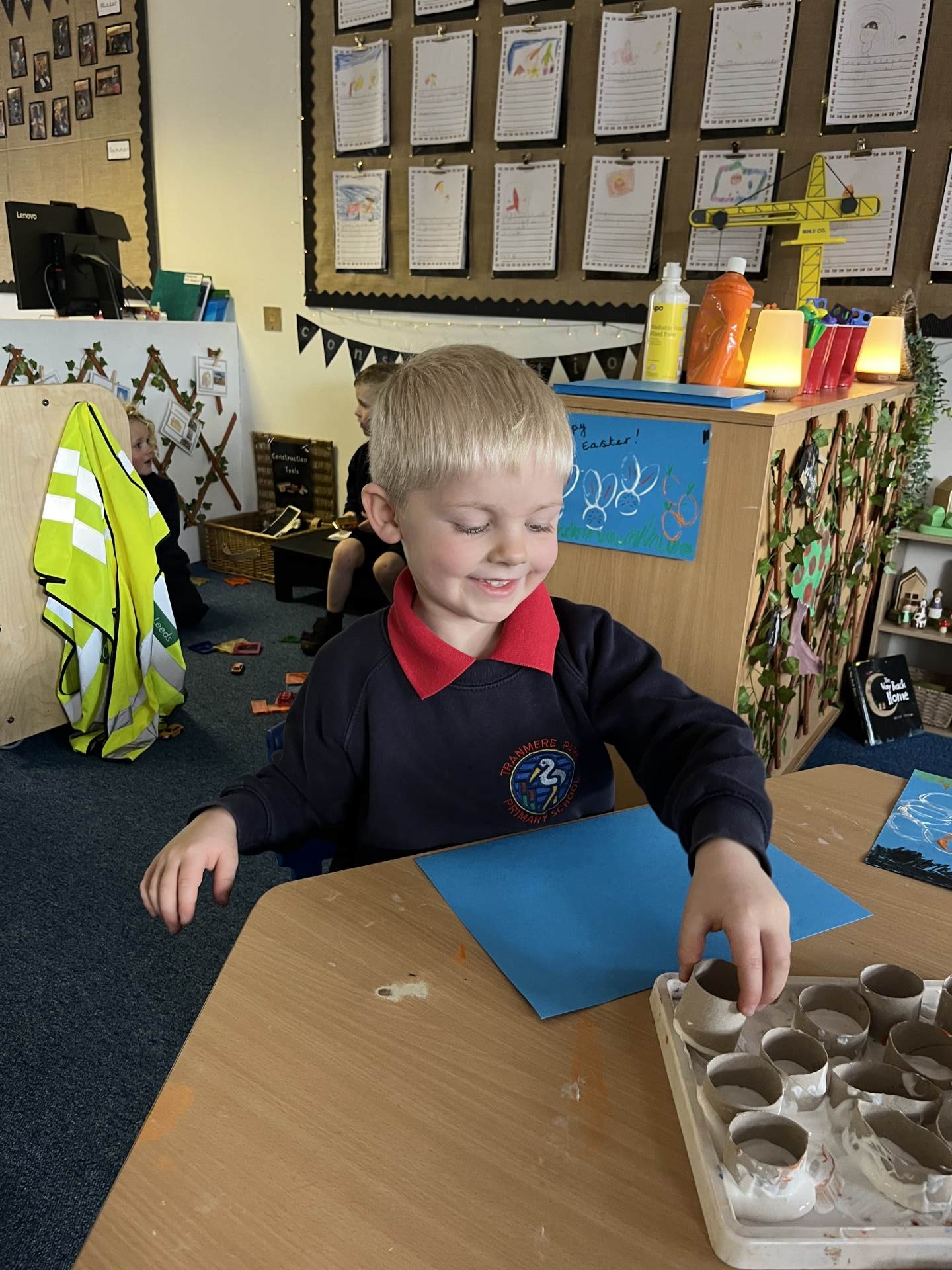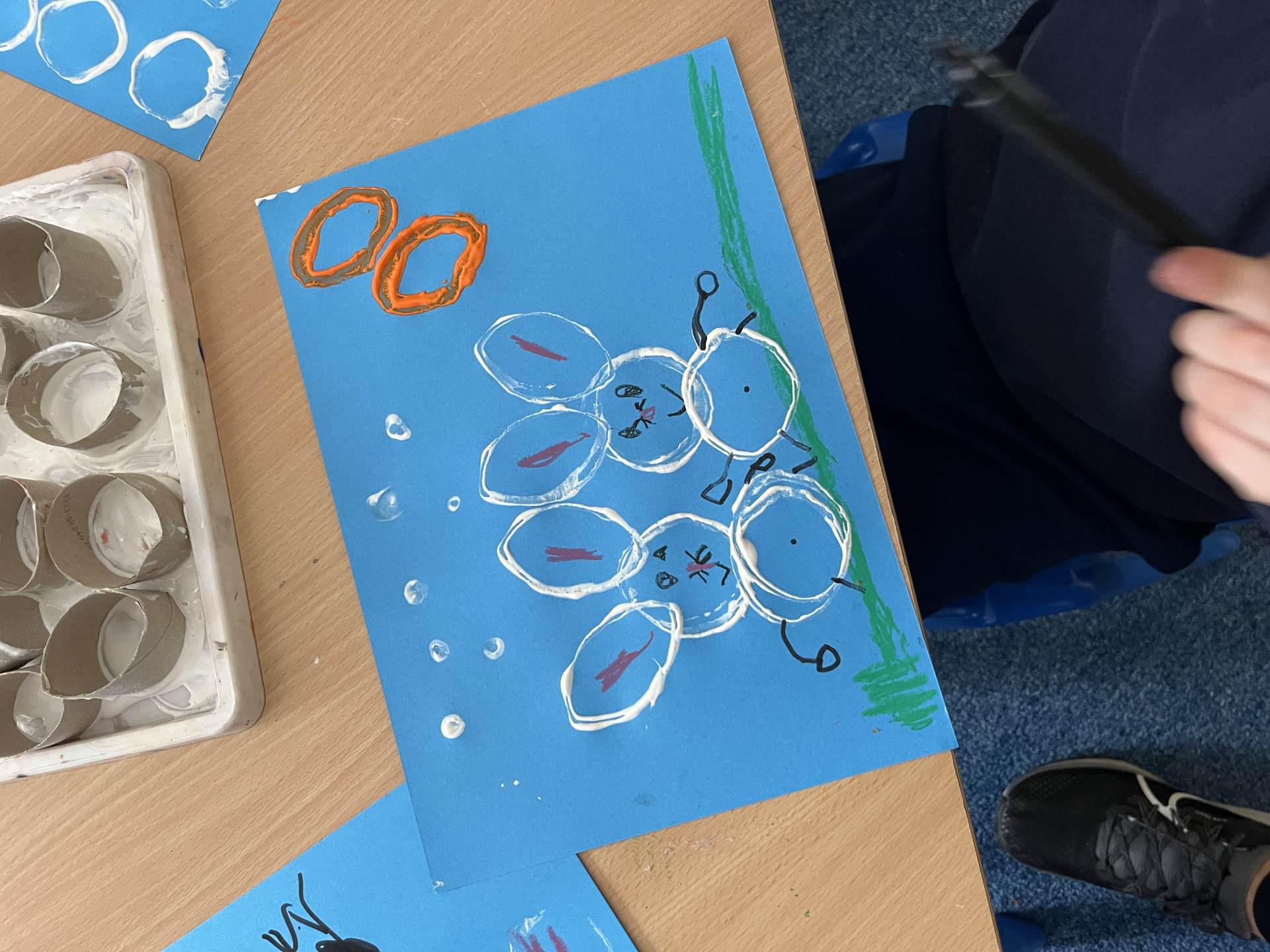 Reception decorated footprints with materials they found in and outside of school.