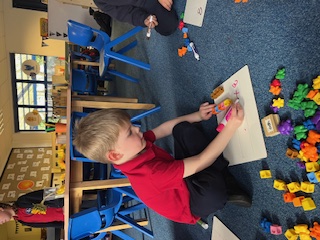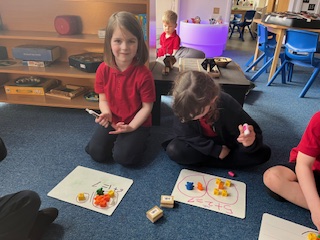 We then moved on to exploring composition, thinking about the different ways each number can be made. The children used practical resources to build the numbers and discussed their ideas with their peers, beginning to use simple mathematical language to explain their choices.