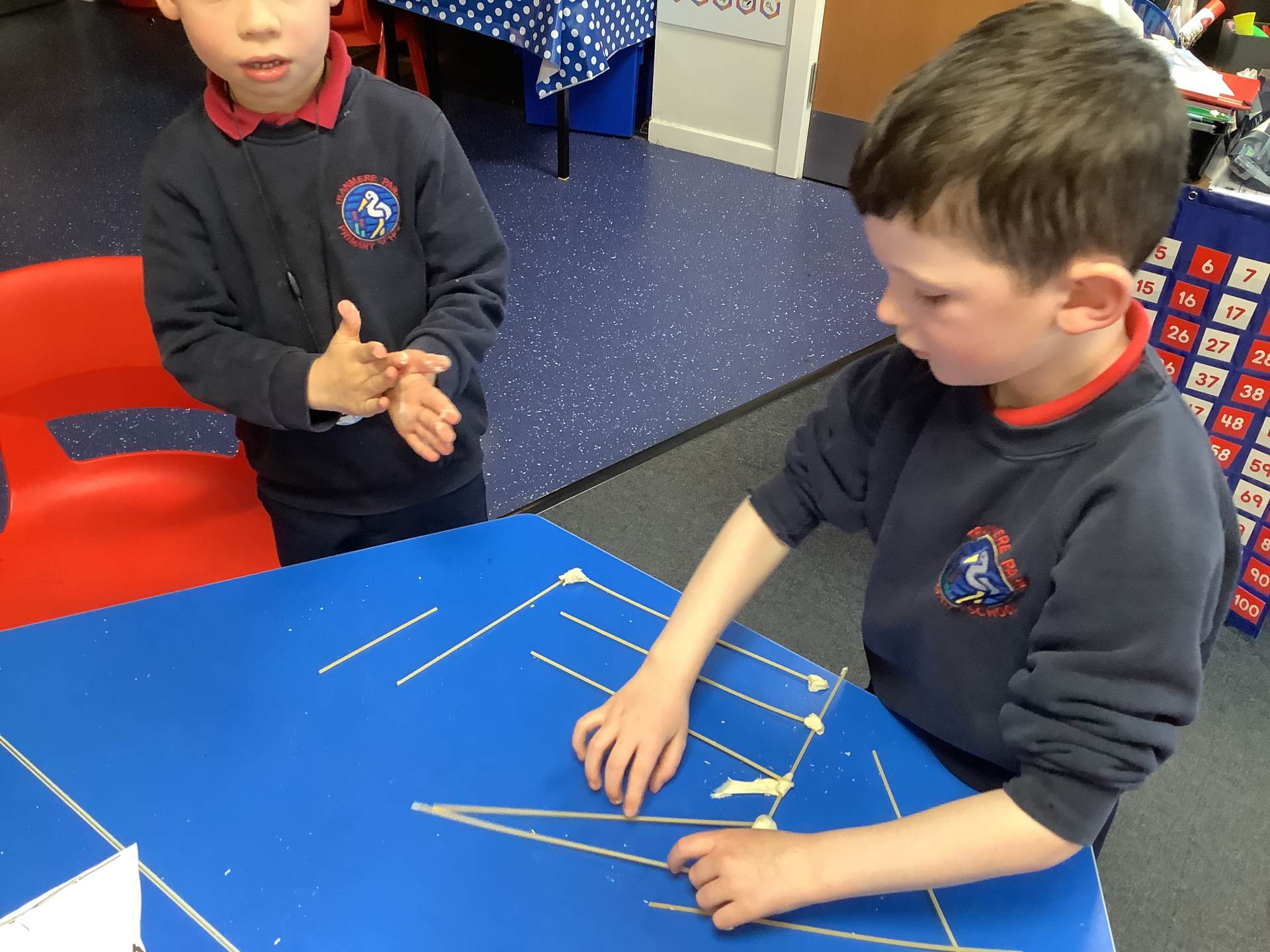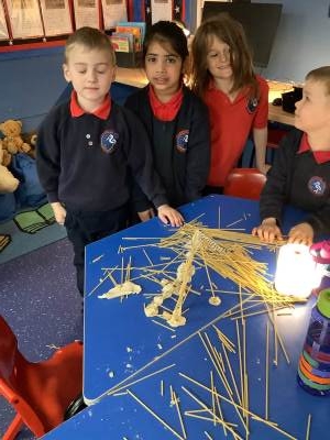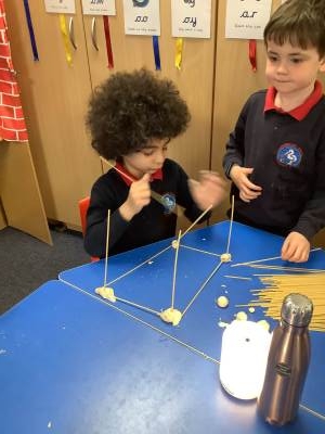 This week, the children have been designing their own towers, utlising the strengthening techniques that we have learnt about. Today, the children tested their designs, using spaghetti and playdough.