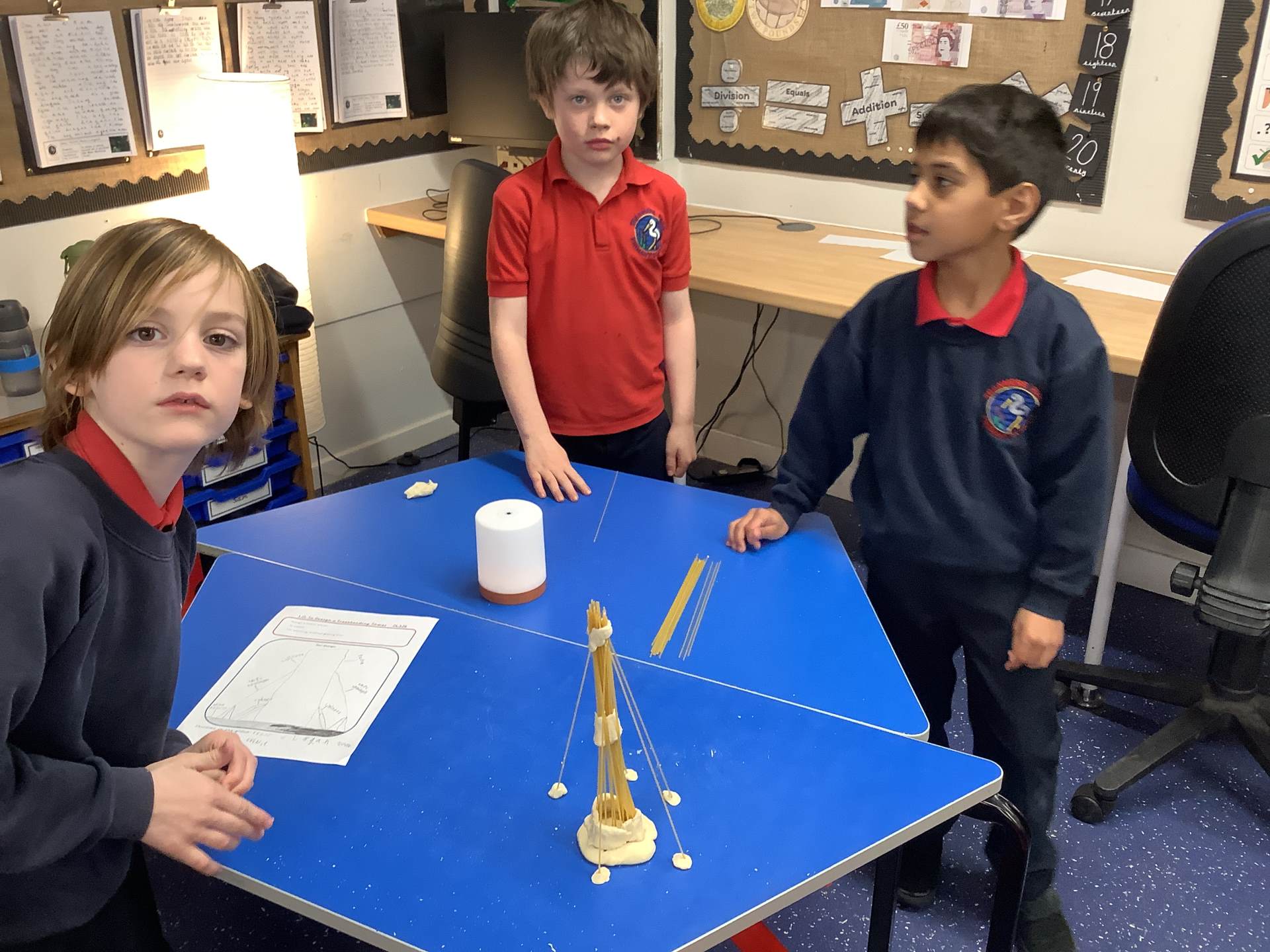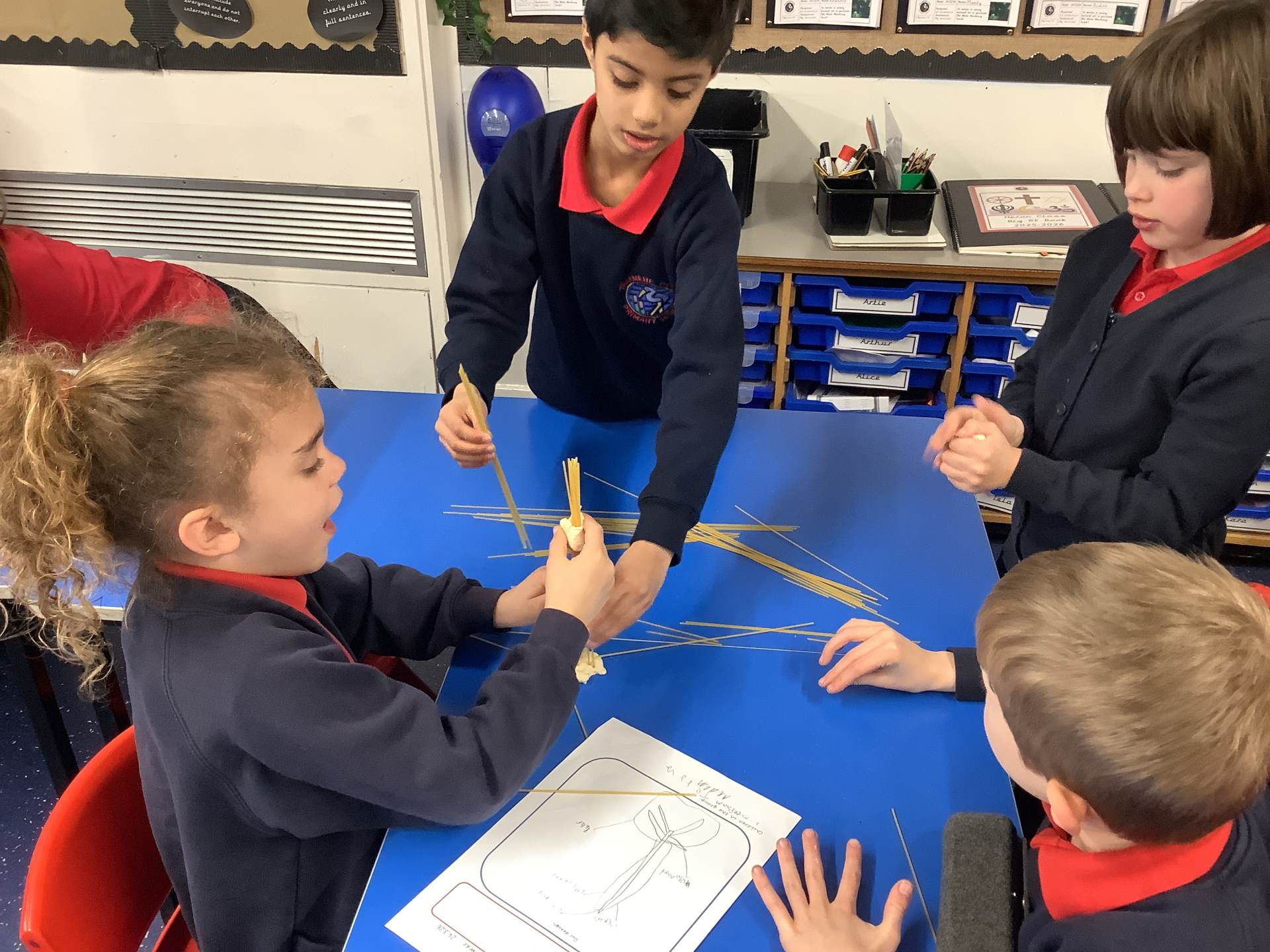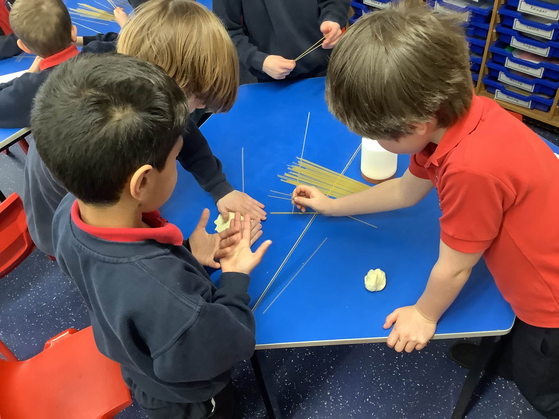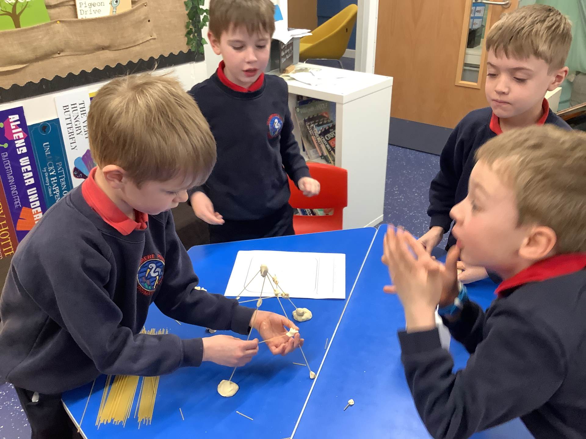 Today, the children made and tested their designs, using spaghetti and playdough.