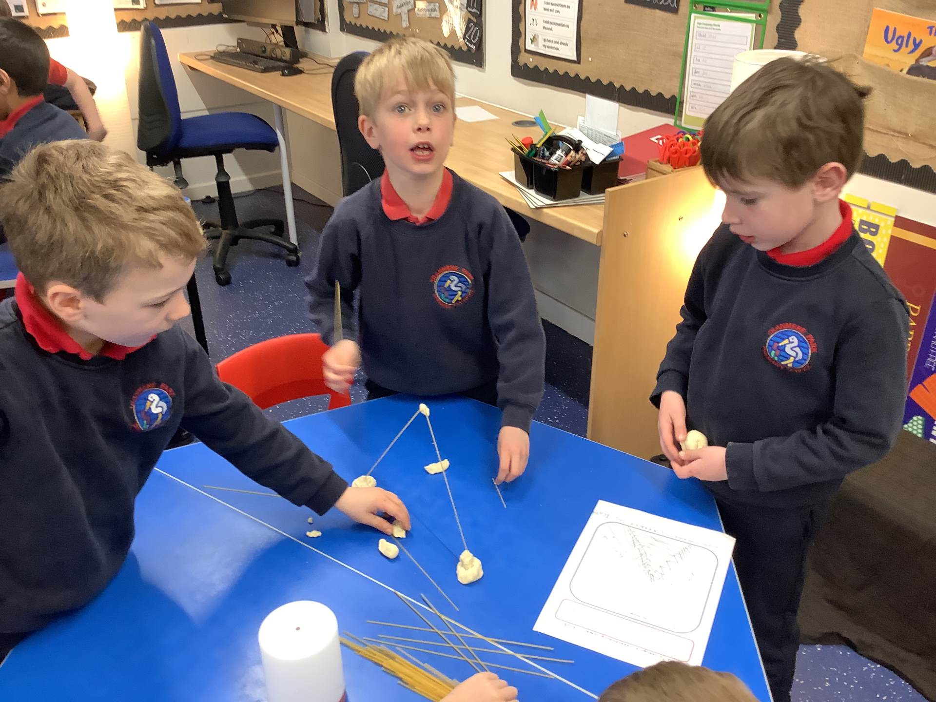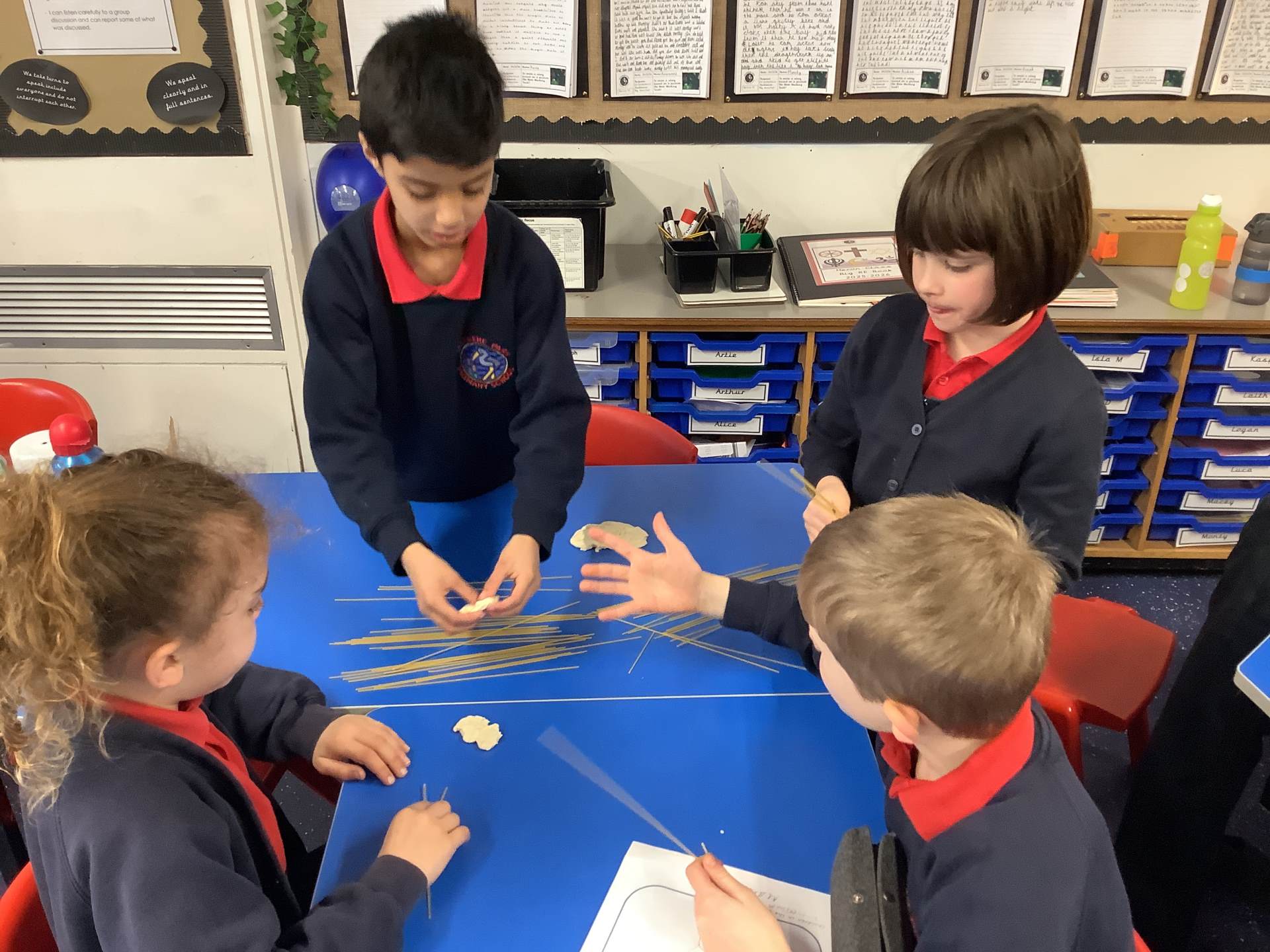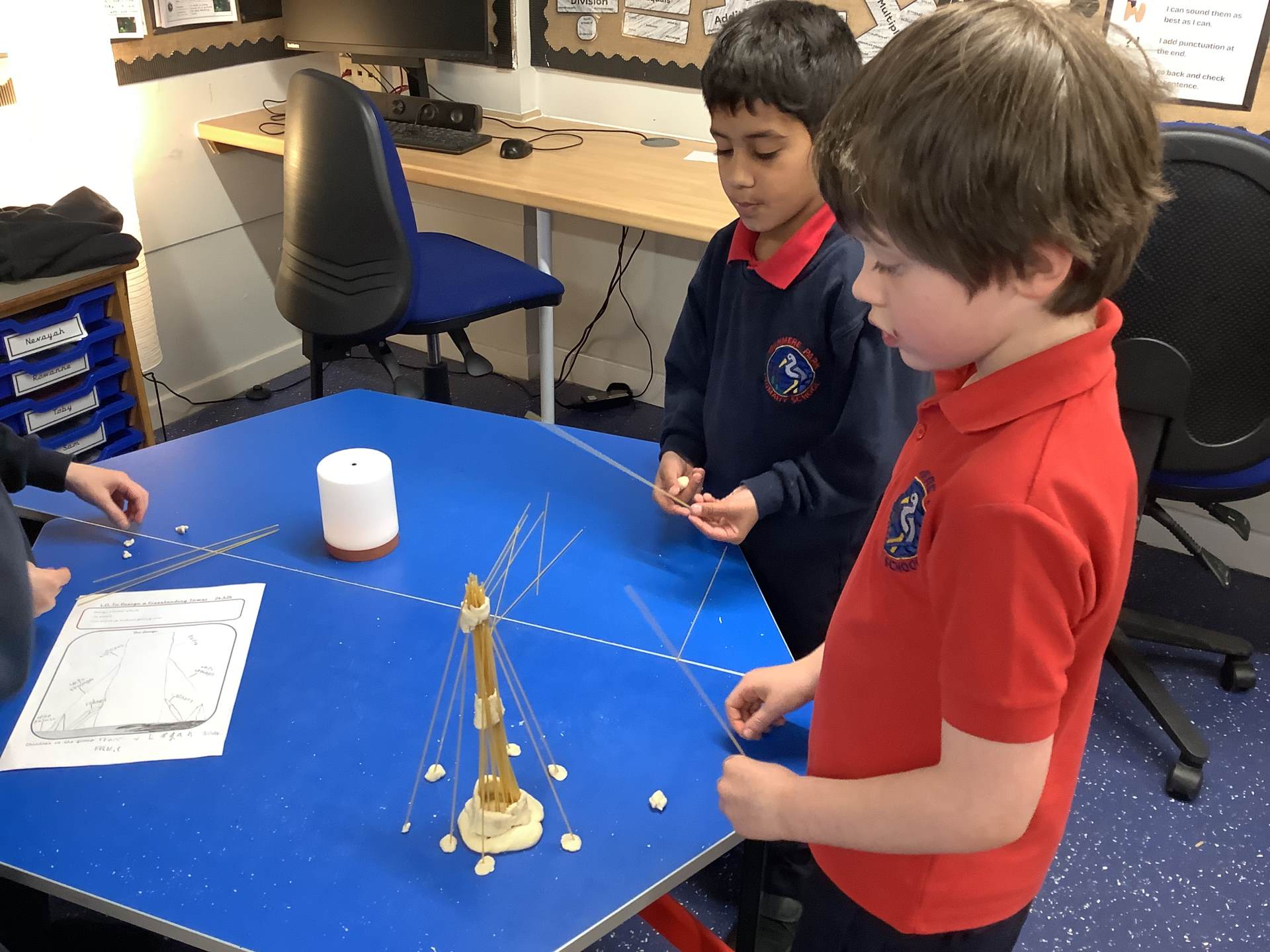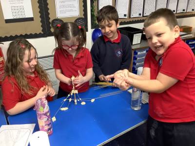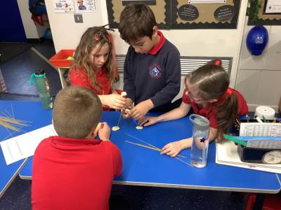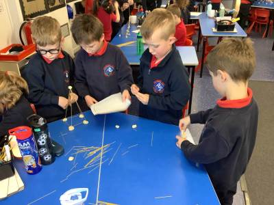 Today, the children made and tested their designs, using spaghetti and playdough.