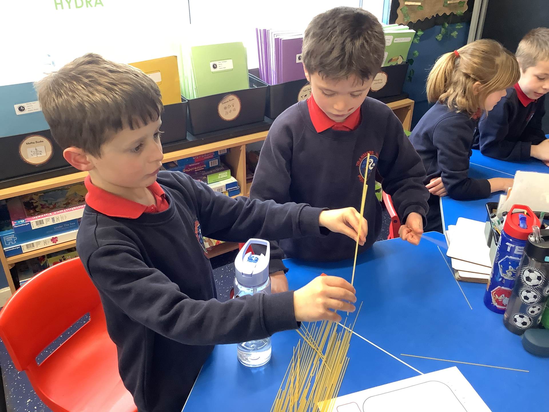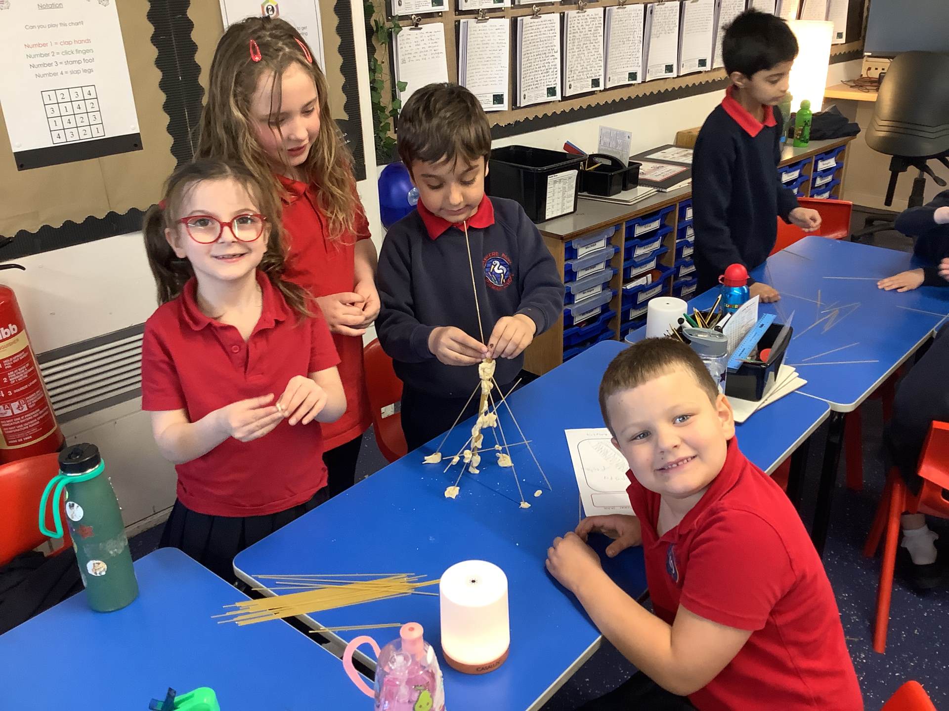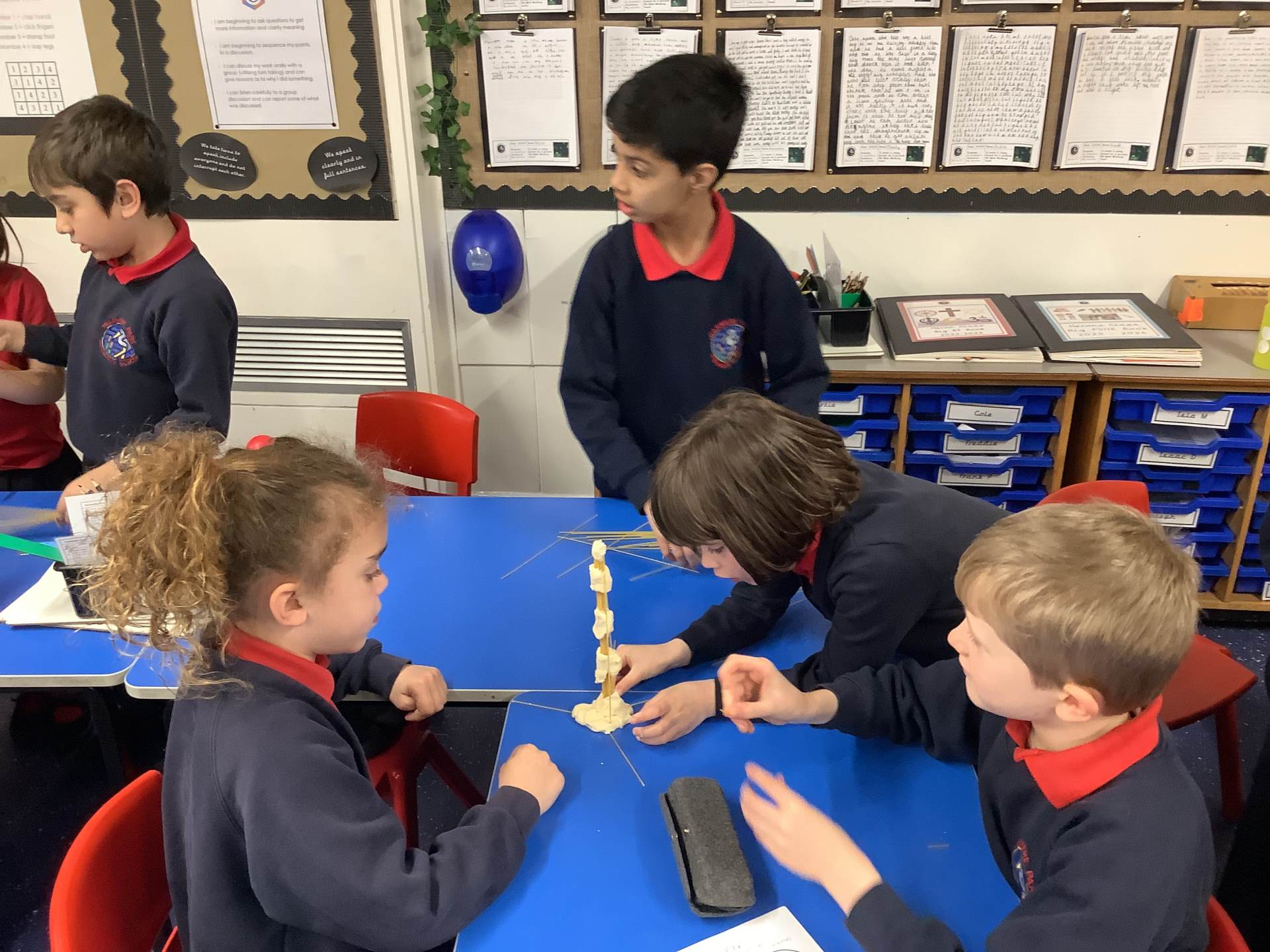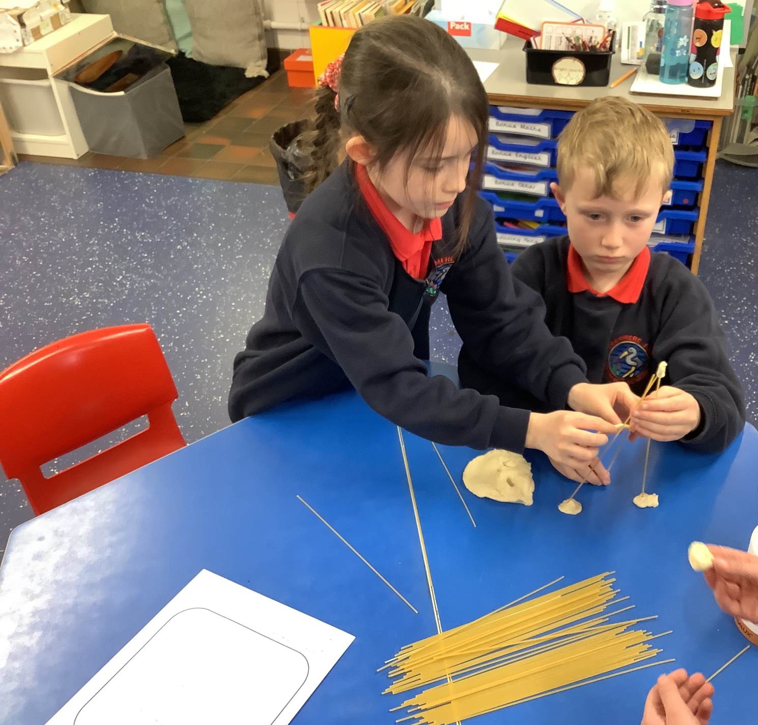 Today, the children made and tested their designs, using spaghetti and playdough.