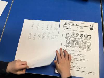 In maths, our Badger problem solving focus was ‘Drawing a Picture’. We have been learning how pictures can help us to visualise different mathematical problems. See our photos below, where we are practising this skill to help us to answer different questions. Great work, Eagles!