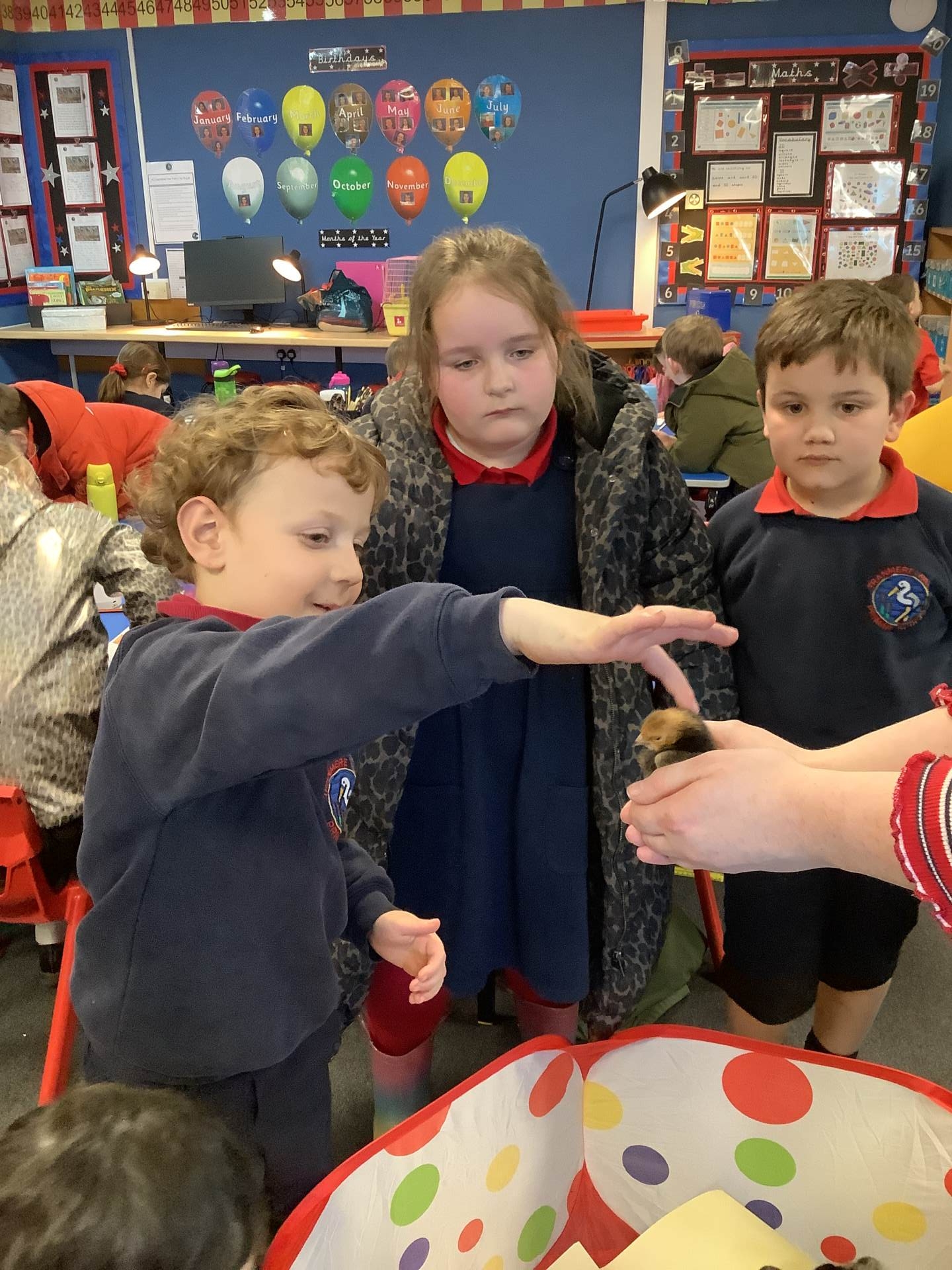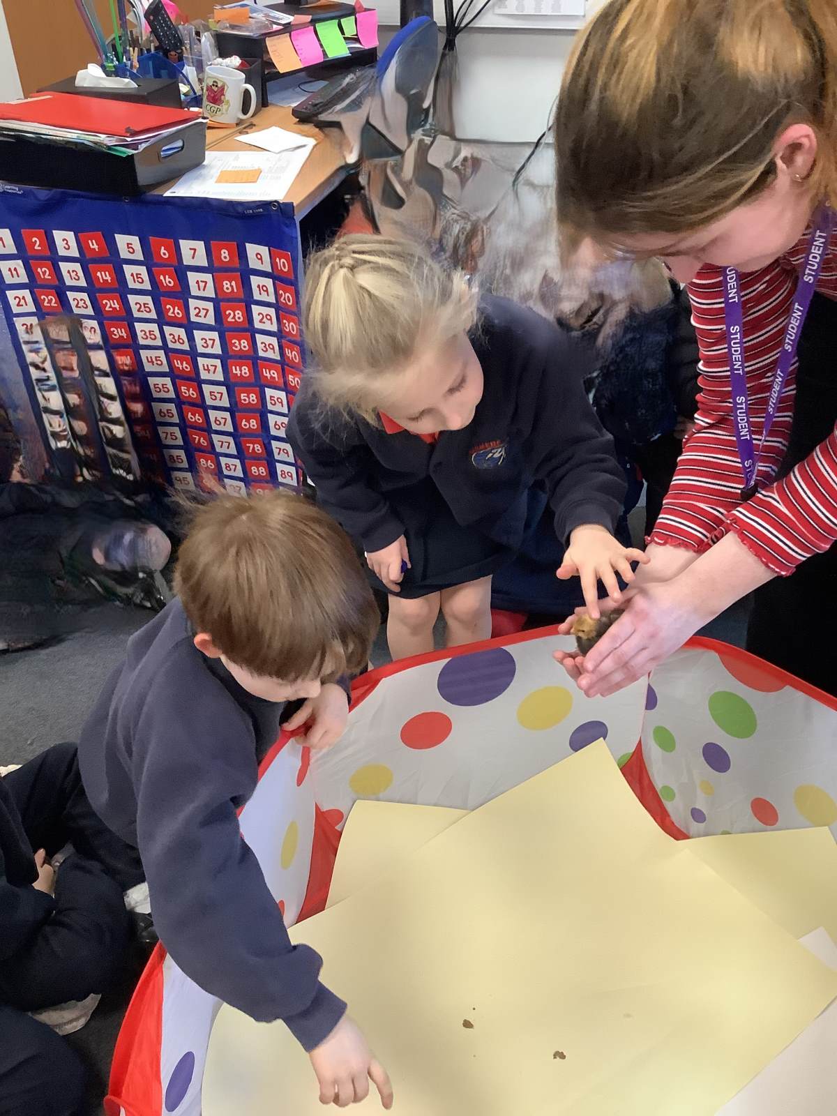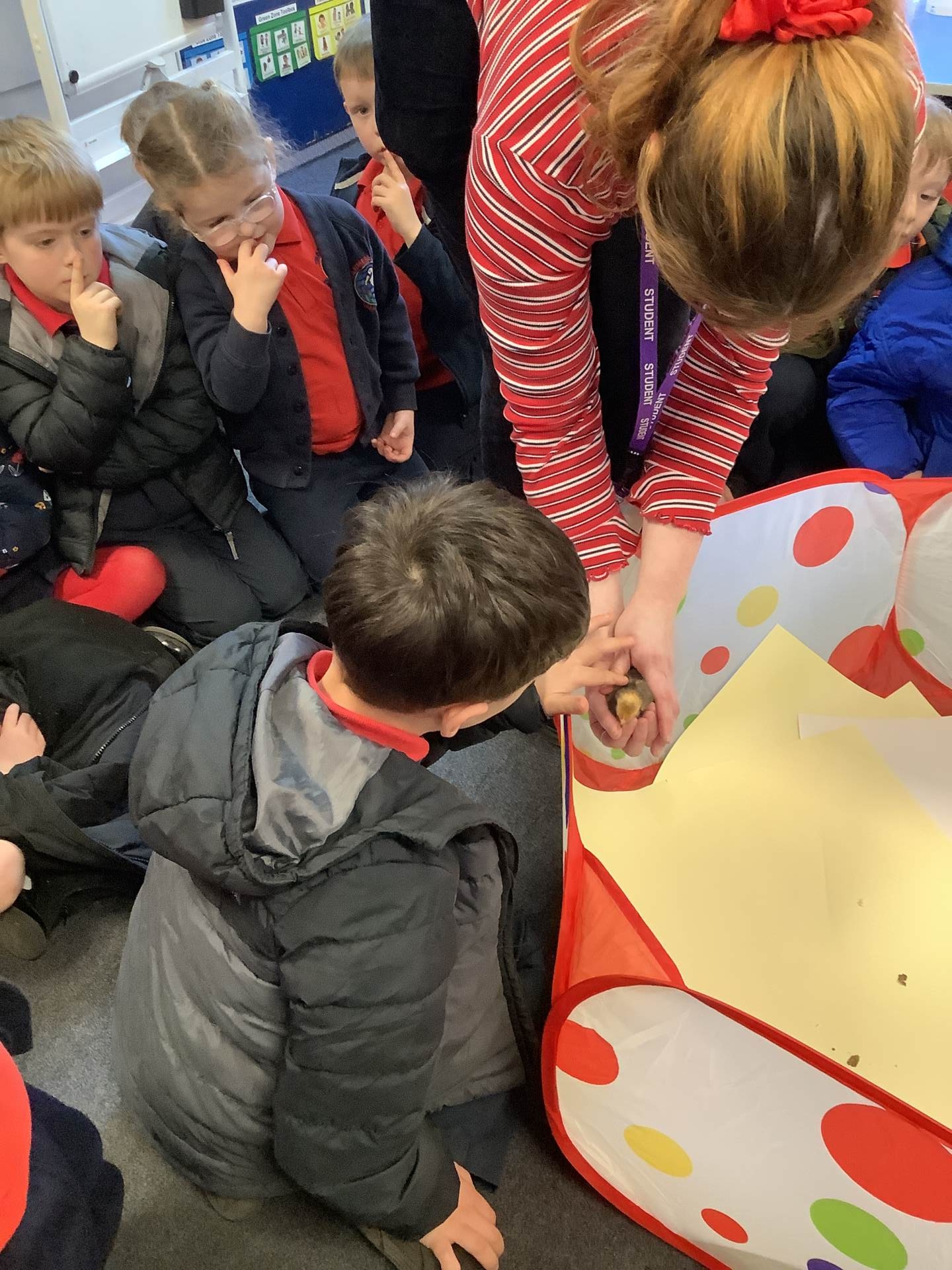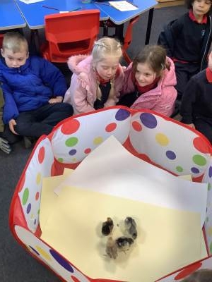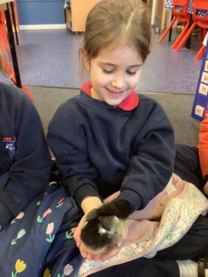The children have enjoyed the responsibility of taking care of our chicks and they have ensured that they are warm and have enough food and clean water to drink. They've also enjoyed a great number of cuddles too! We have loved having the chicks in our classroom and will definitely miss them next week!