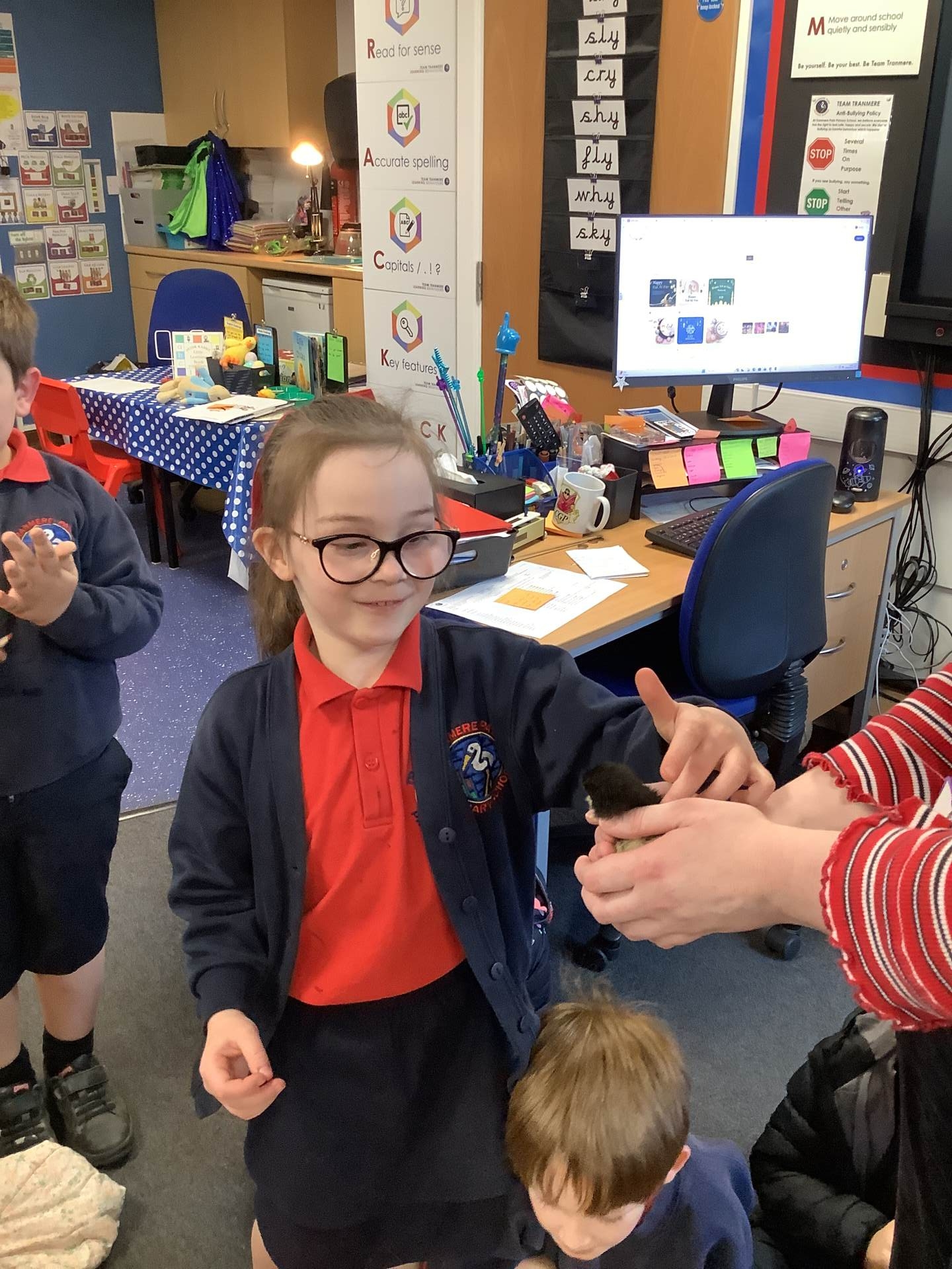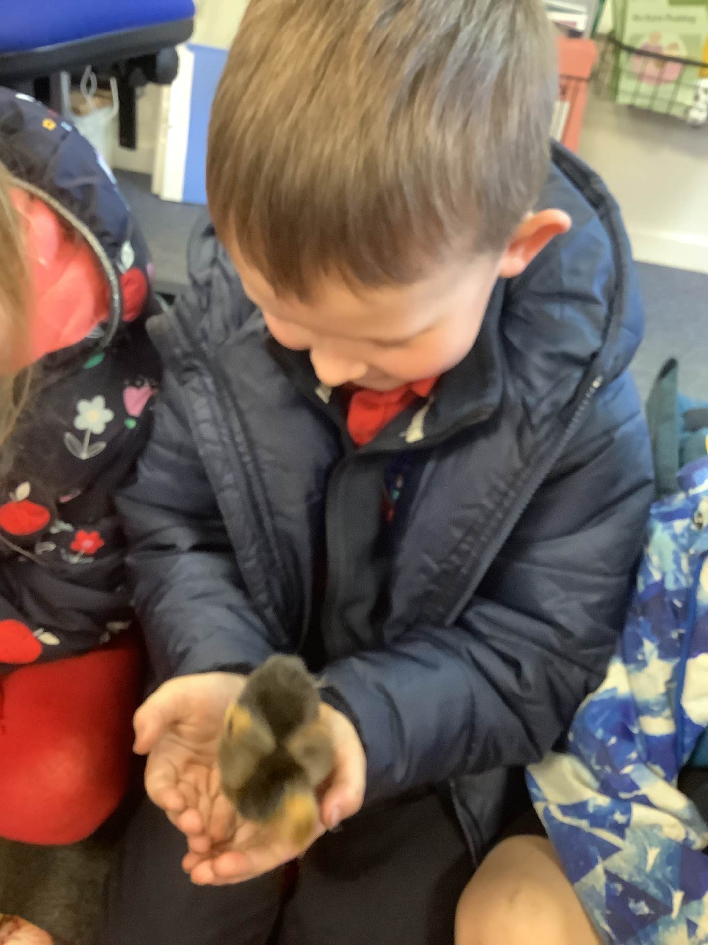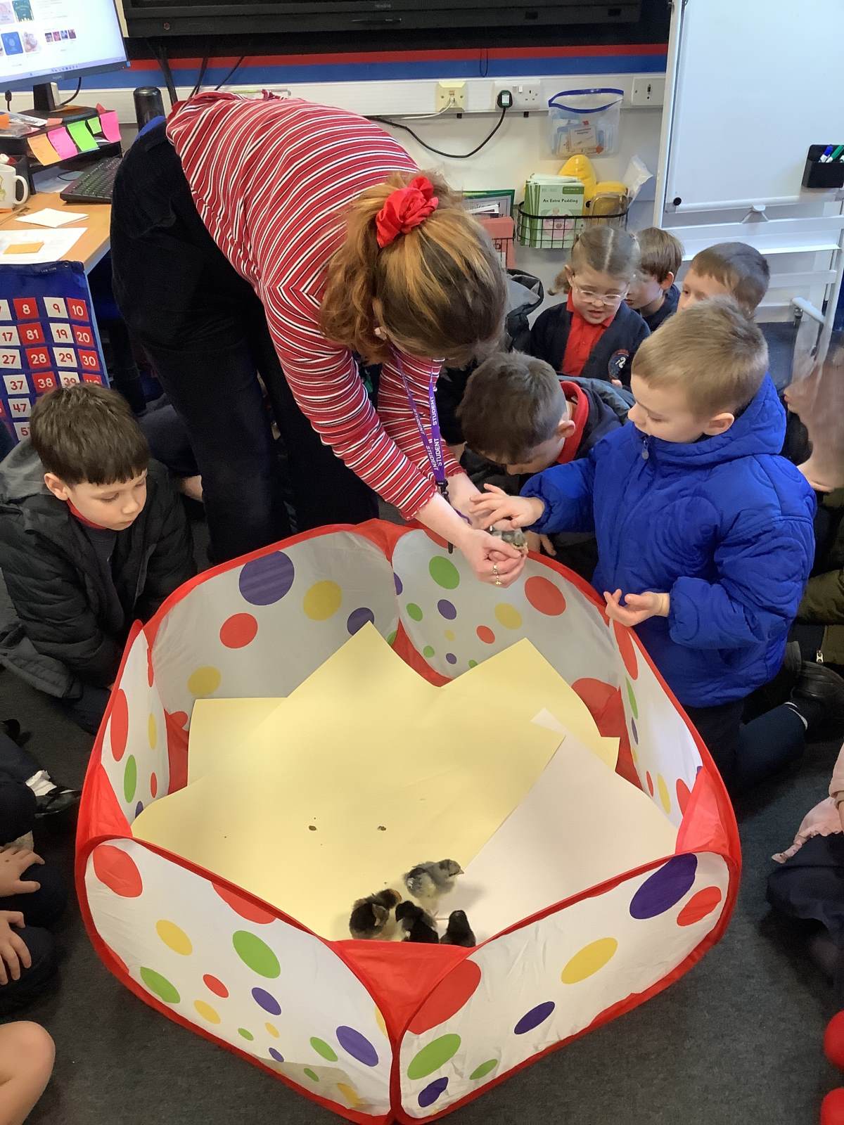 The children have enjoyed the responsibility of taking care of our chicks and they have ensured that they are warm and have enough food and clean water to drink. They've also enjoyed a great number of cuddles too! We have loved having the chicks in our classroom and will definitely miss them next week!