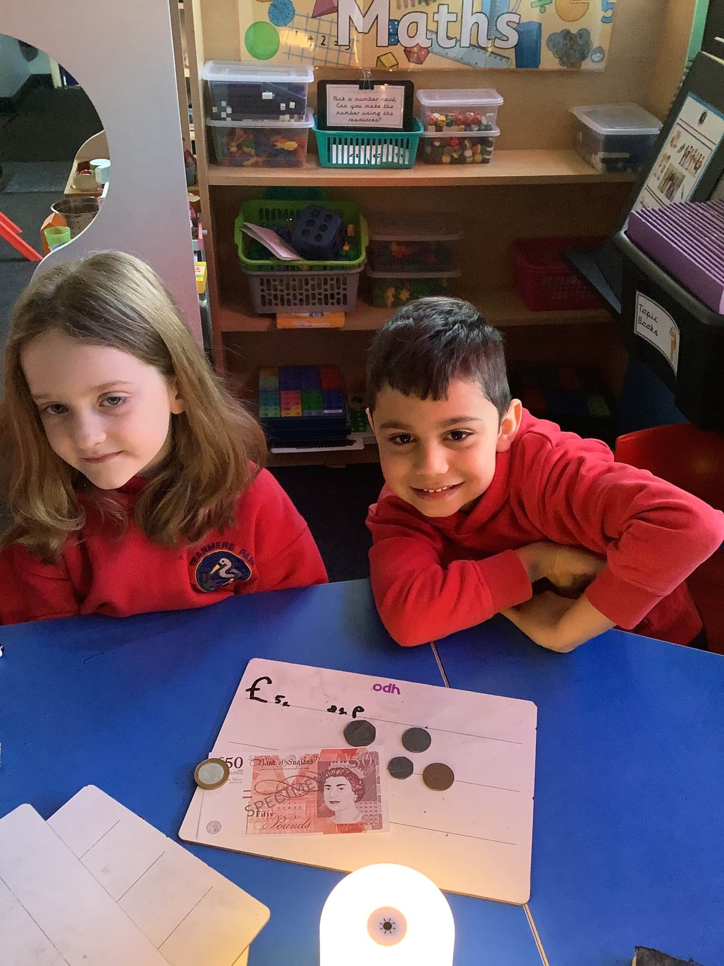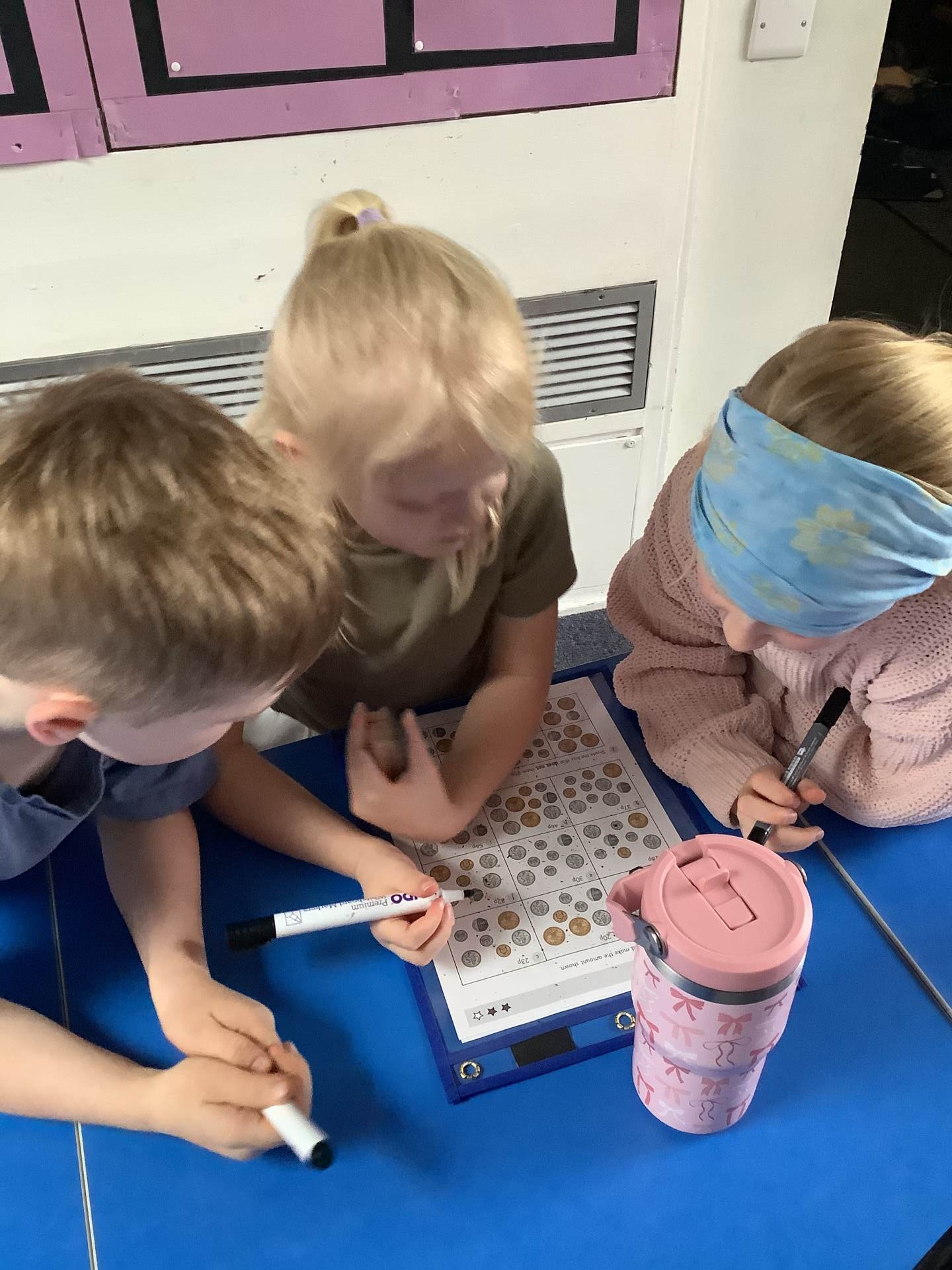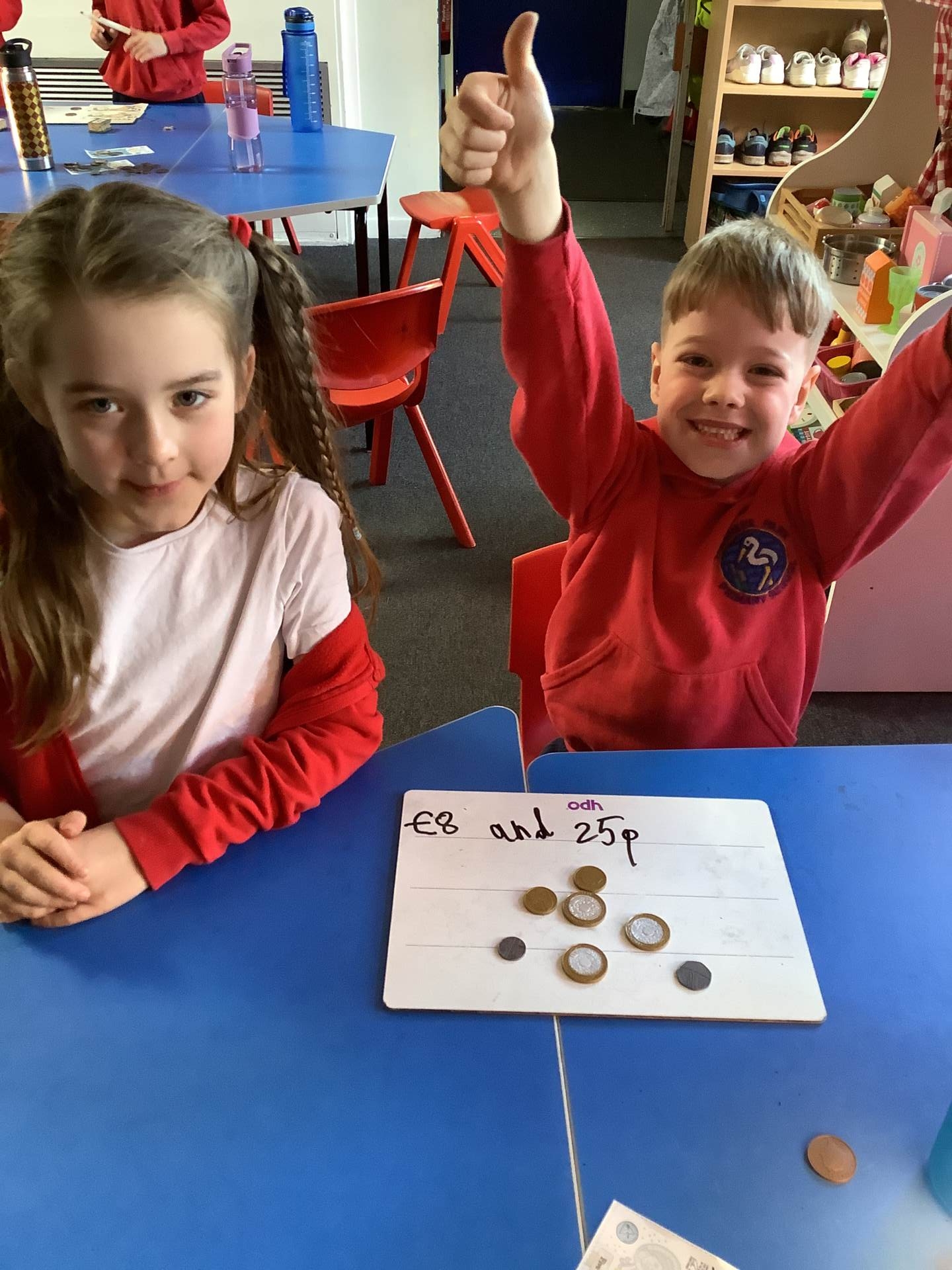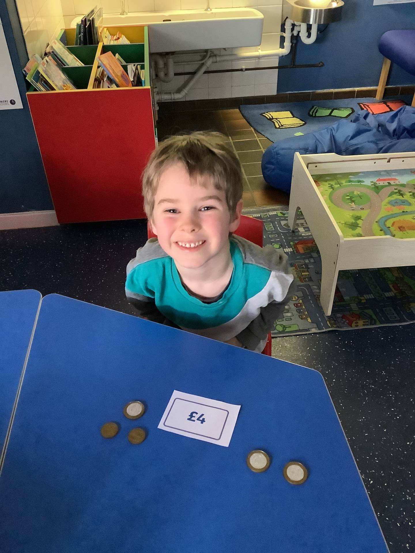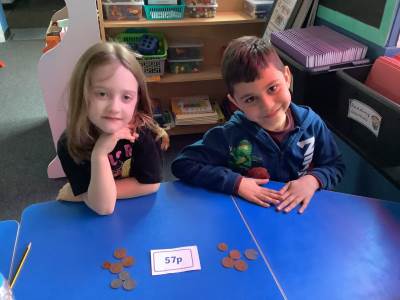 We then moved on to looking at different amounts and matched the coins to the amount shown, helping to build confidence with recognising coins. We explored how to make the same amount using different coins, and it was lovely to see the children thinking carefully and sharing their ideas as they found different ways to make the same total.