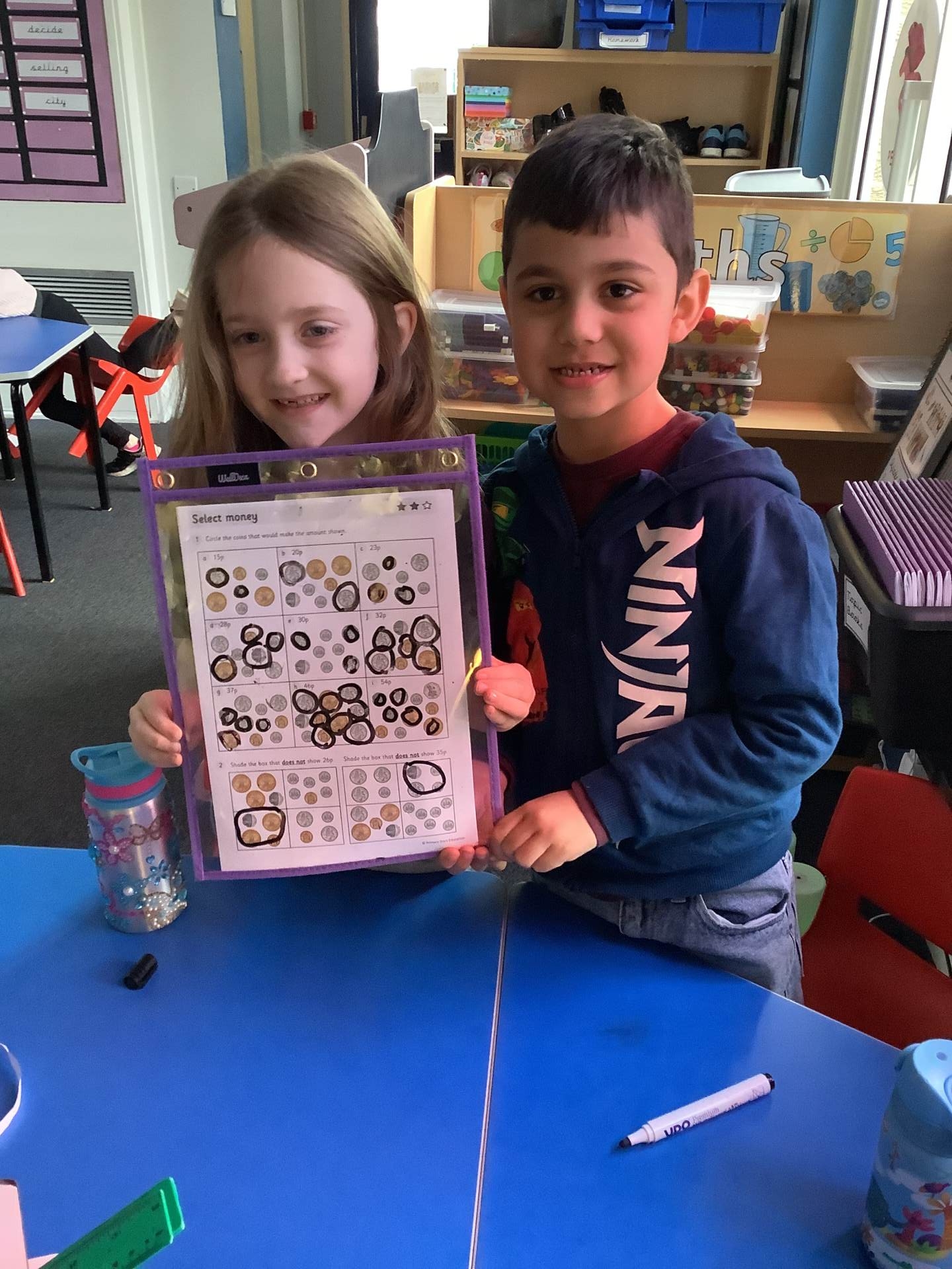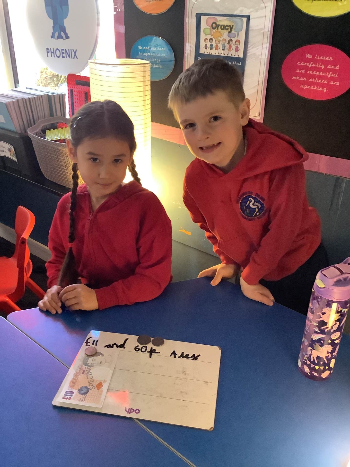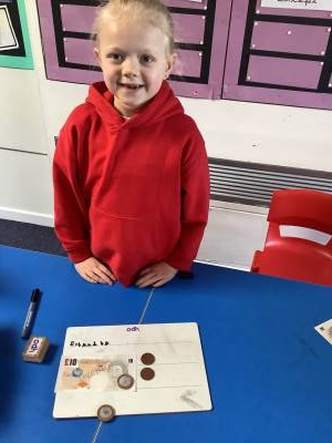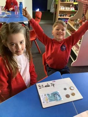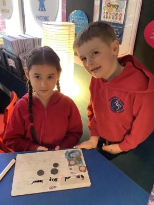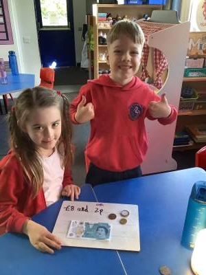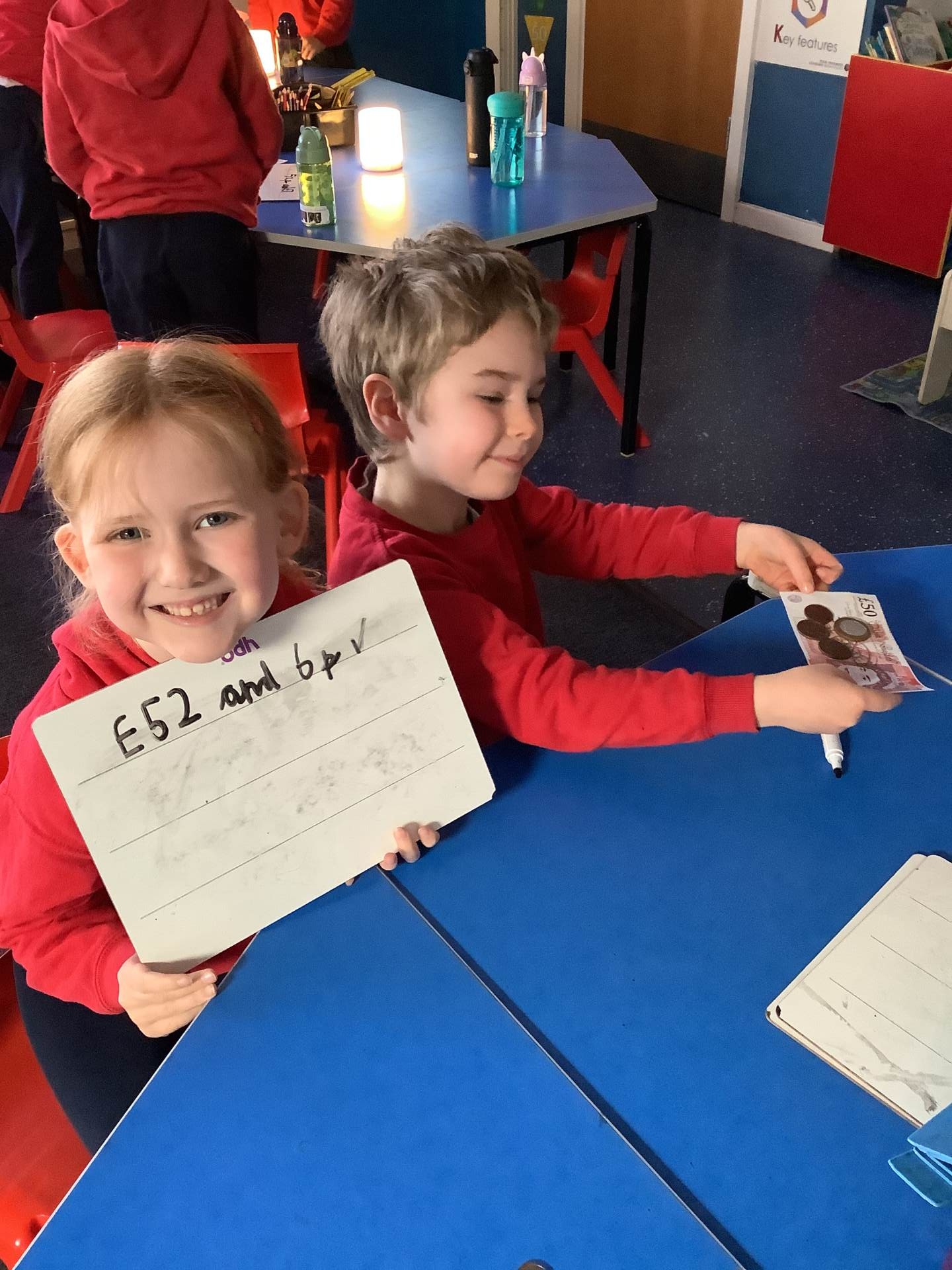 In maths, Year 2 have been learning to recognise and understand the value of different coins. The children each picked a coin, discussed its value together and then practised writing the amount, helping to reinforce their understanding. It was great to see them growing in confidence as they recognised coins and used both the pound (£) and pence (p) symbols correctly.