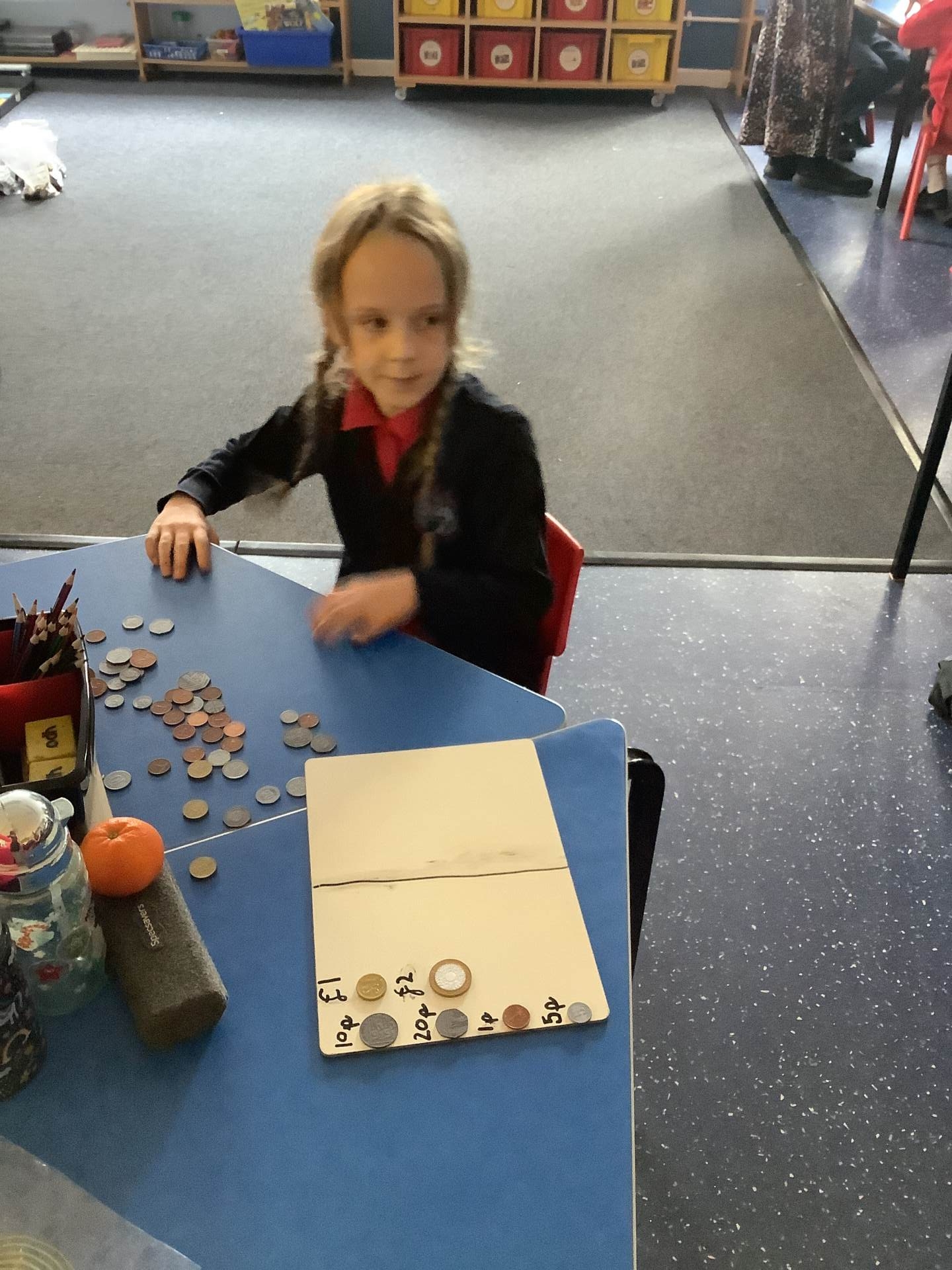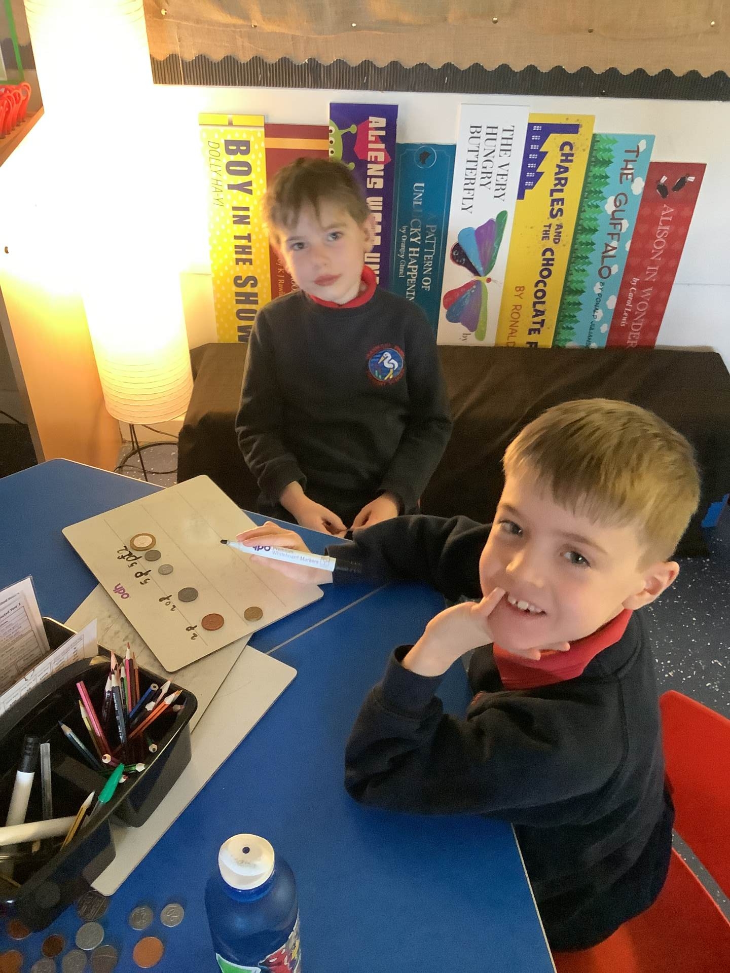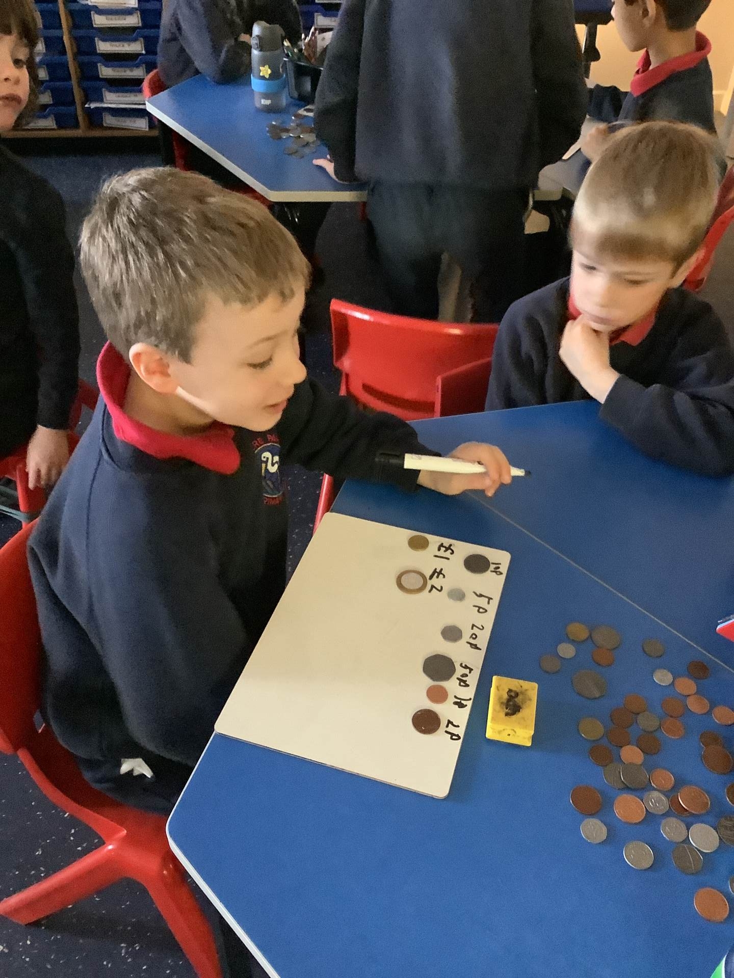In today’s maths lesson, we focused on recognising and understanding the value of different coins through a practical activity. The children each picked a coin, discussed its value together, and then practised writing the amount, helping to reinforce their understanding. It was great to see them growing in confidence as they recognised coins and used both the pound (£) and pence (p) symbols correctly. Well done for your fantastic effort!