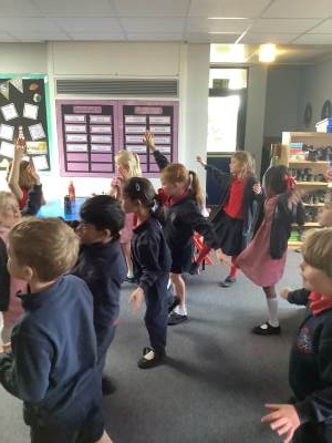 Today, Skylarks took part in a dance workshop run by the 'Royal Ballet and Opera.' The story was based around 'Alice in Wonderland' and followed an animated tale that the children had to retell through dance. Using actions, dynamics and relationships (key elements of dance), the children expressed themselves through the medium of dance. The children danced in the roles of the White Rabbit, The Queen of Hearts, Alice and the Madhatter!
