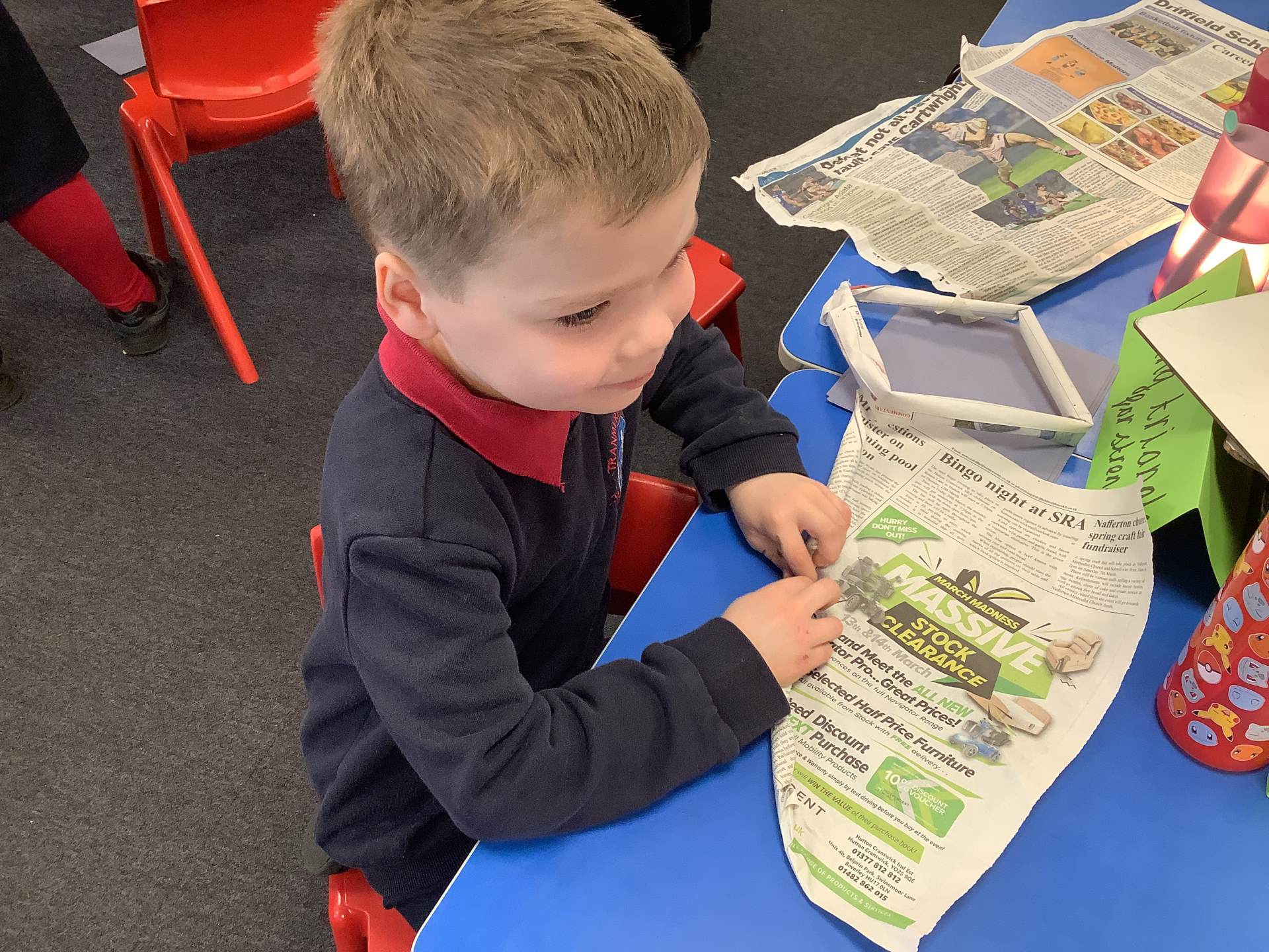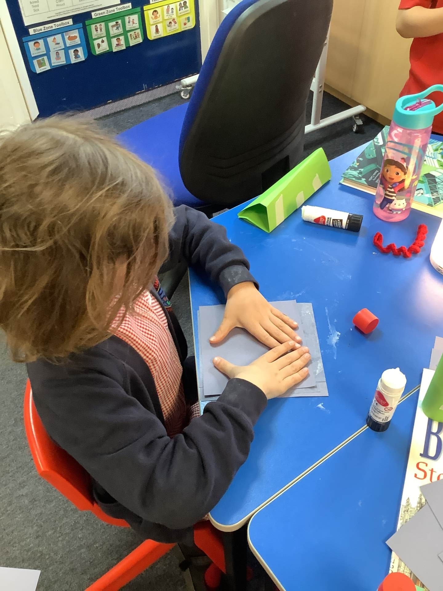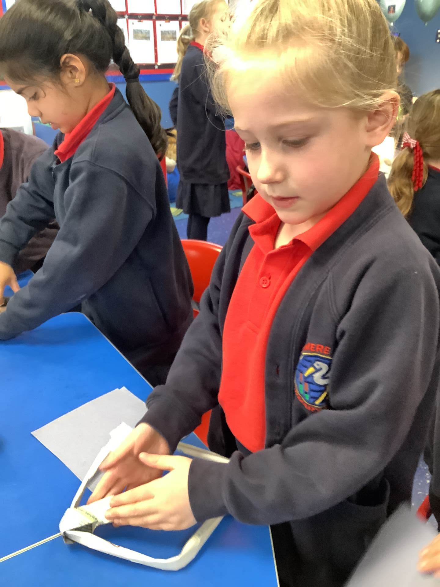 Today, the children practised laminating (layering sheets of paper/card to make it stronger), rolling, shaping (cylinders and triangular prisms are strong shapes) and we also used struts to turn squares into triangles, as triangles are stronger than squares. The children will be utilising these techniques when designing their towers this week.