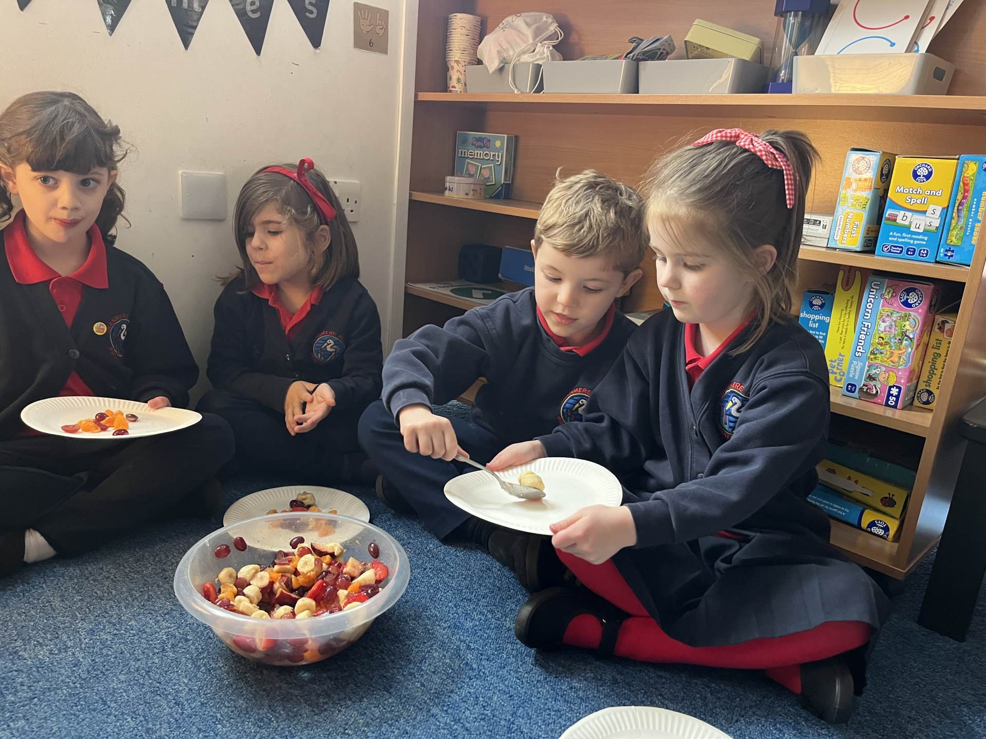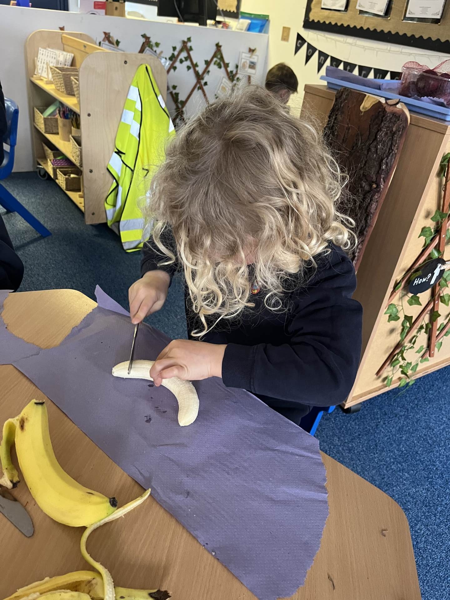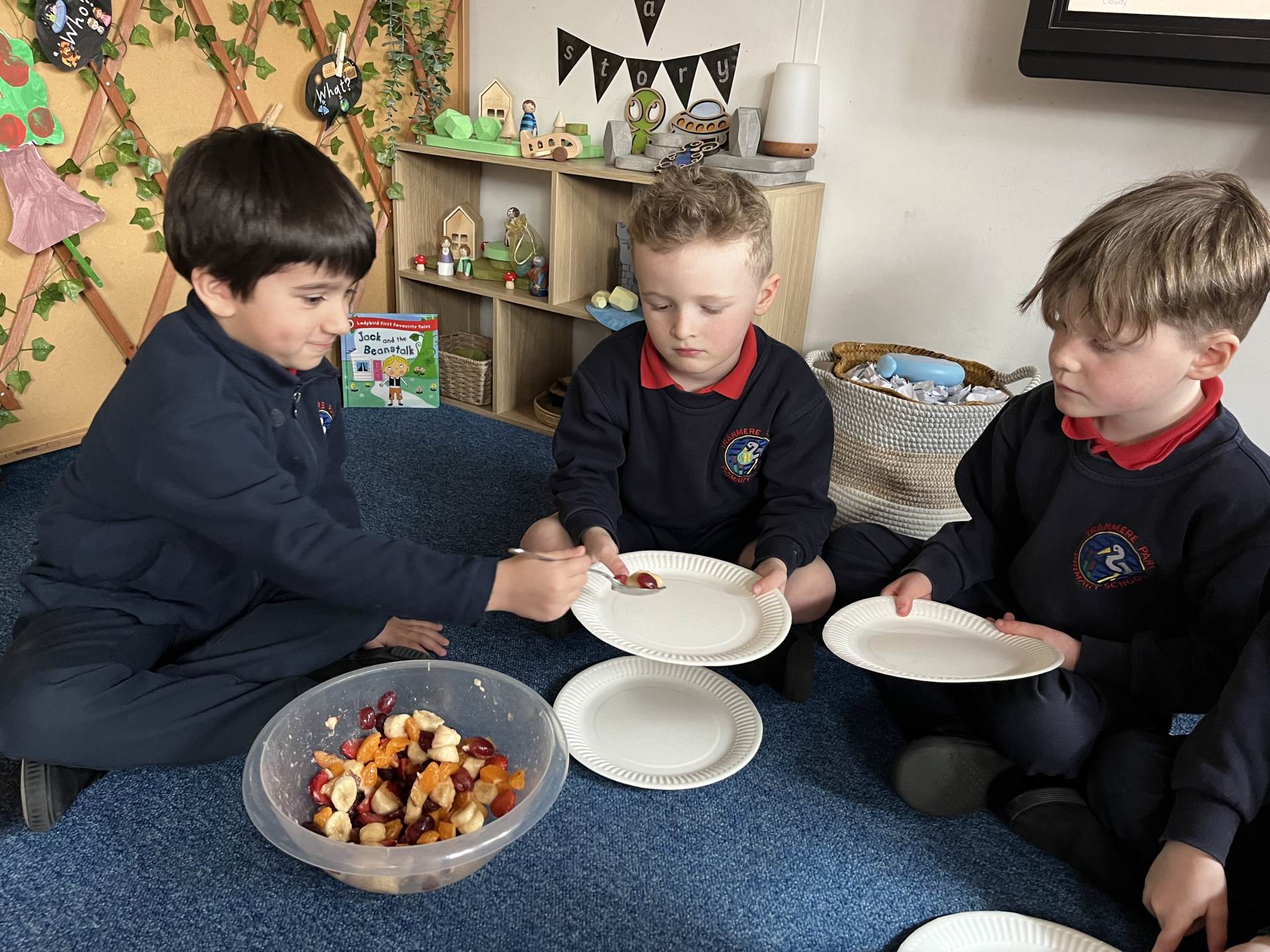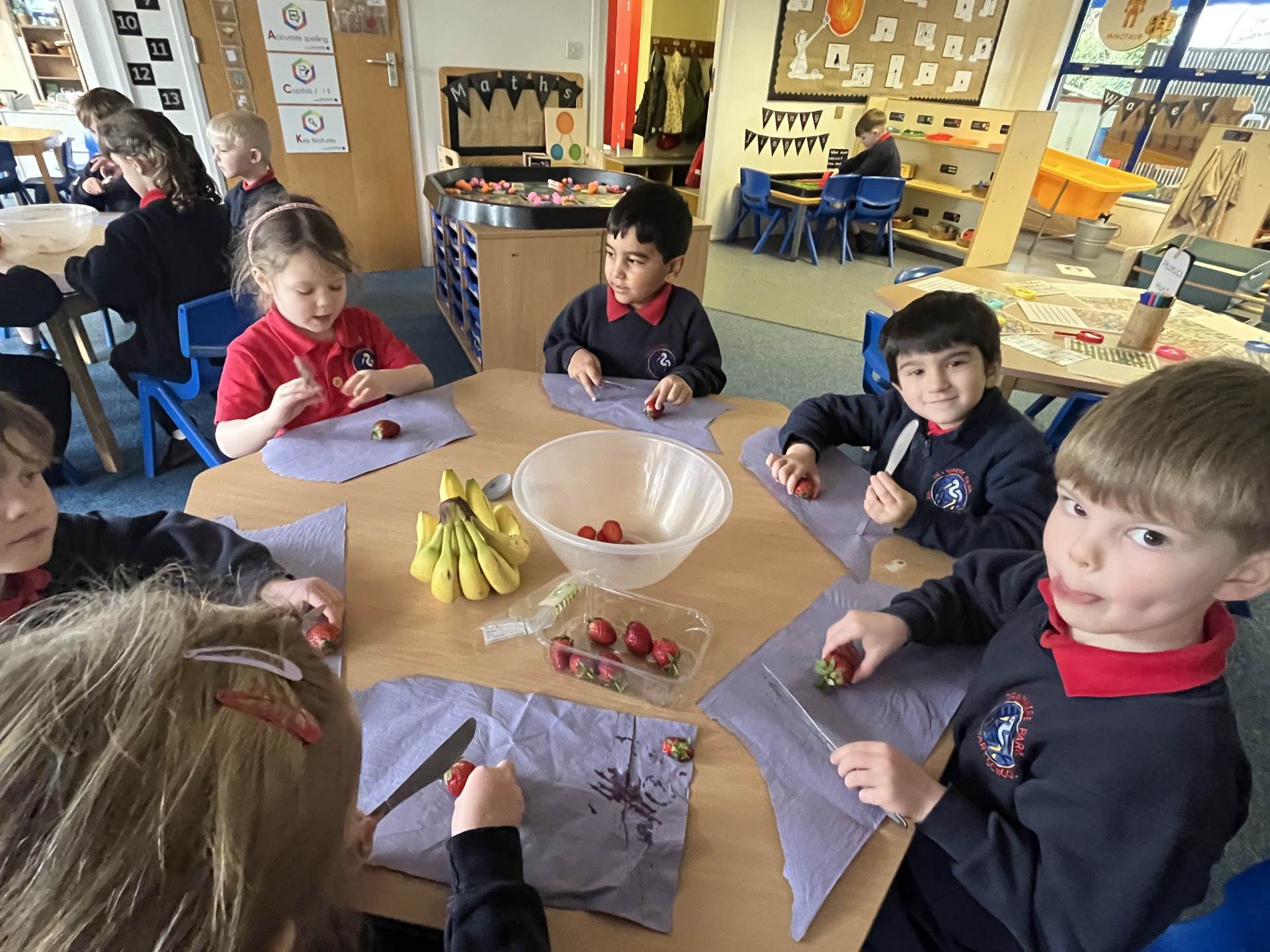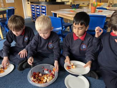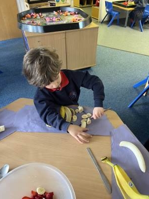 While peeling and chopping the fruit, we were shown safe techniques and tried really hard to focus and practise these skills.