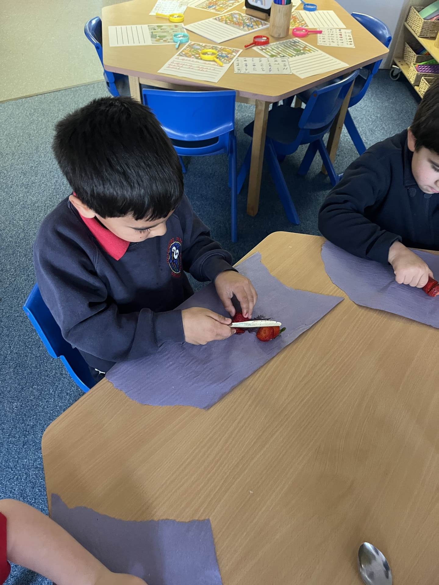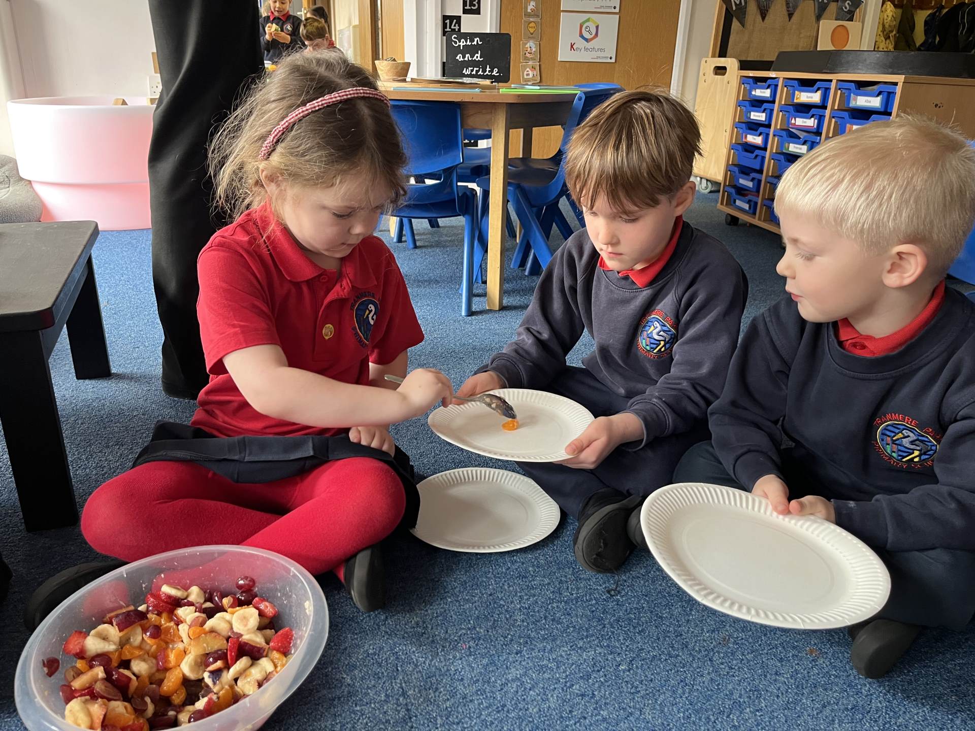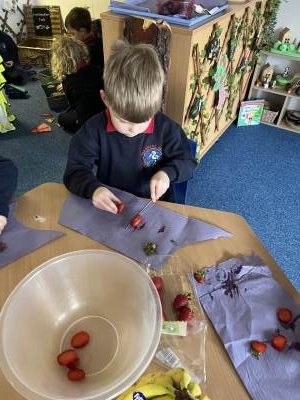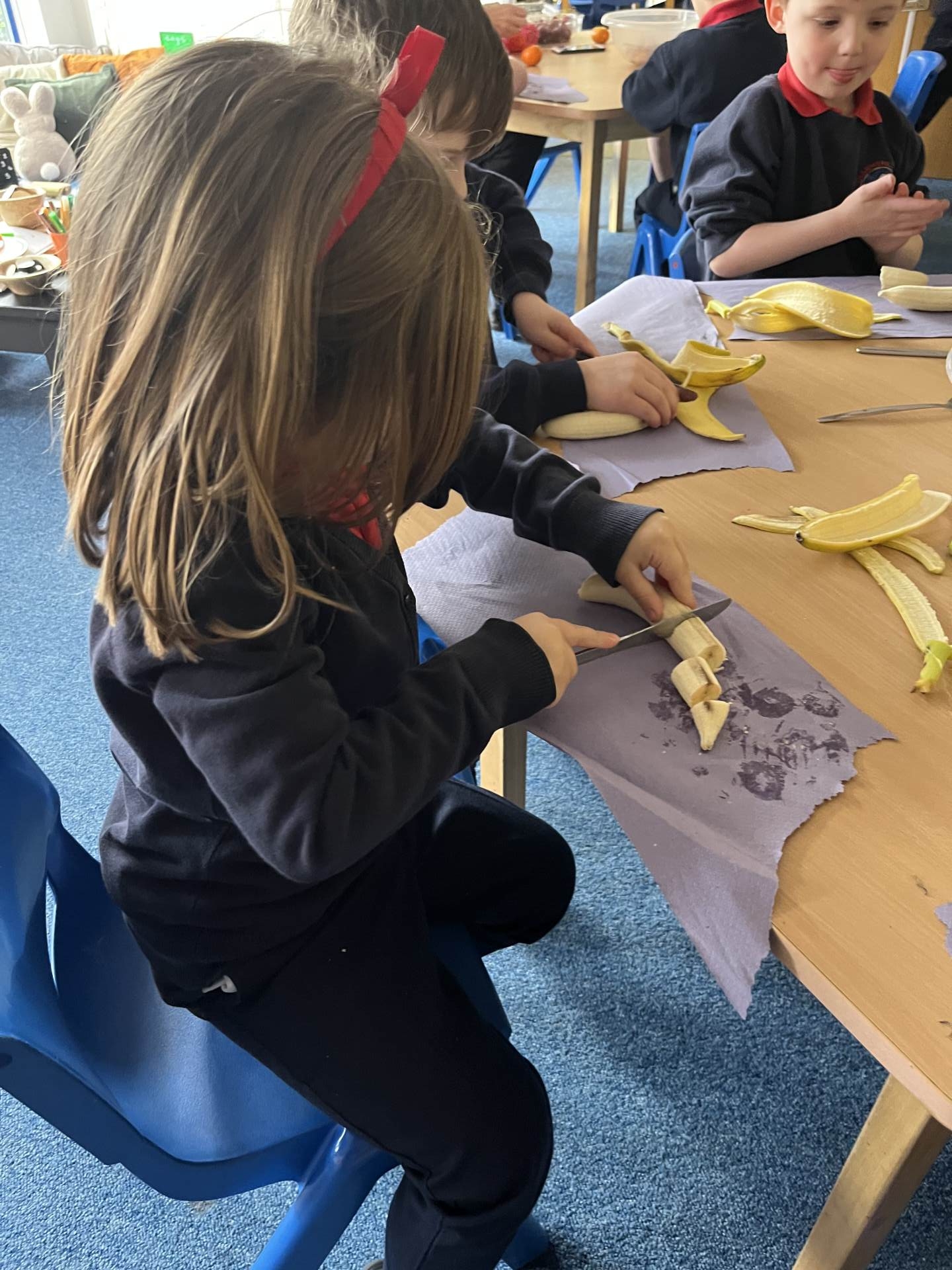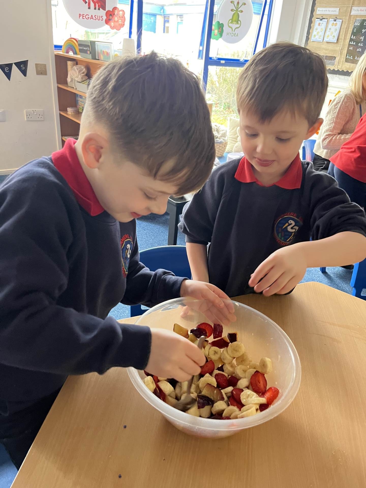 While peeling and chopping the fruit, we were shown safe techniques and tried really hard to focus and practise these skills.