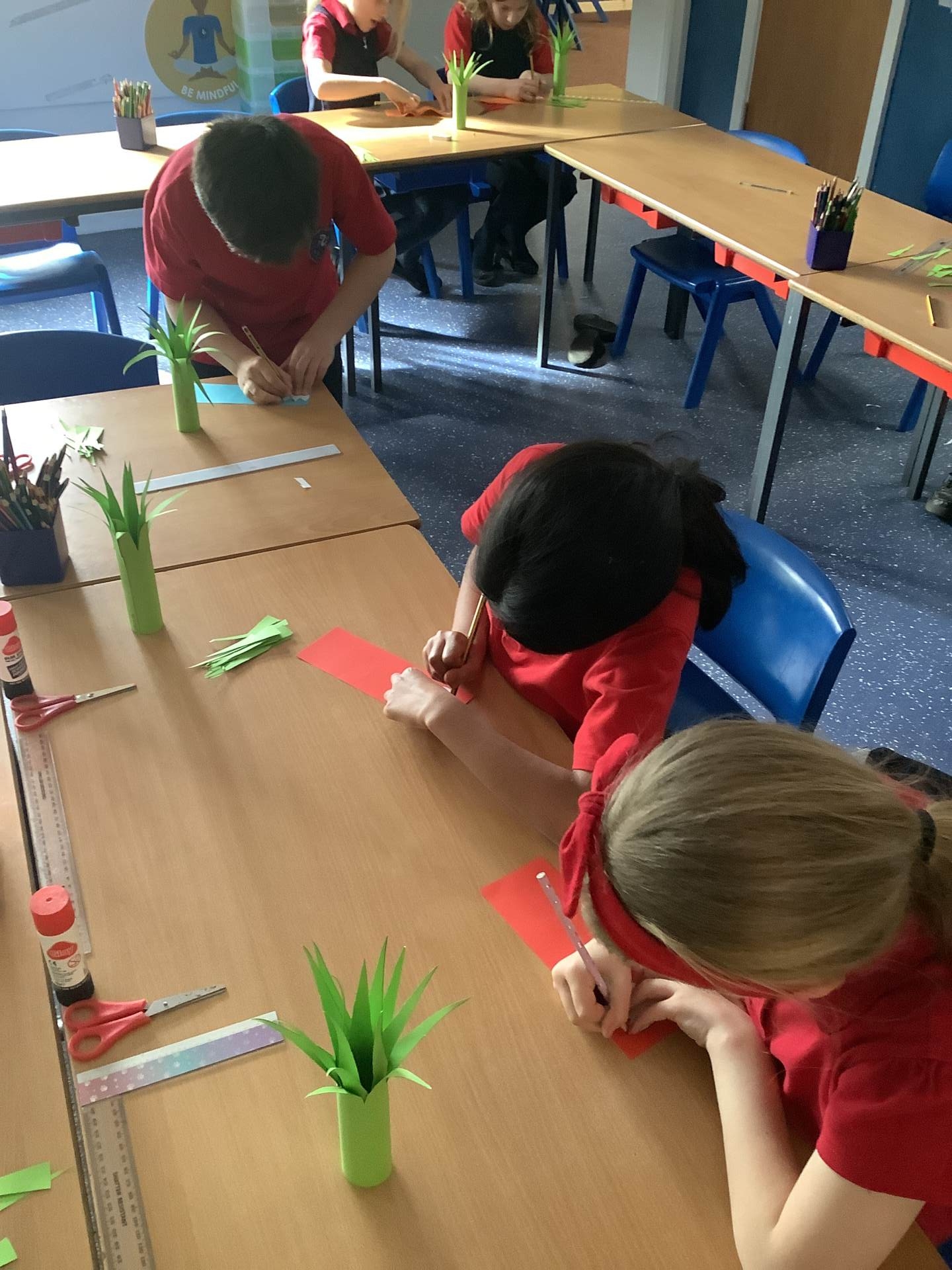 Year 3 have spent time looking at different vases of flowers and discussing what they could see. They spent time sketching these flowers and adding colour to them. As they enjoyed this activity so much, the children had the opportunity to create their own vases of flowers using different coloured paper.